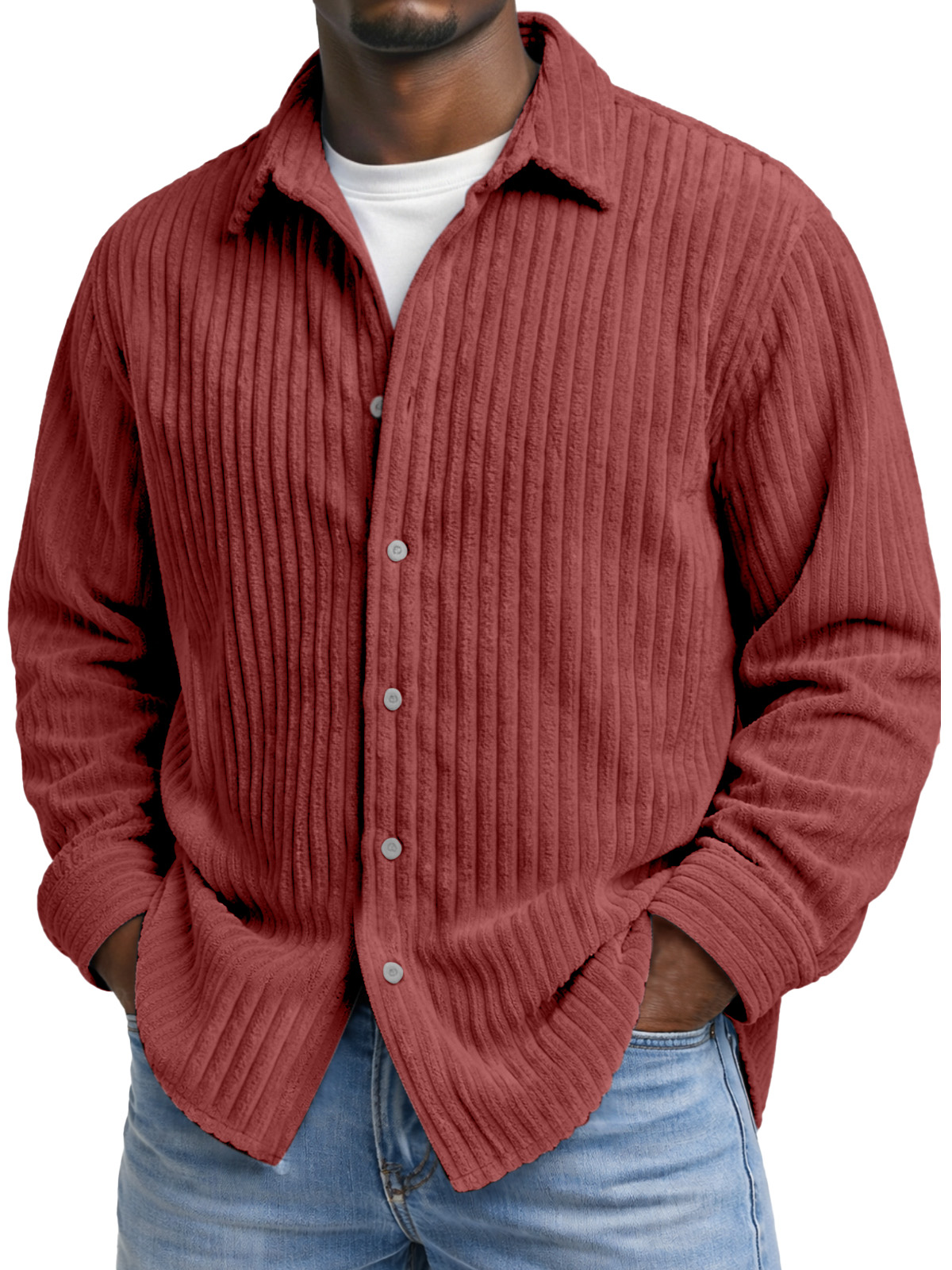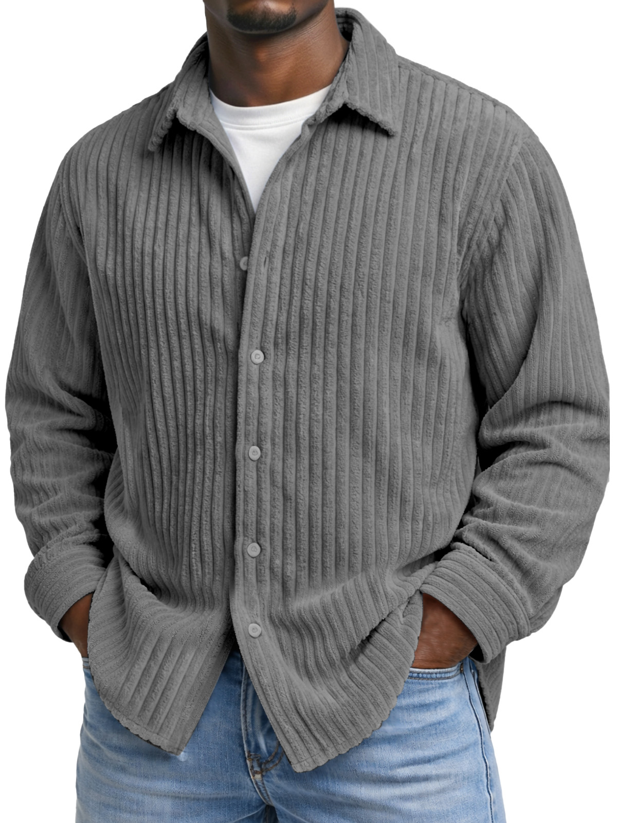 Men's Comfortable And Soft Corduroy Long-sleeved Collared Shirt