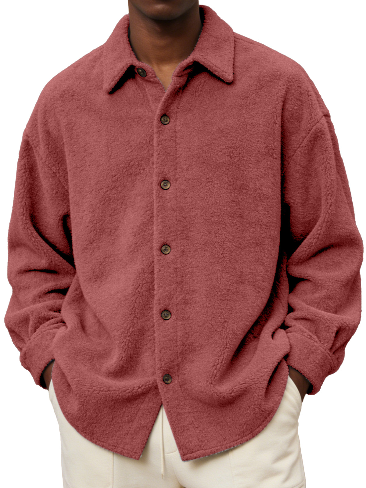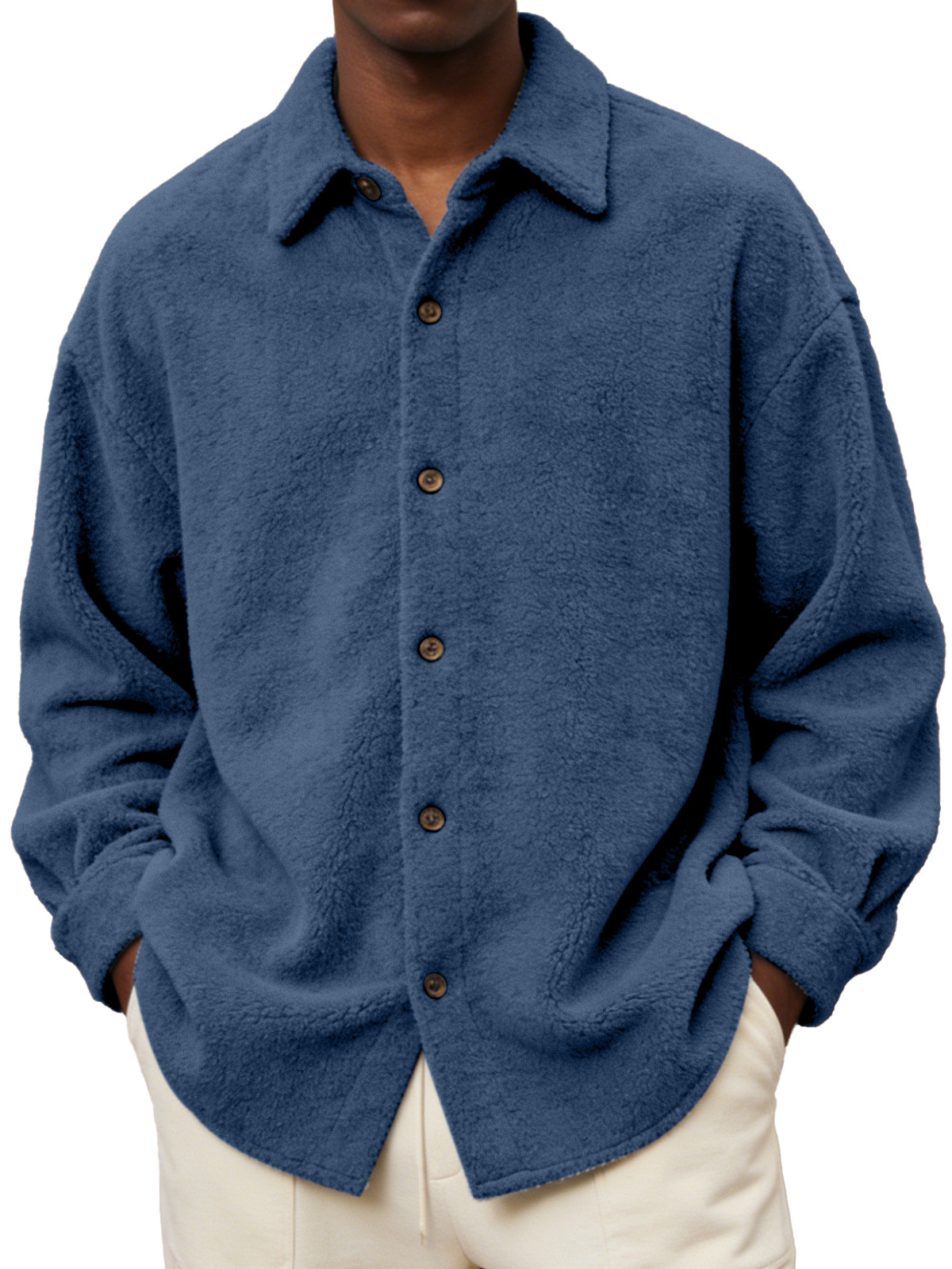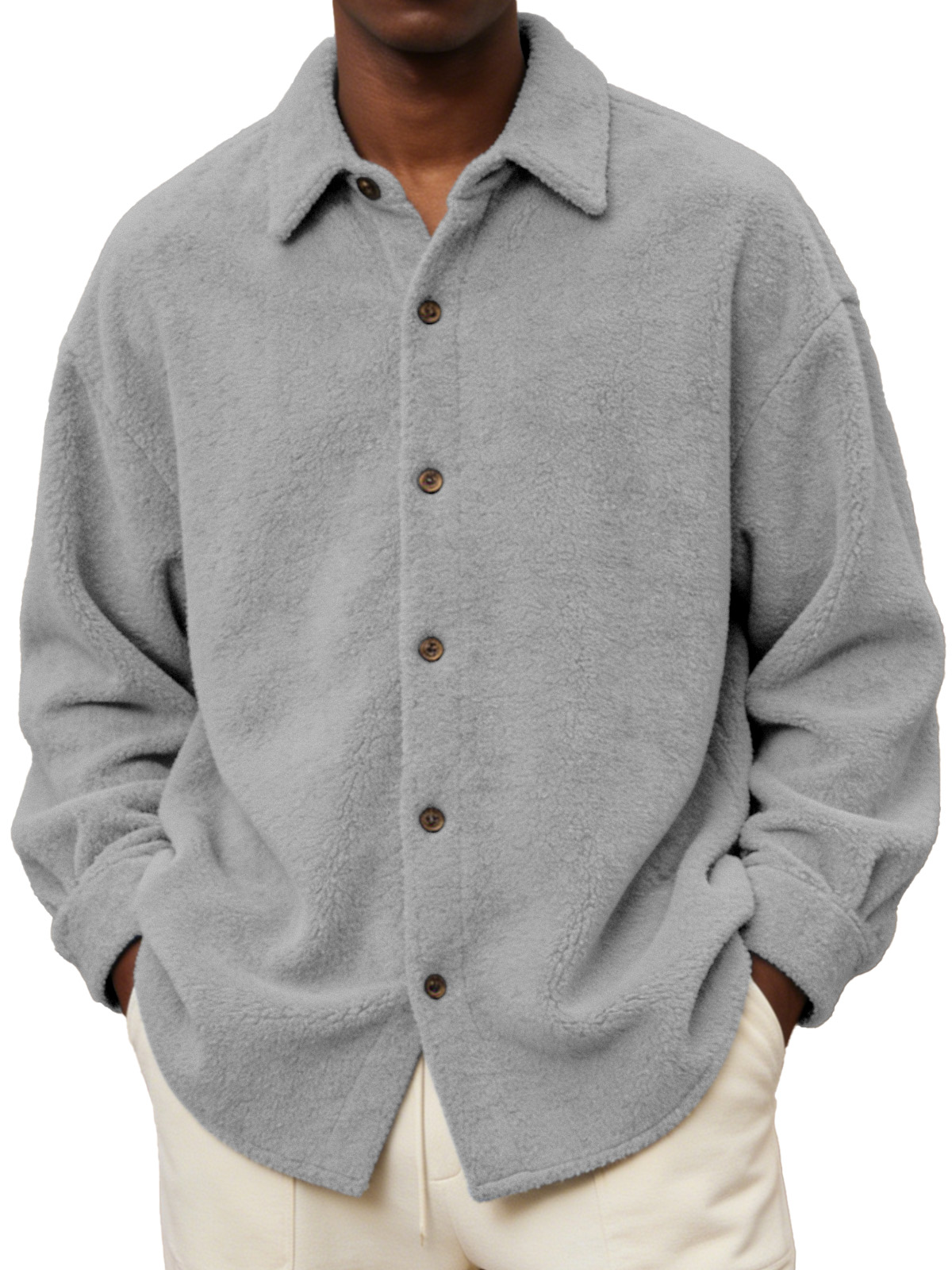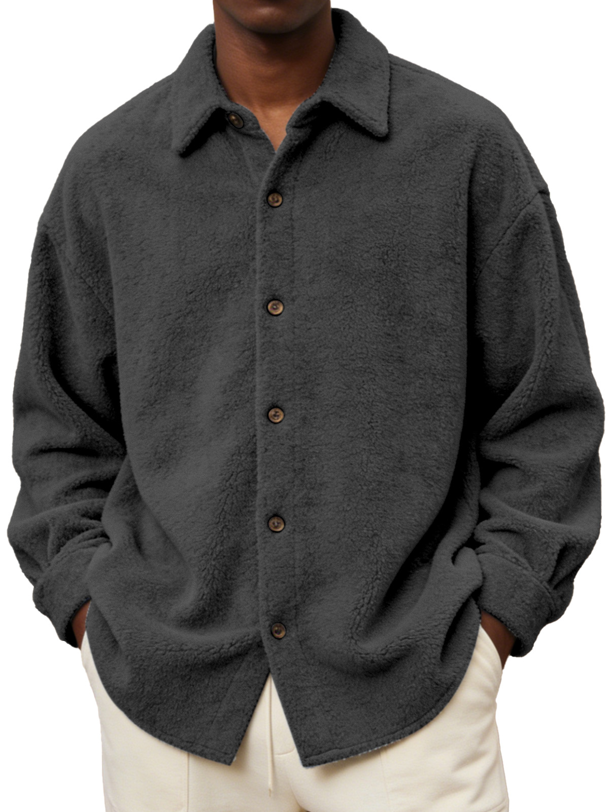 Men's Comfortable And Soft Fleece Long-sleeved Collared Shirt