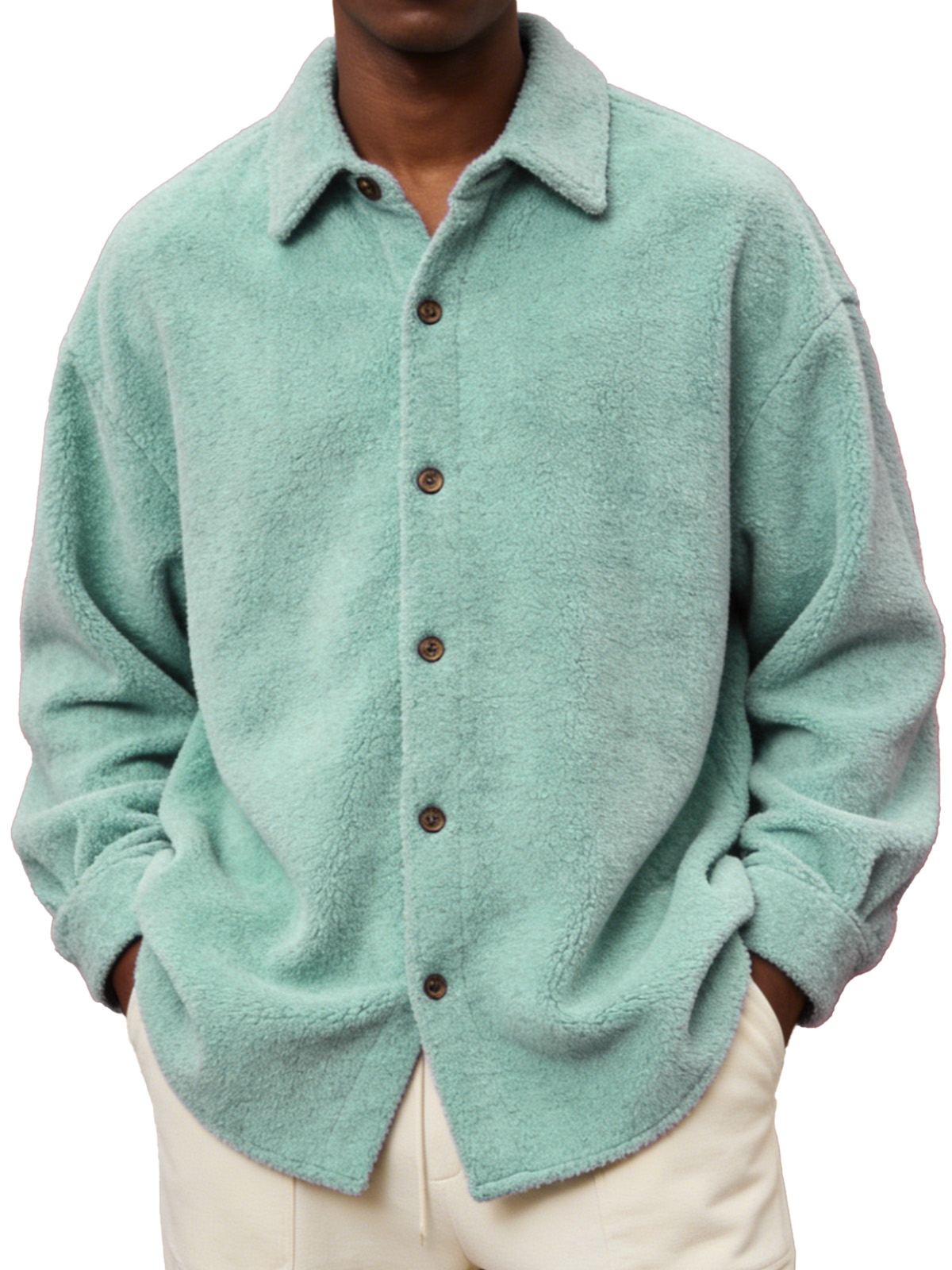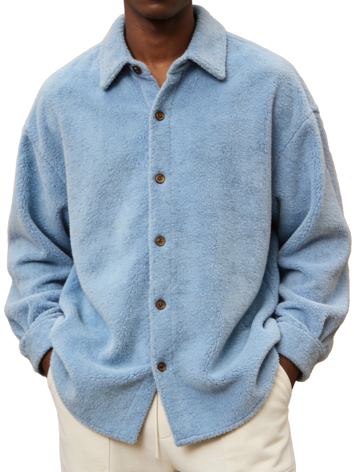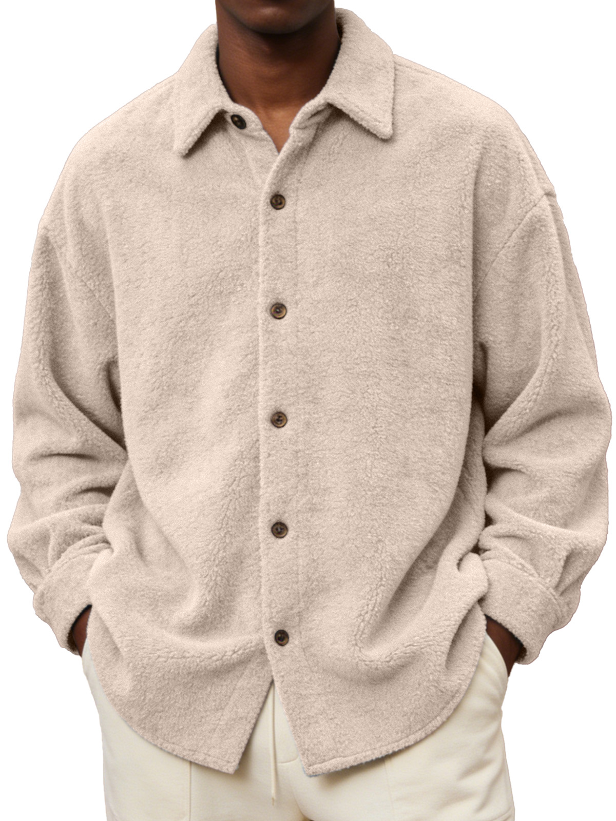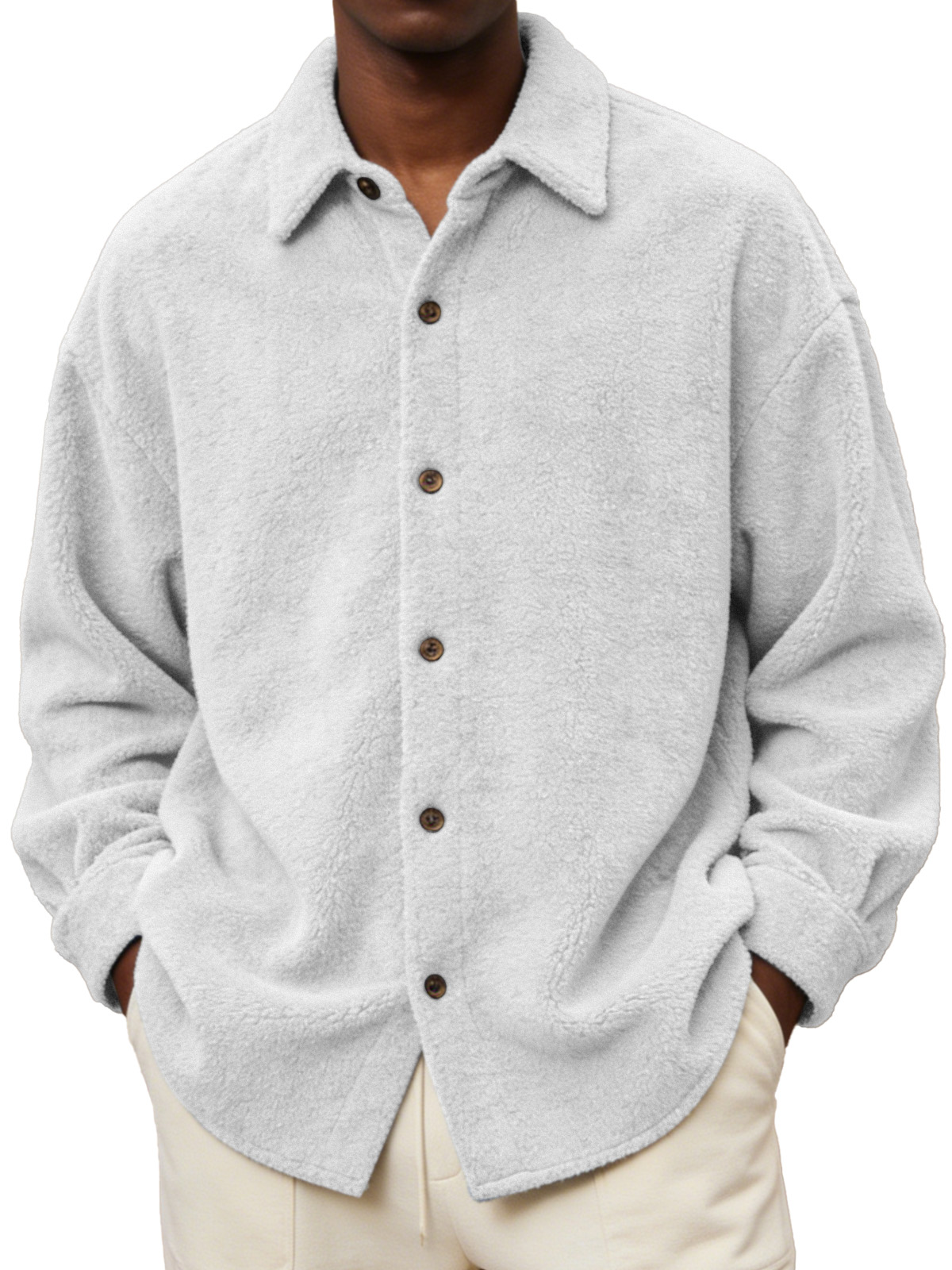 Men's Comfortable And Soft Fleece Long-sleeved Collared Shirt