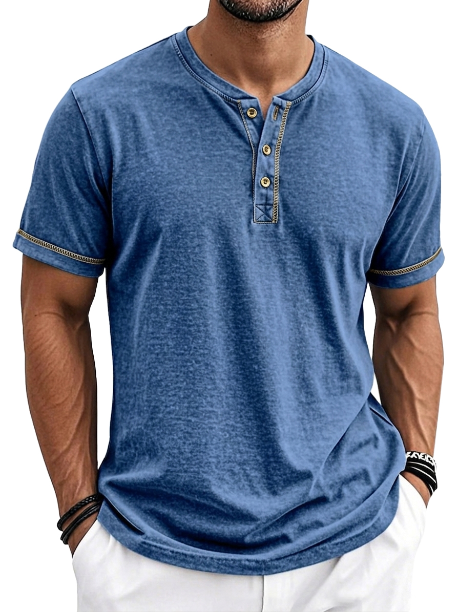 Men's Comfortable Casual Short Sleeve Henley Top