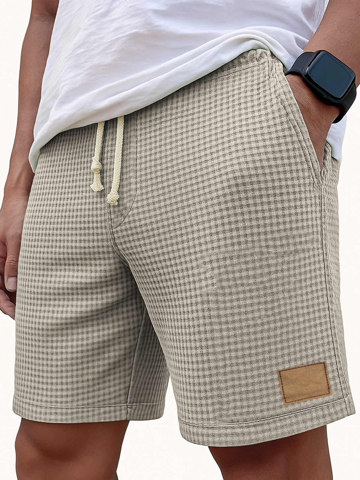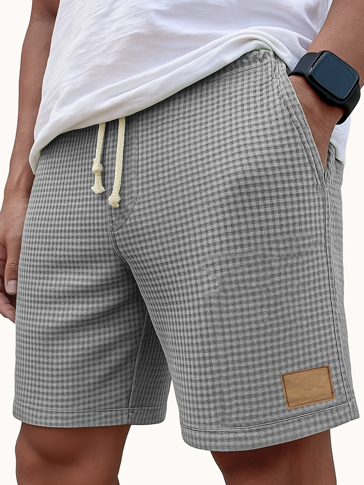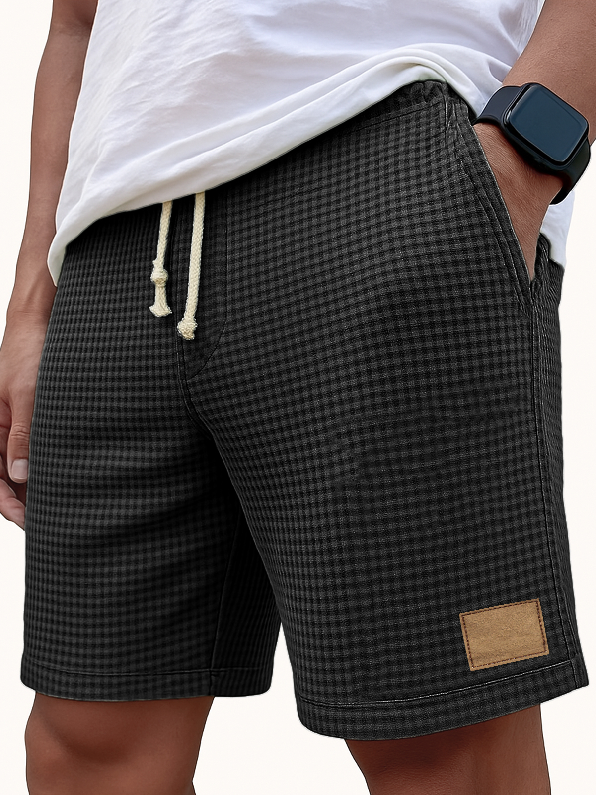Men's Comfortable Waffle Vintage Embroidered Logo Casual Lace Up Loose Shorts