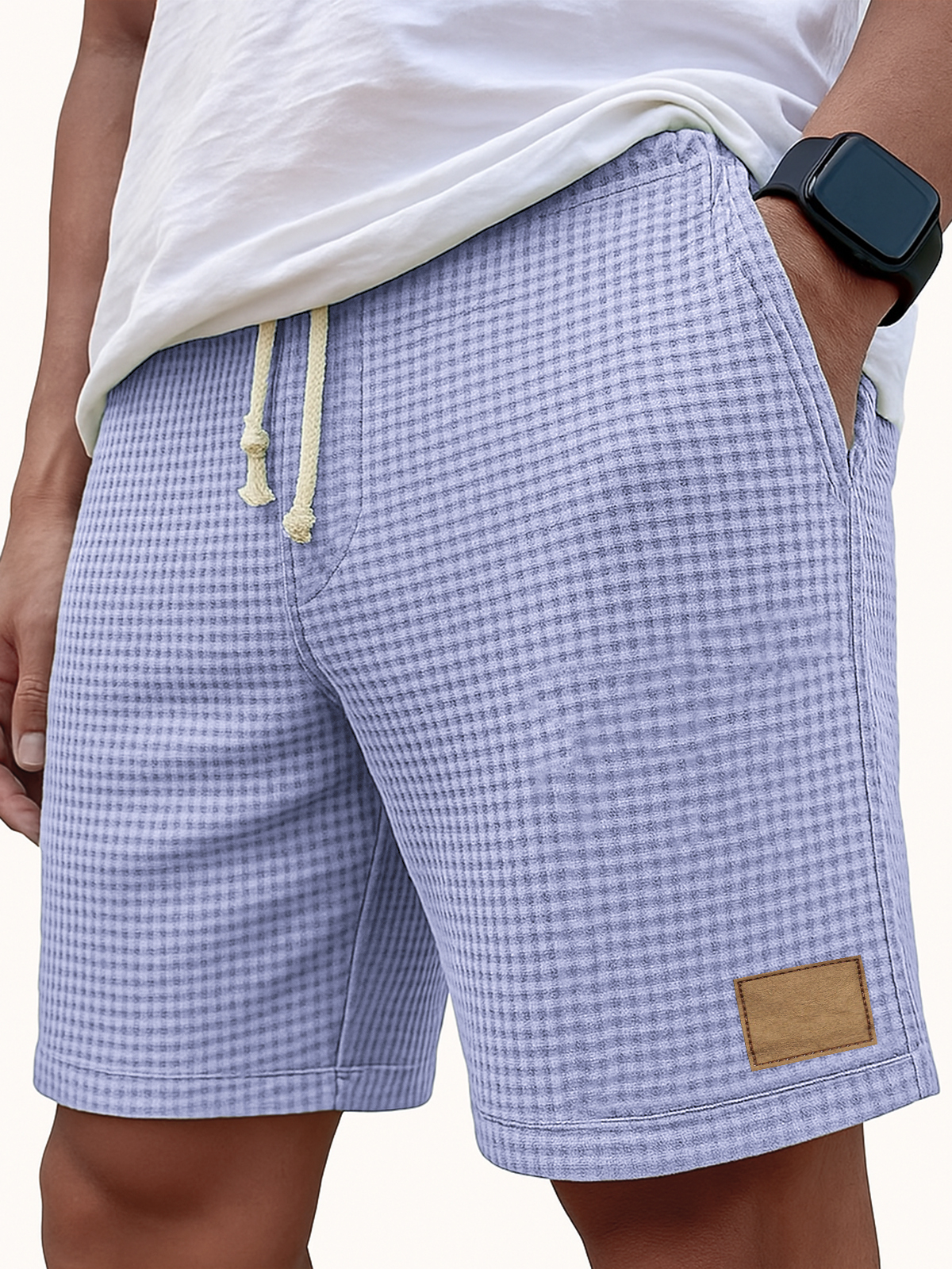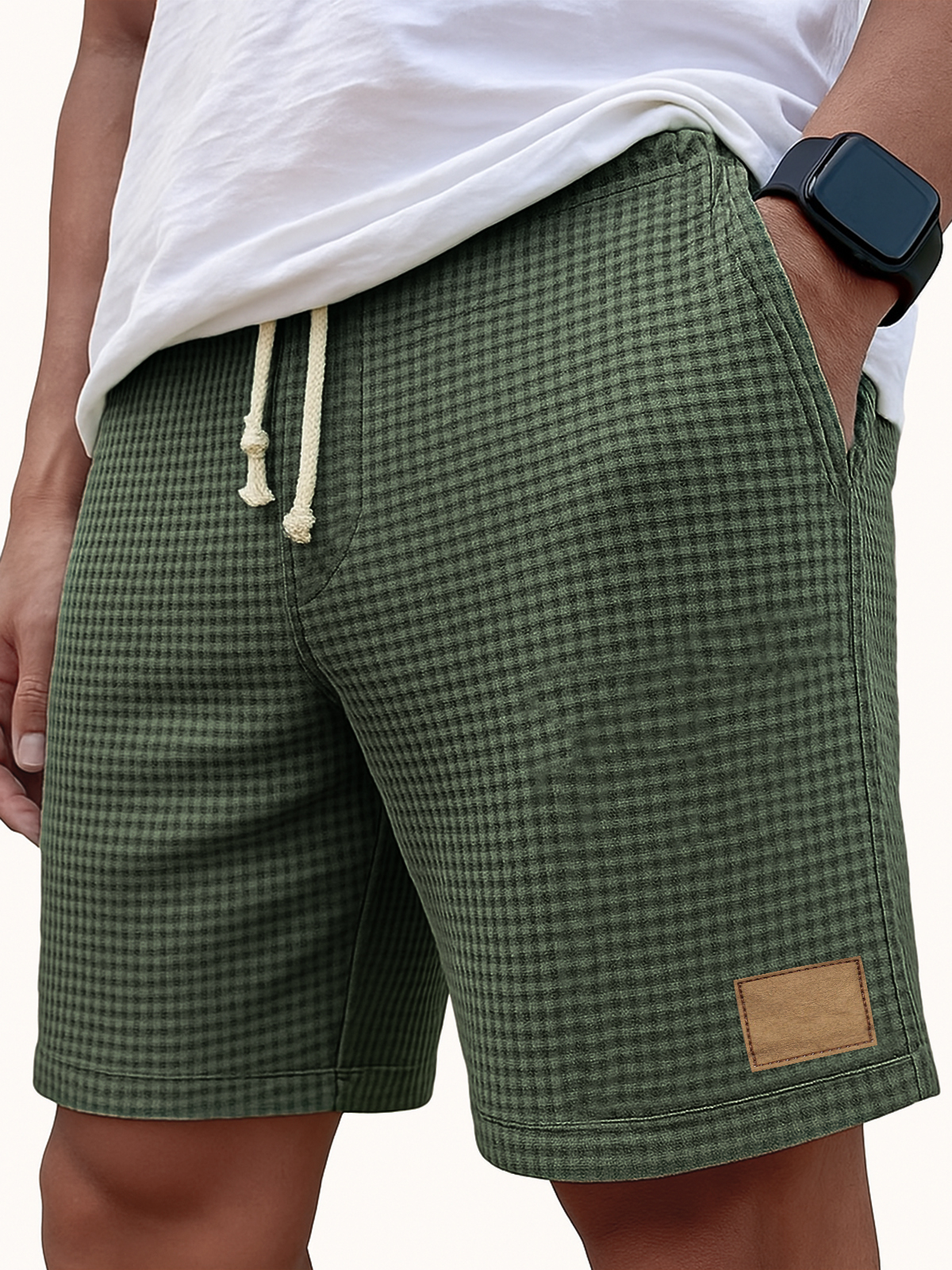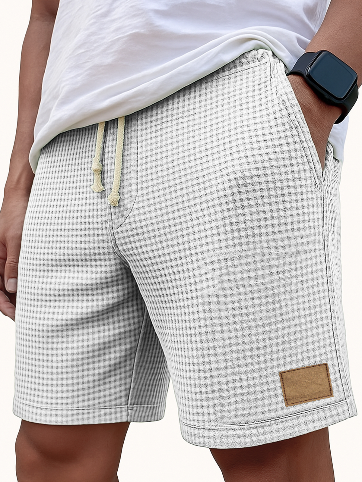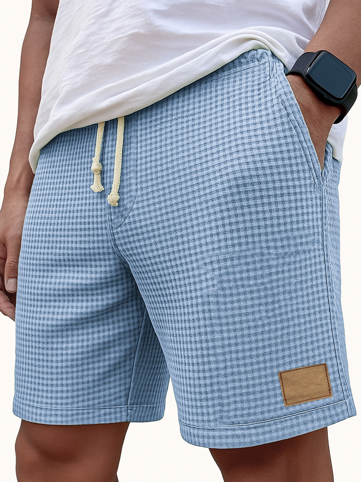 Men's Comfortable Waffle Vintage Embroidered Logo Casual Lace Up Loose Shorts