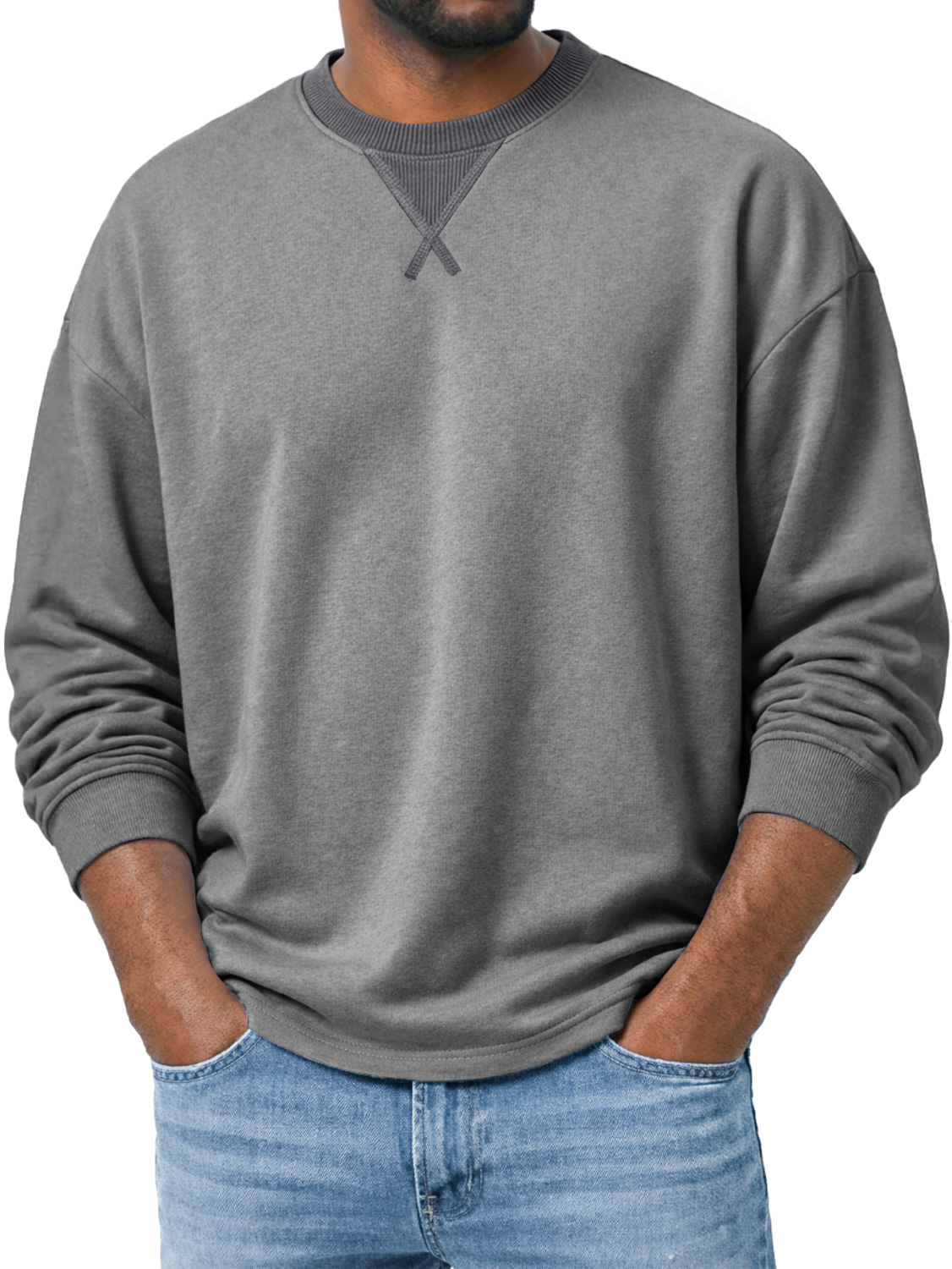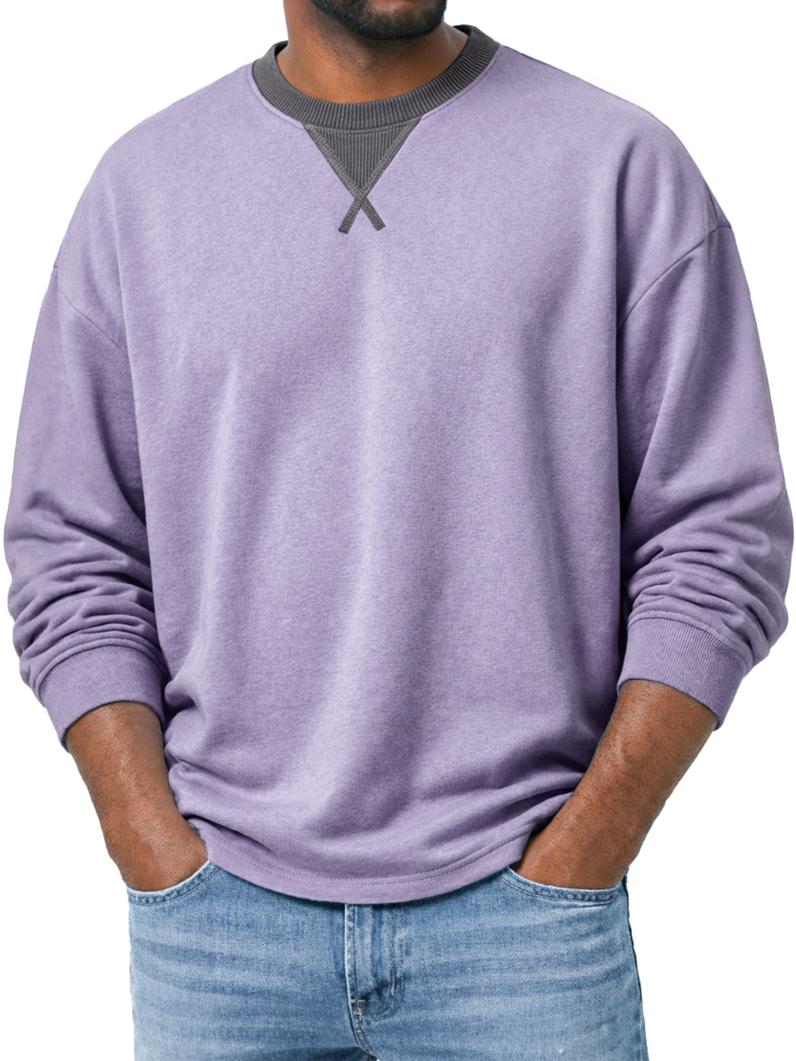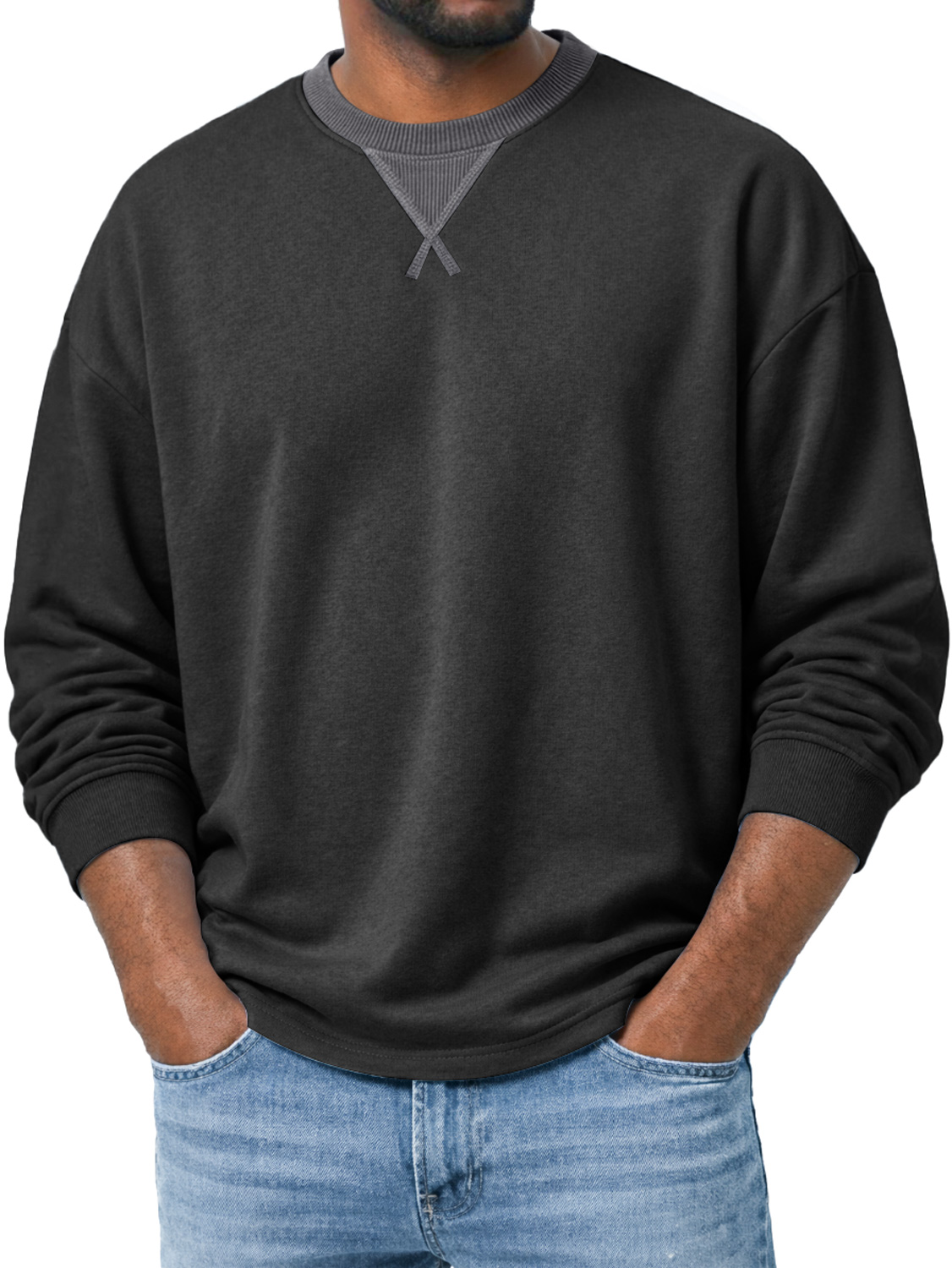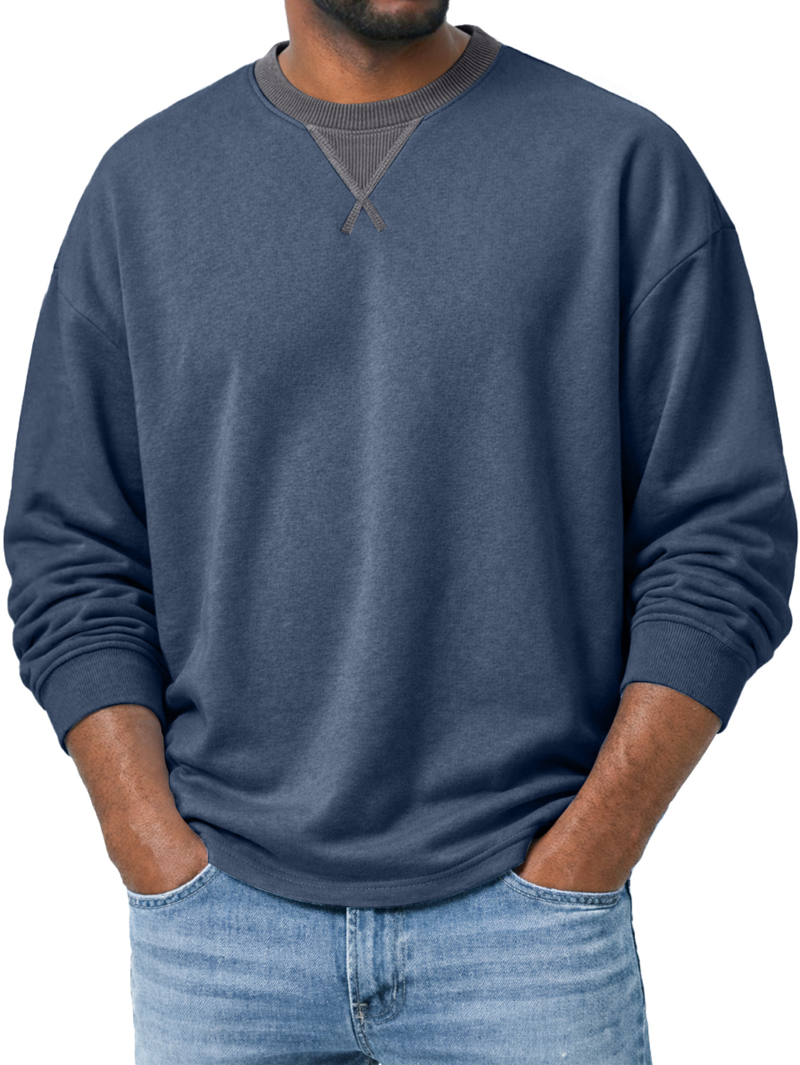 Men's Crew Neck Long-sleeved T-shirt With A Crossover Design, Casual And Comfortable
