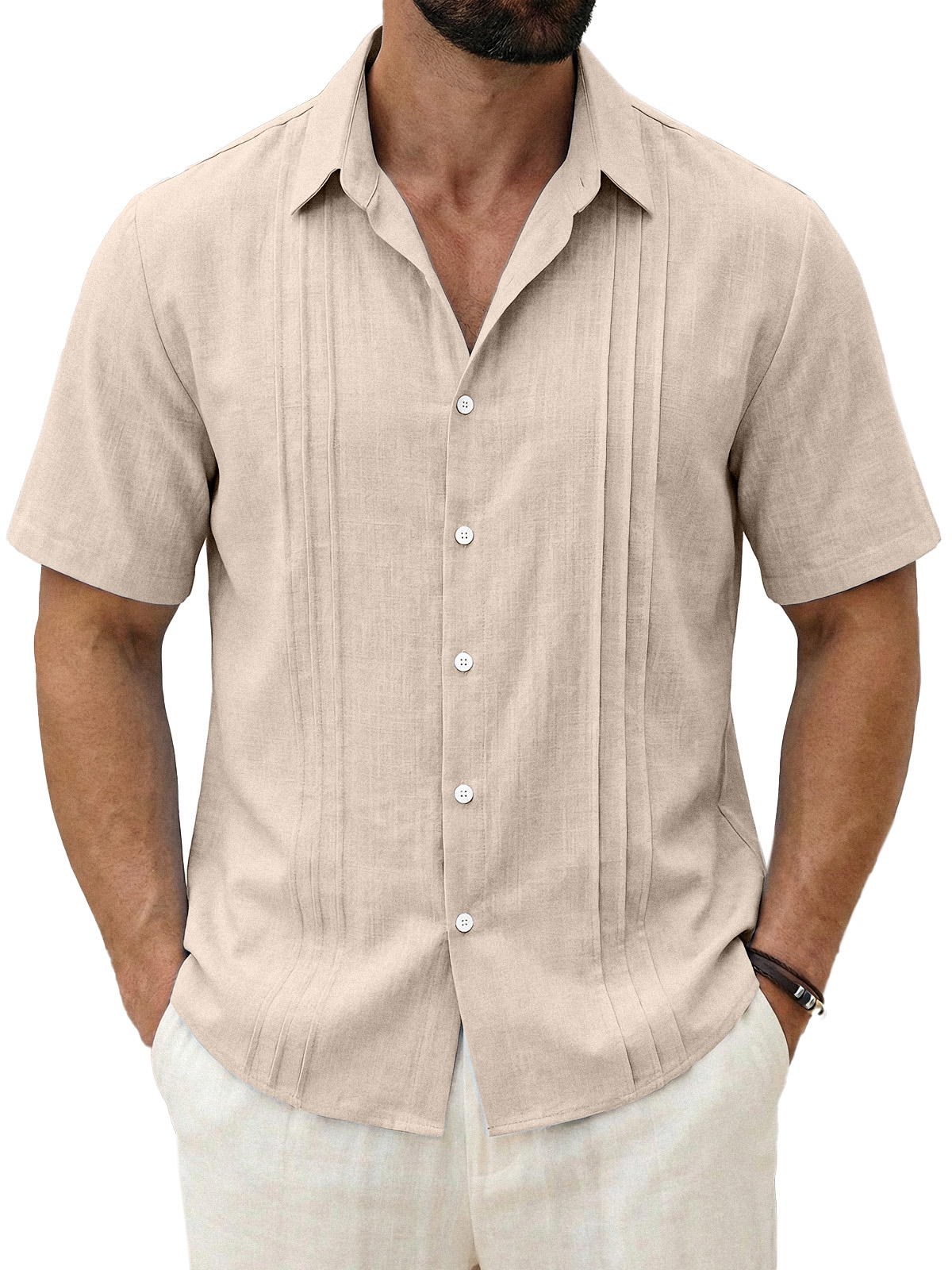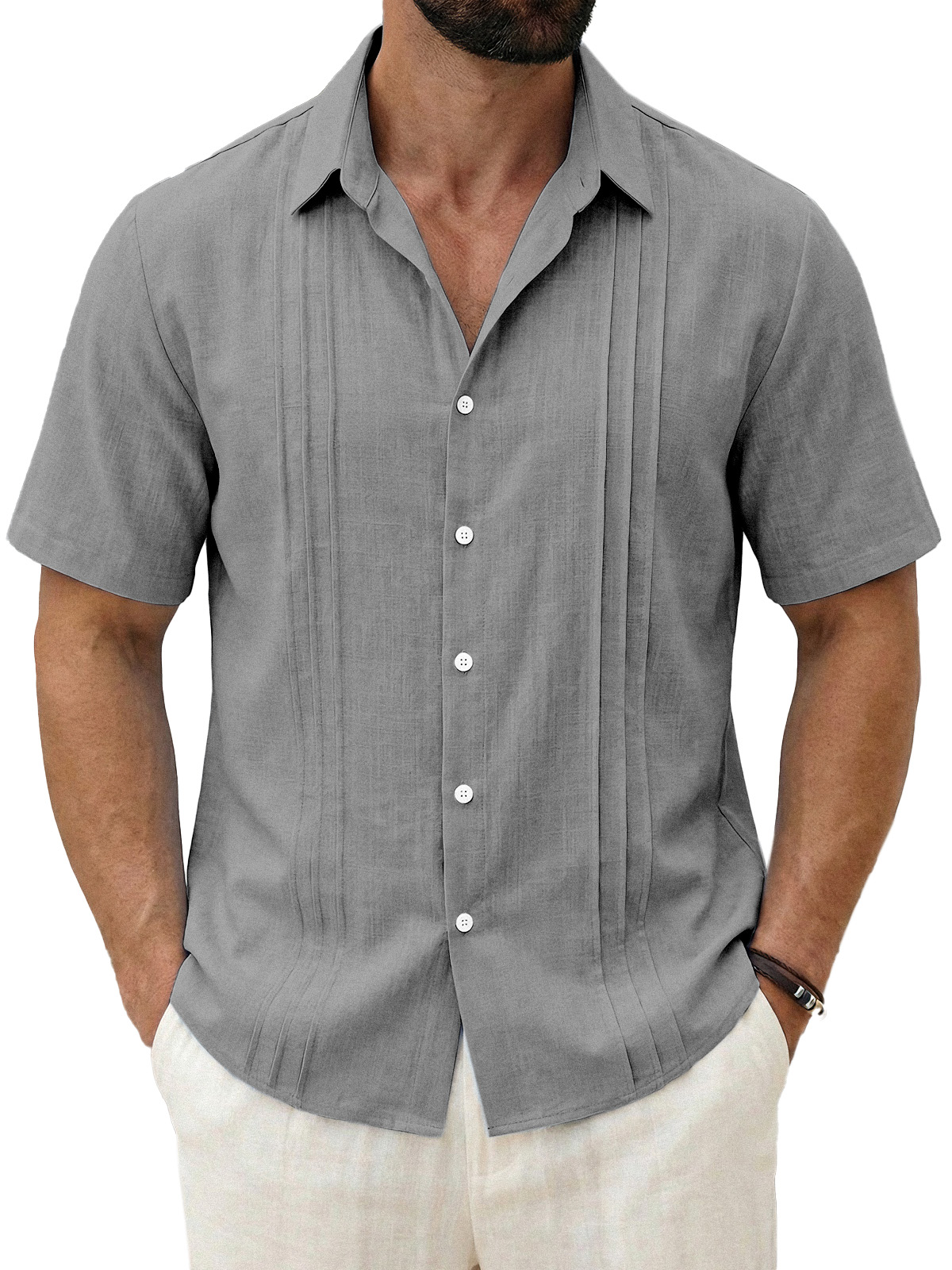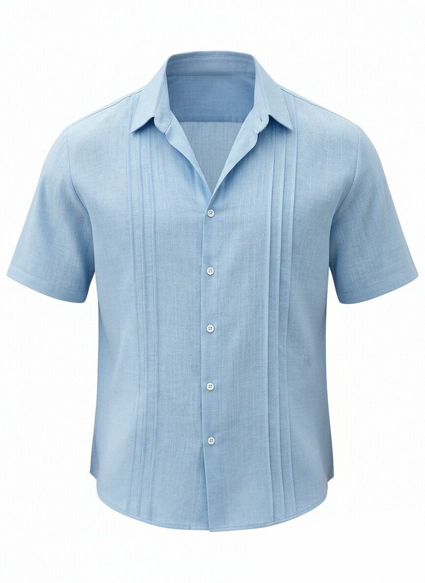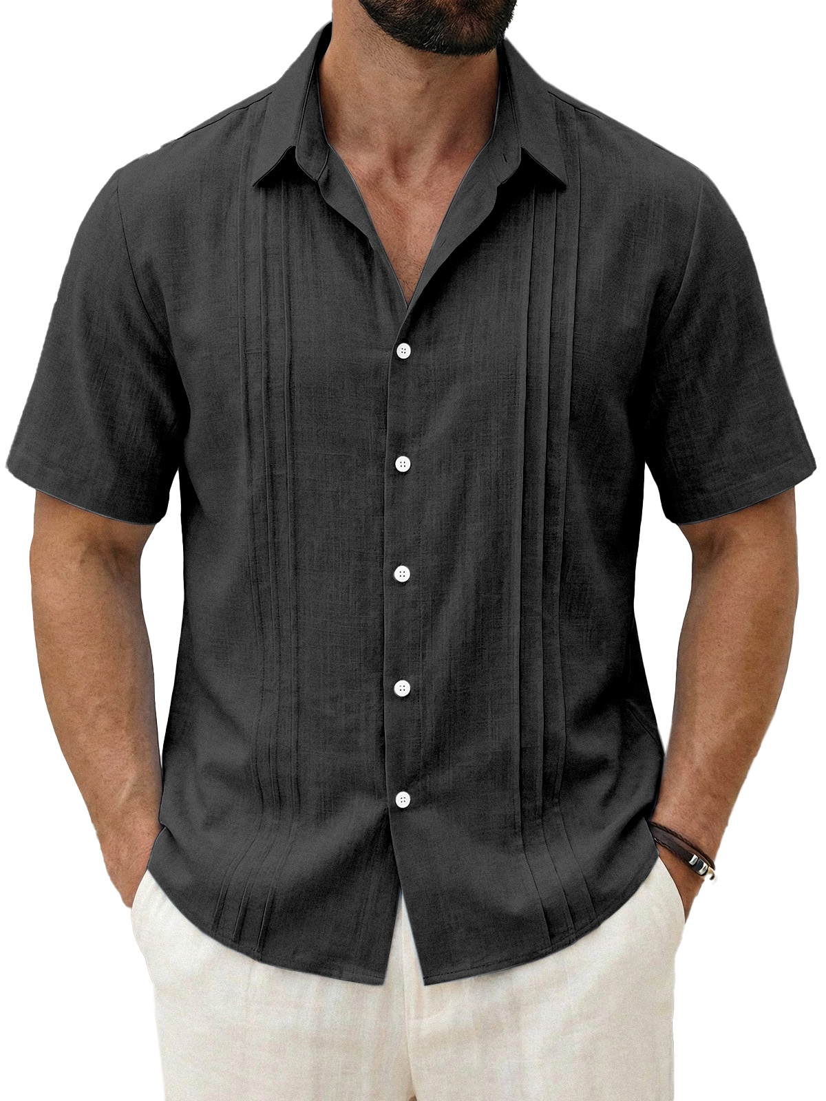 Men's Daily All-match Solid Color Pleated Short-sleeved Casual Shirt