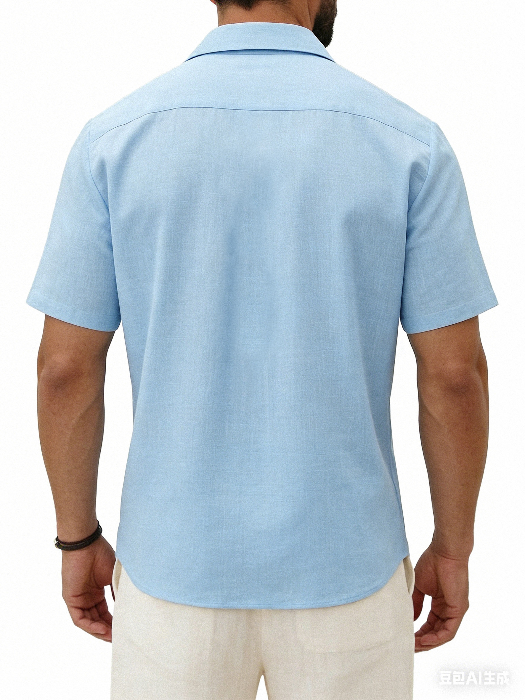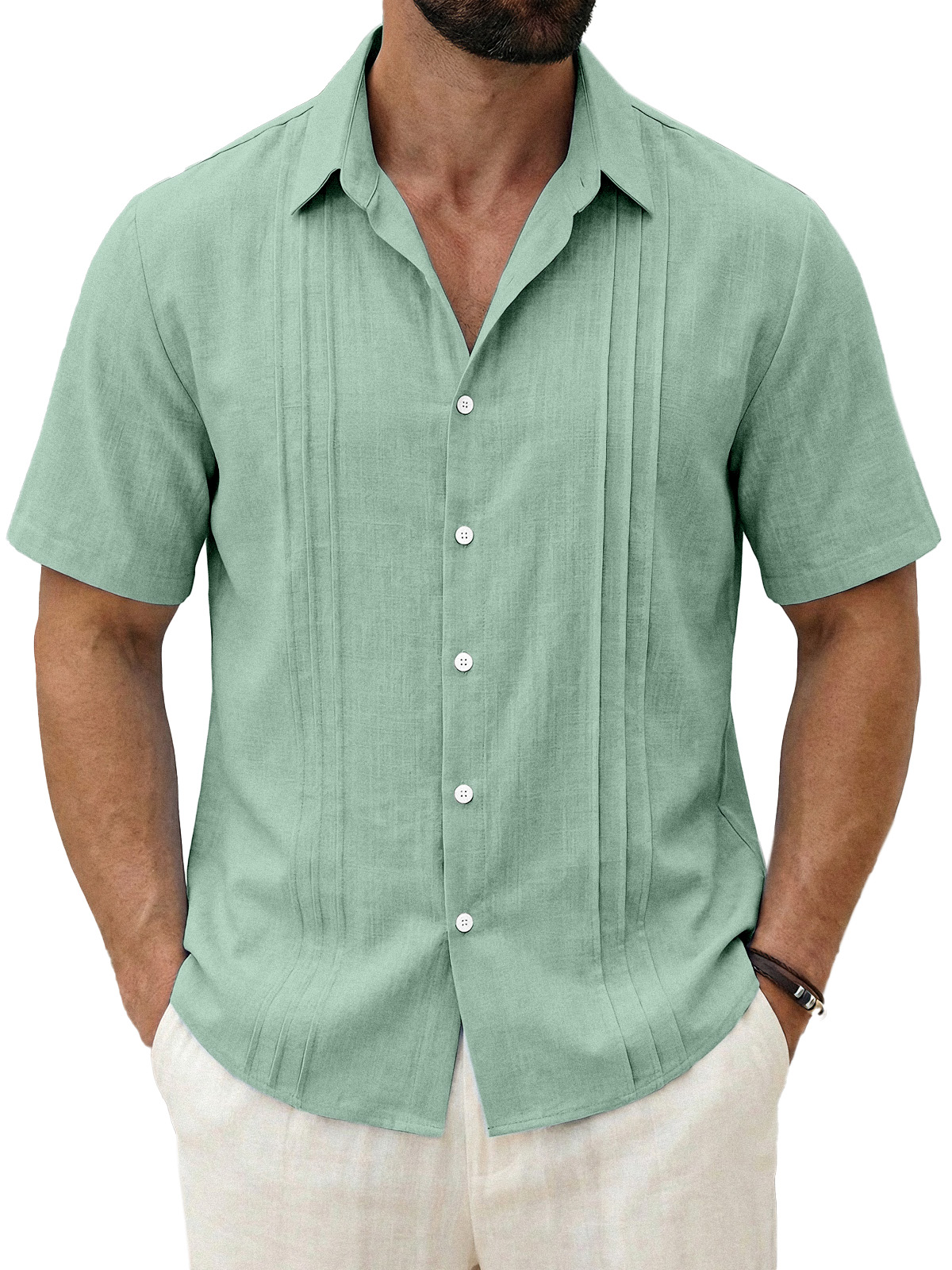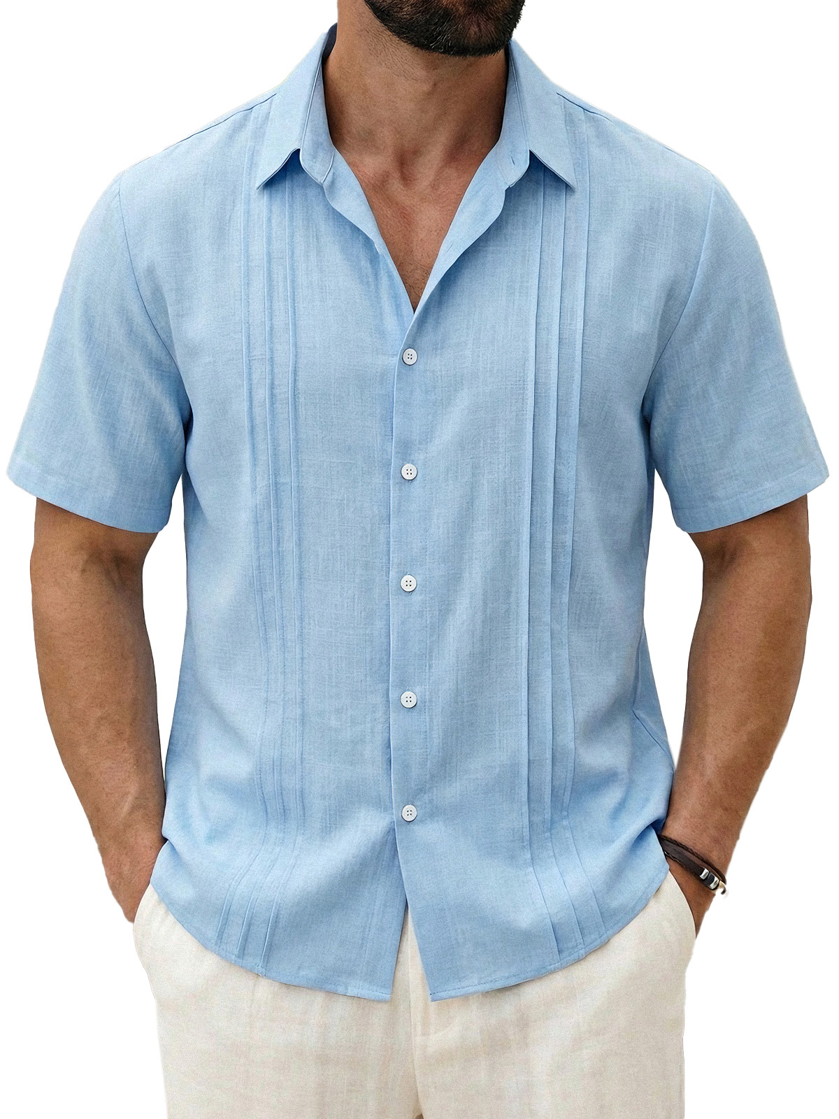 Men's Daily All-match Solid Color Pleated Short-sleeved Casual Shirt