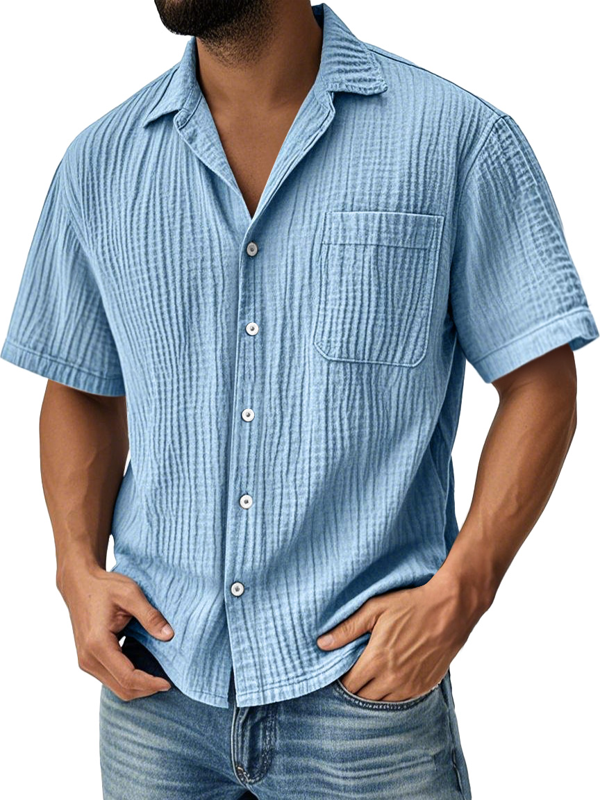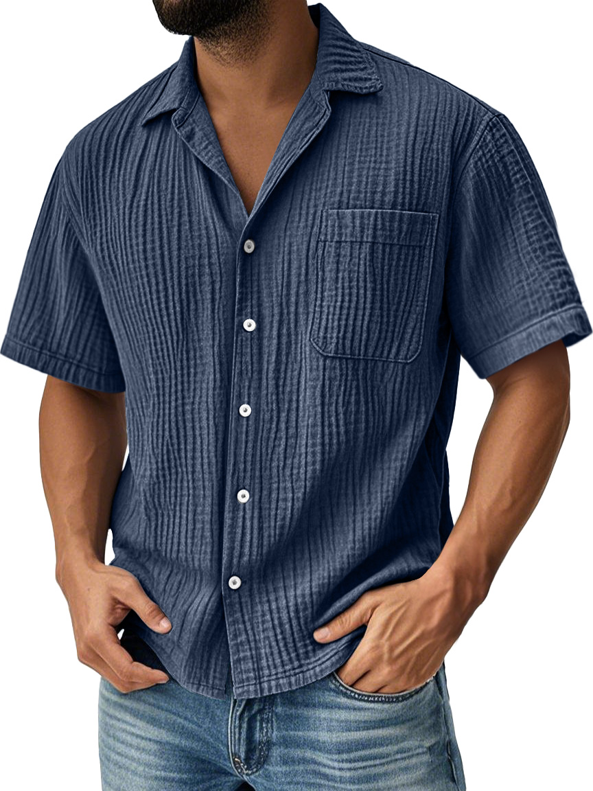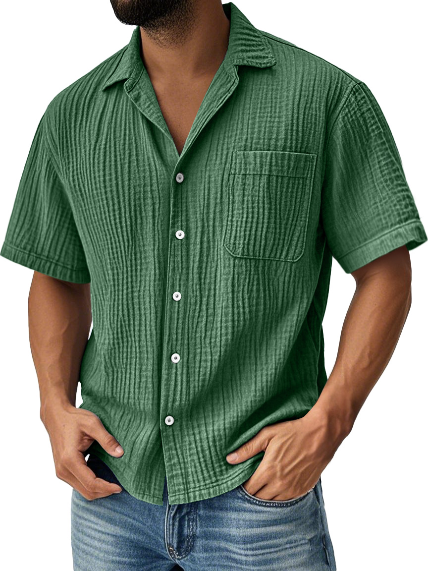 Men's Daily Pleated Pocket Casual Solid Color Short Sleeve Shirt