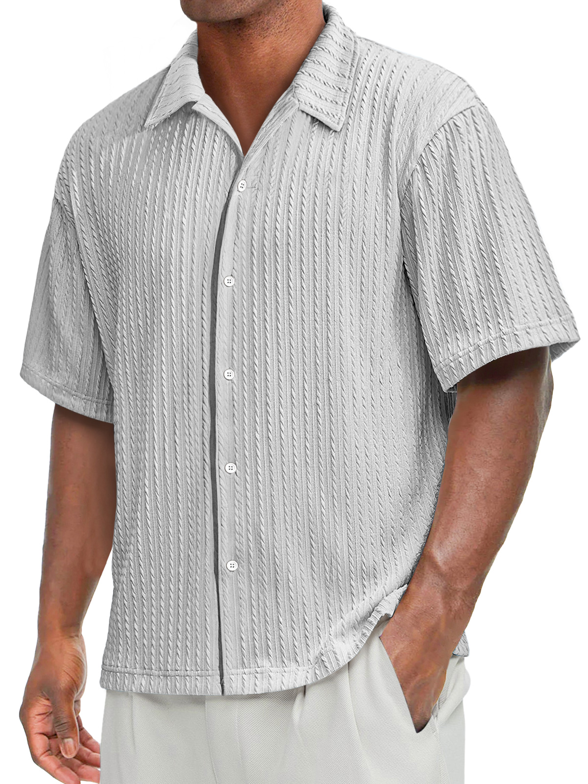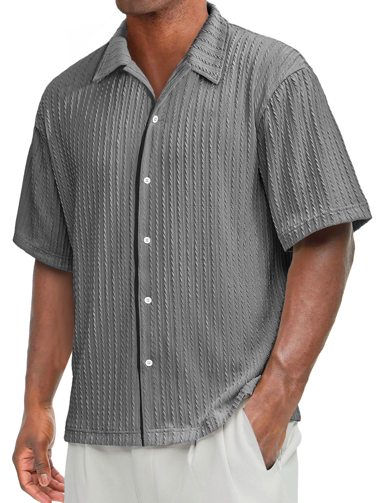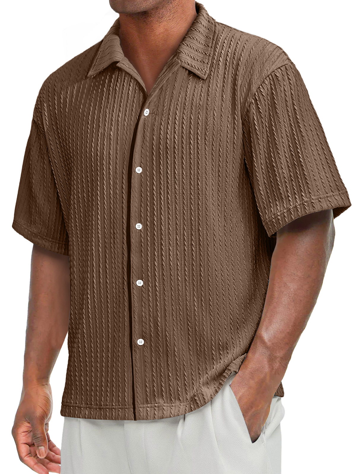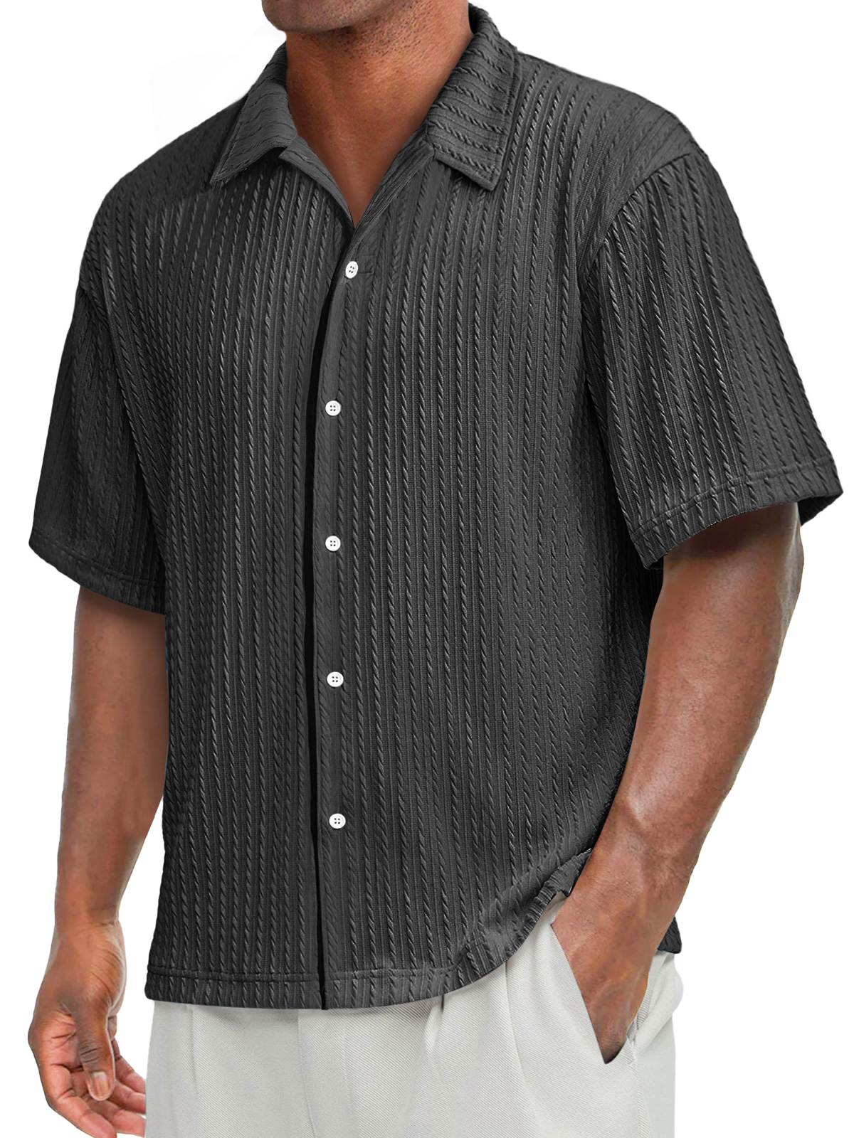 Men's Daily Texture Casual Lapel Solid Color Comfortable Short-sleeved Shirt