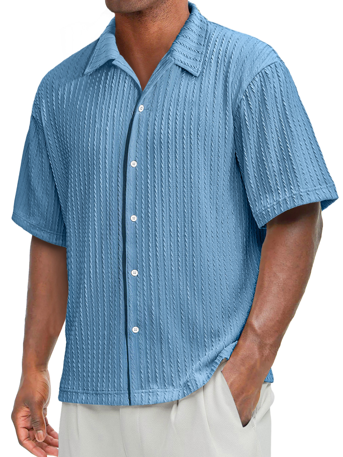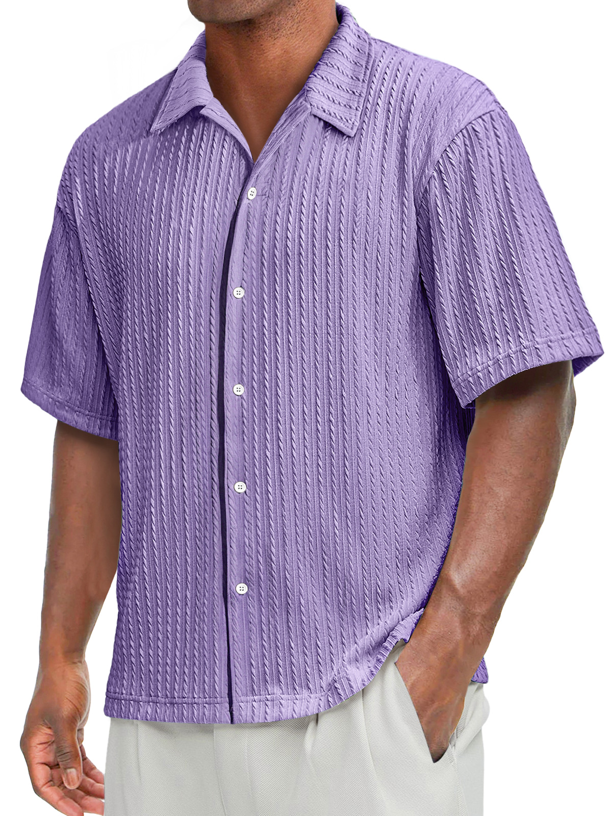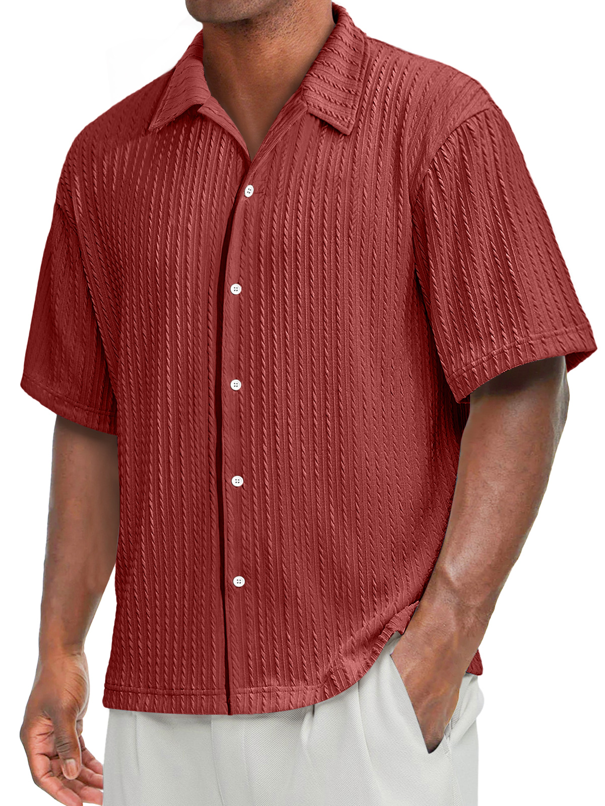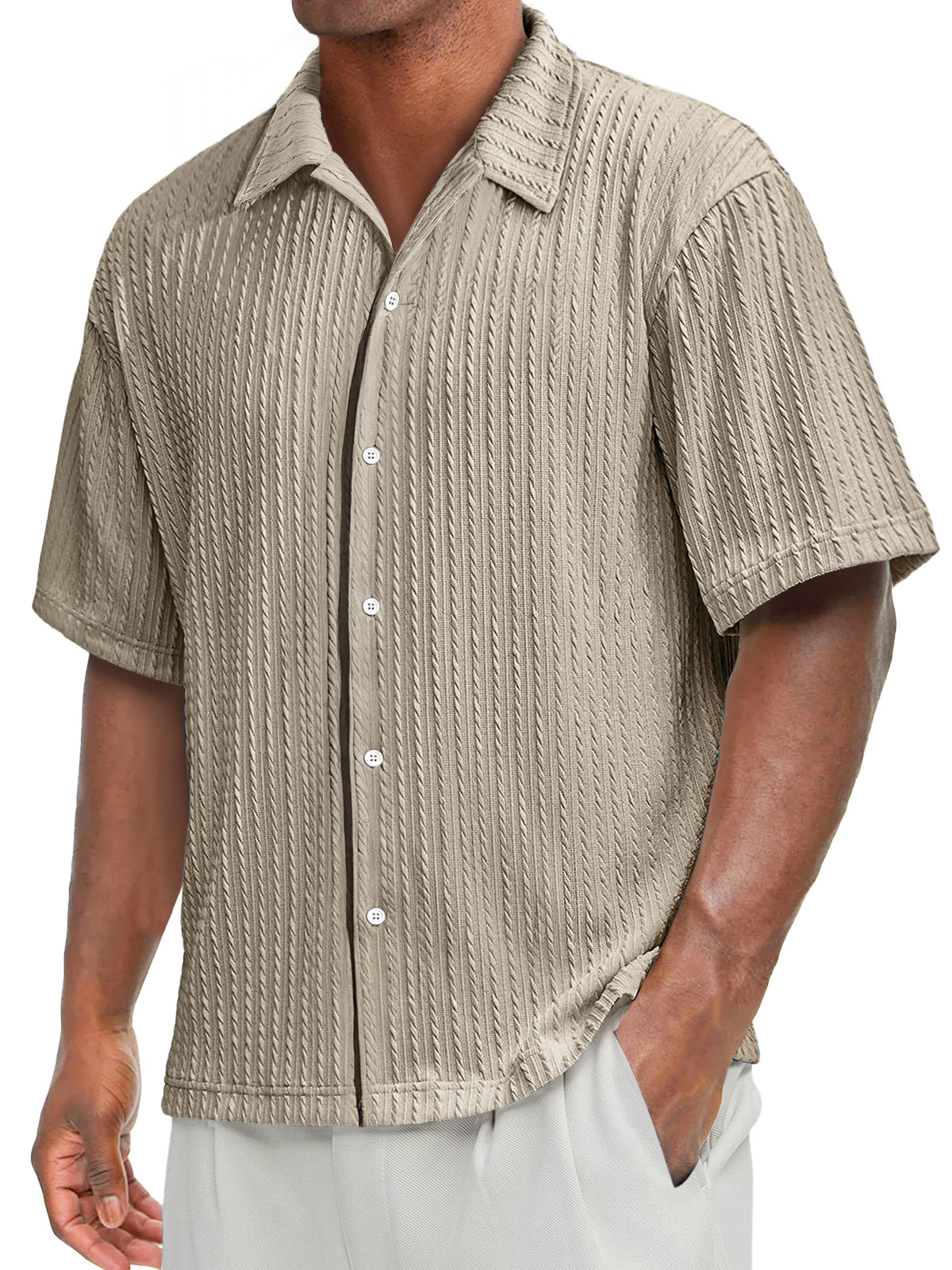 Men's Daily Texture Casual Lapel Solid Color Comfortable Short-sleeved Shirt