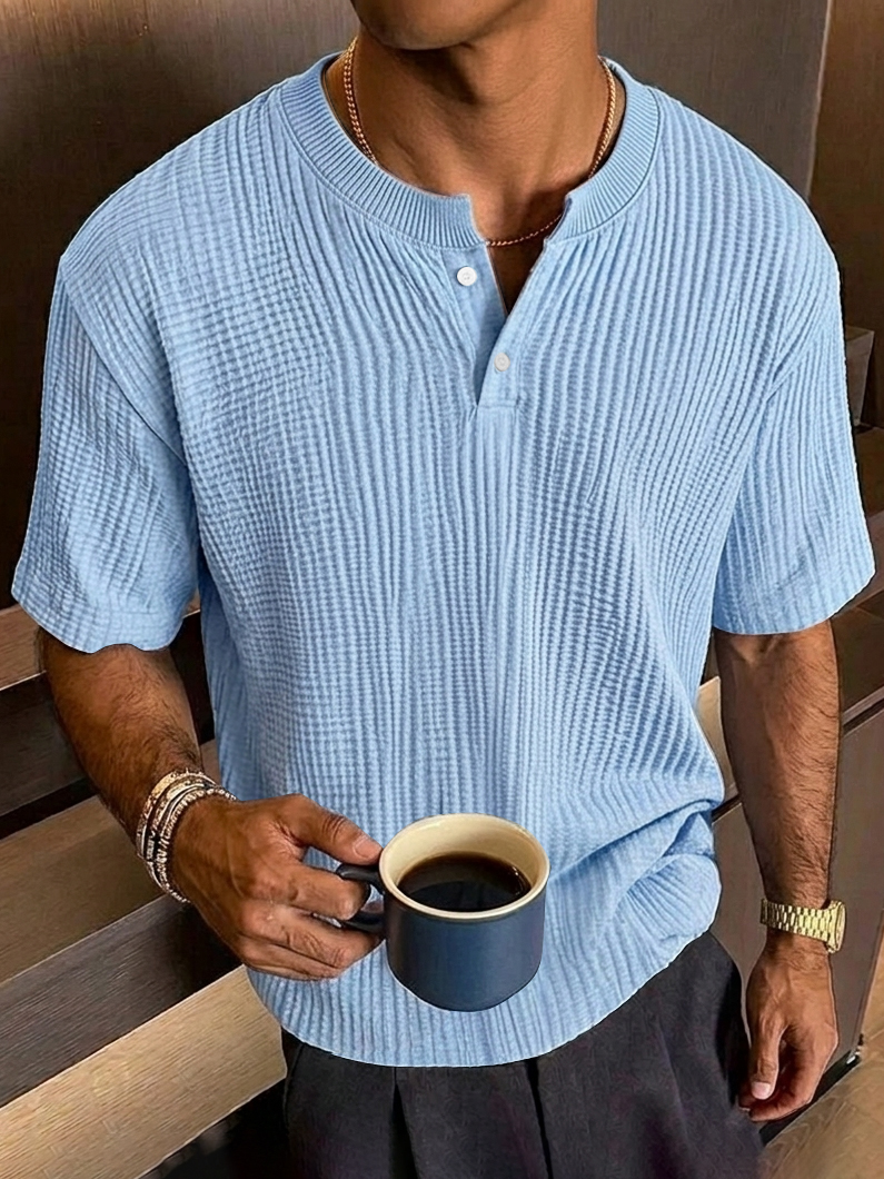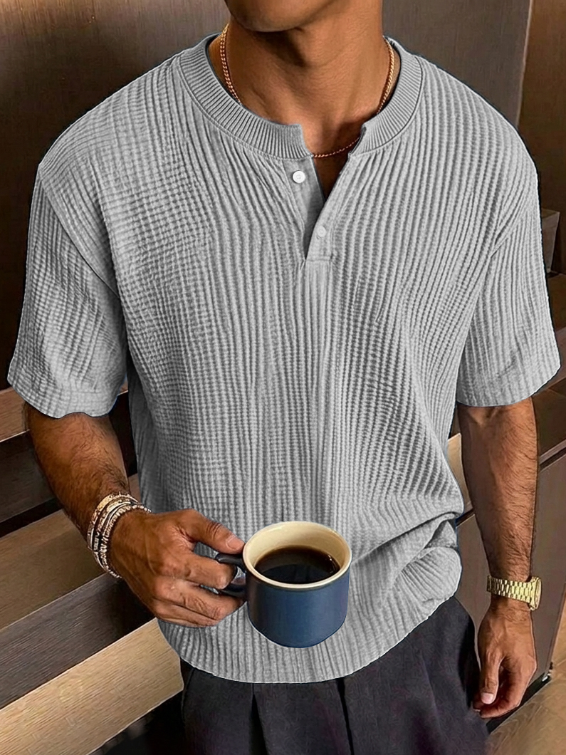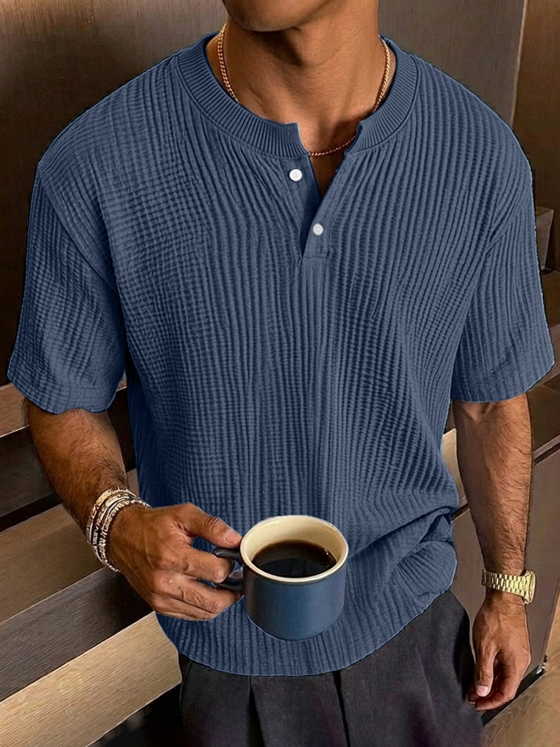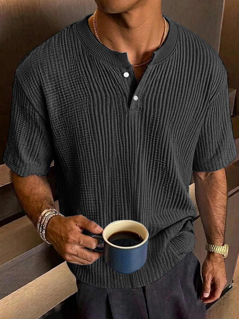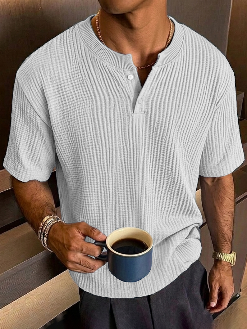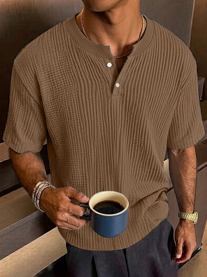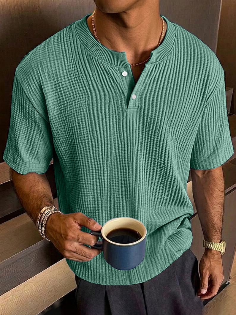 Men's Everyday Casual Textured Short-Sleeve Henley Shirt