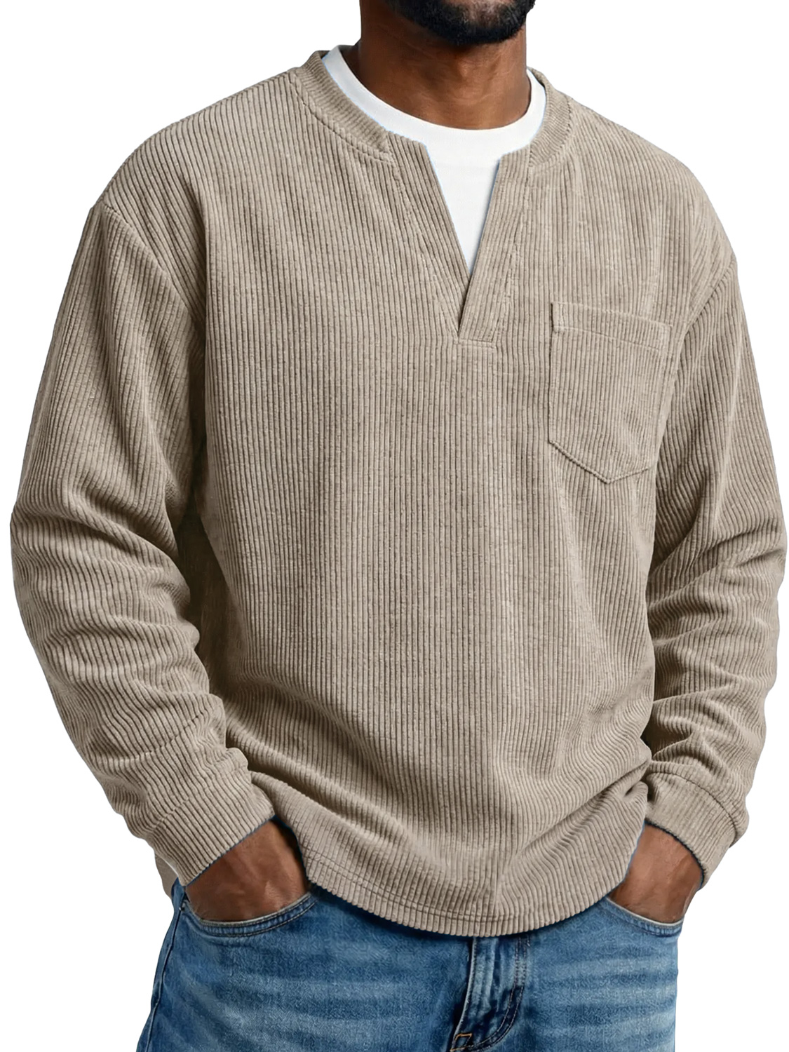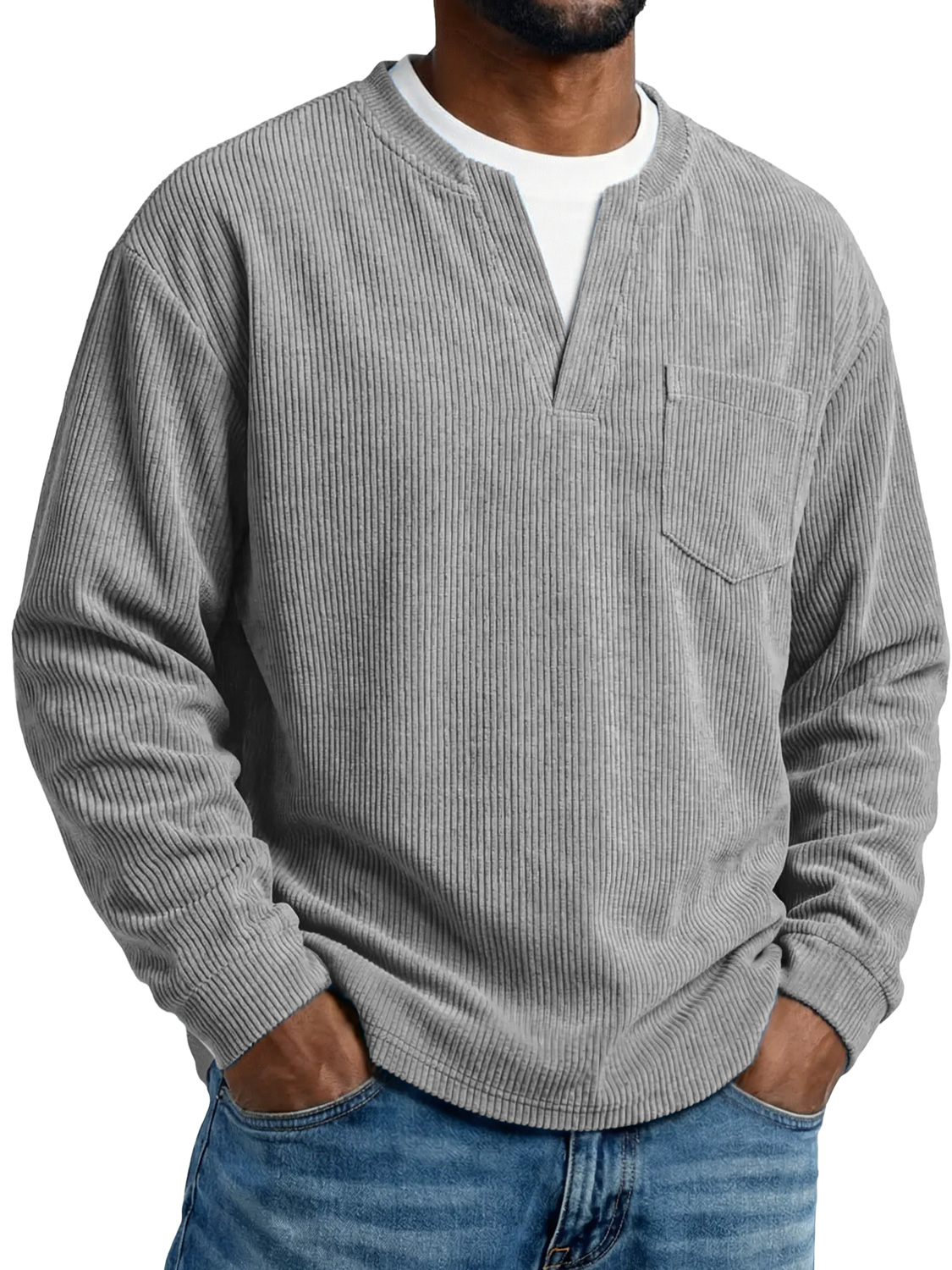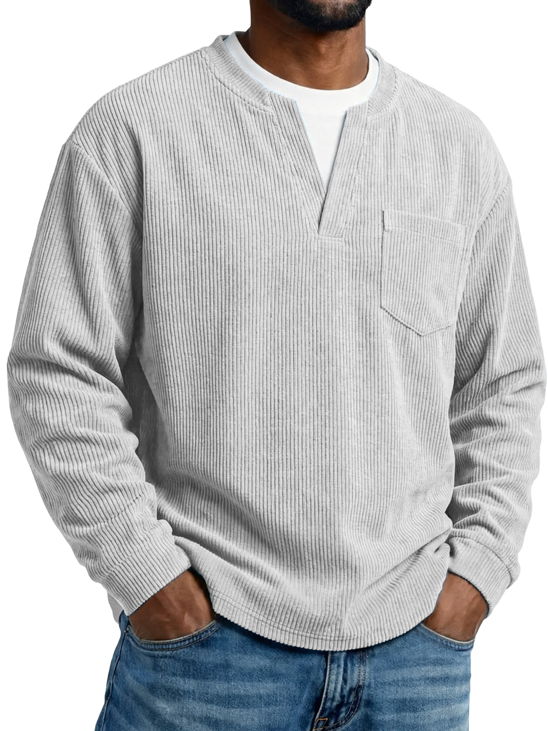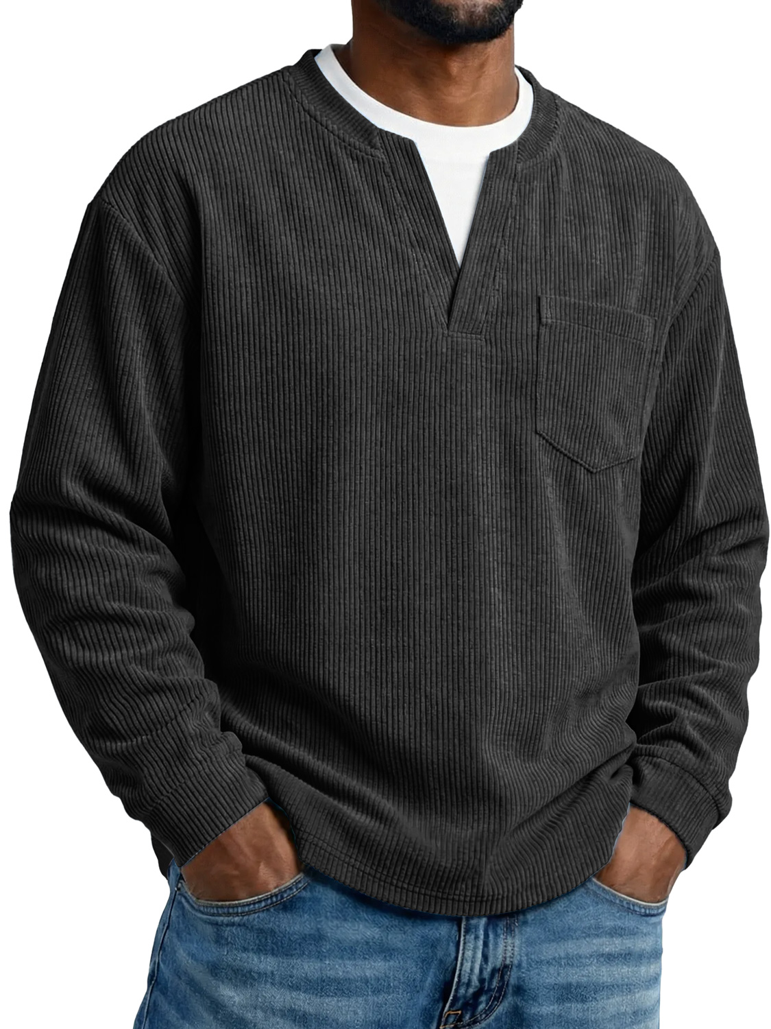 Men's Everyday Corduroy Faux Two-piece Casual Pocket Long-sleeved T-shirt
