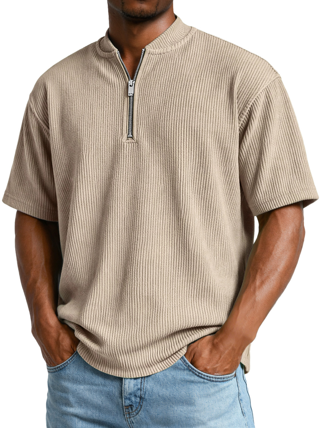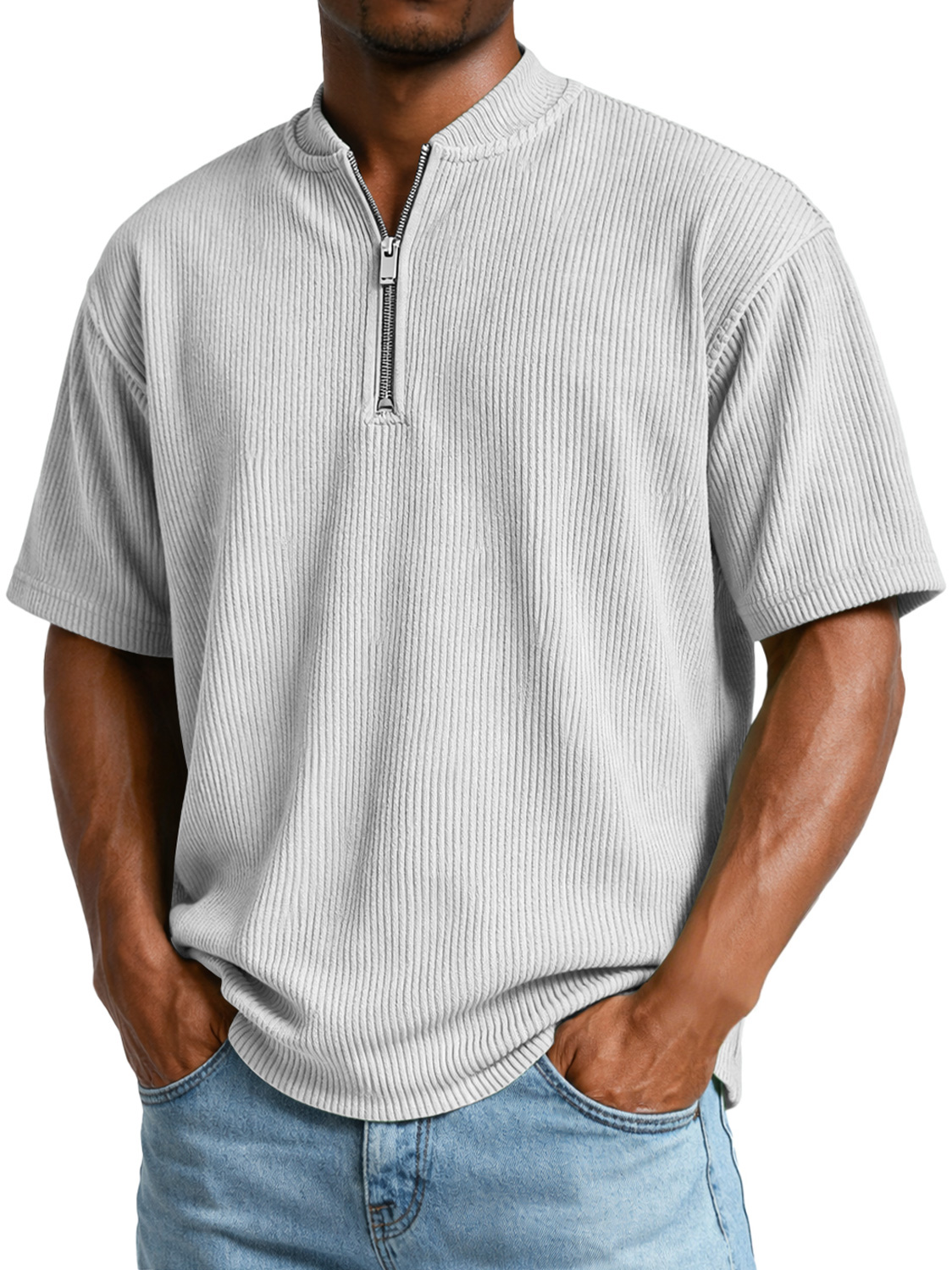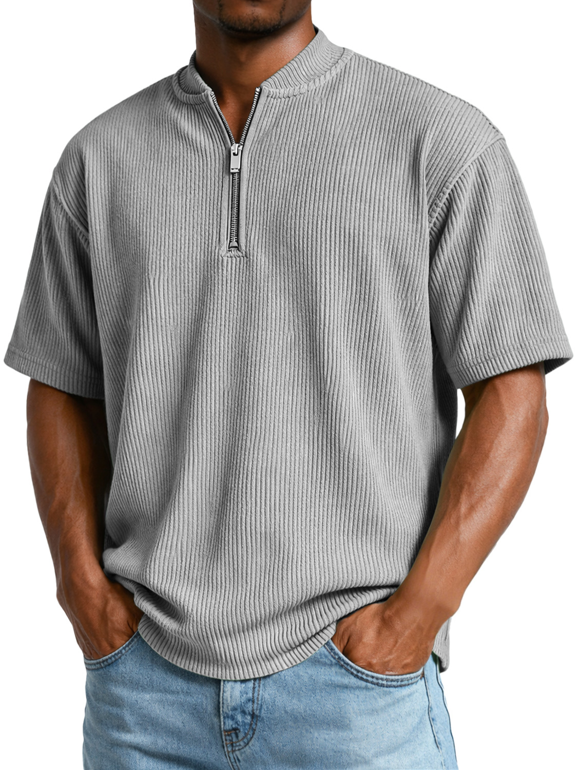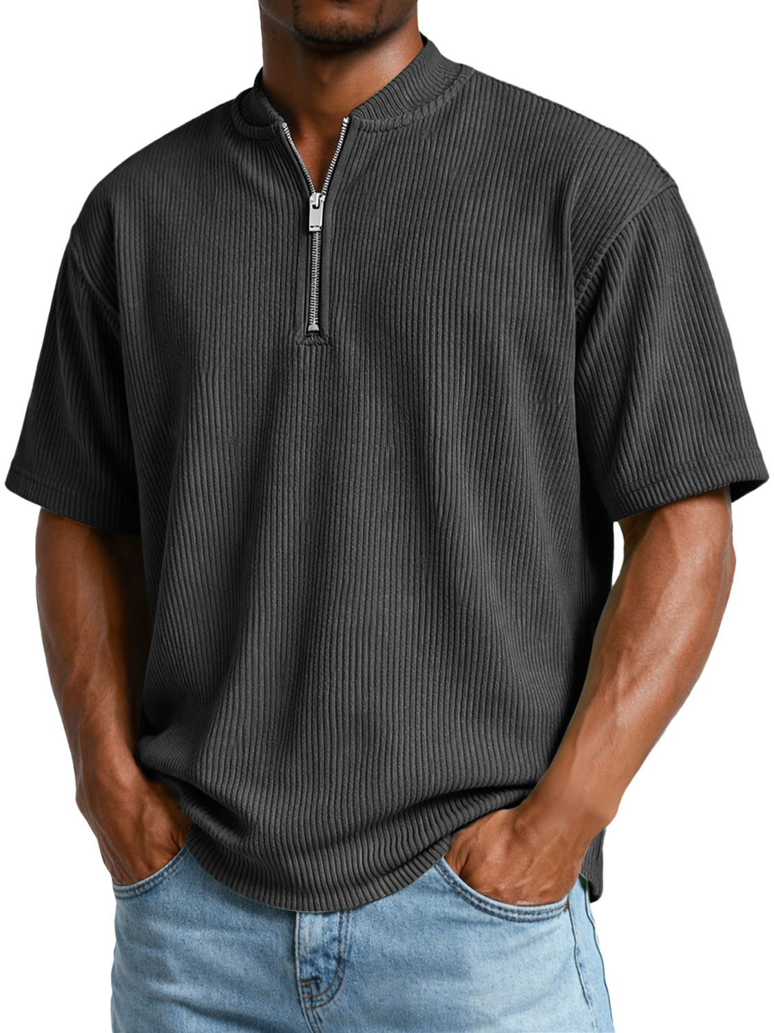 Men's Everyday Ribbed Zip-up Short-sleeved Casual T-shirt
