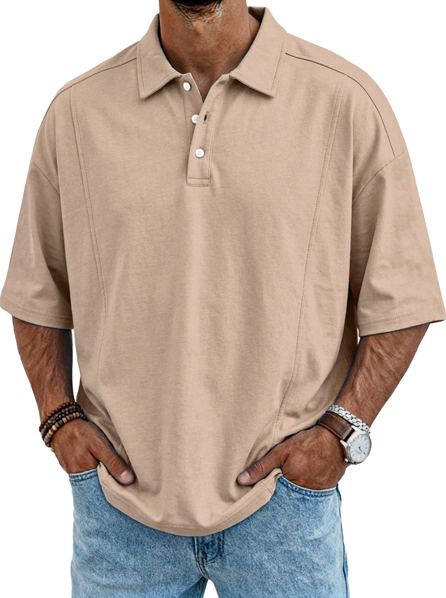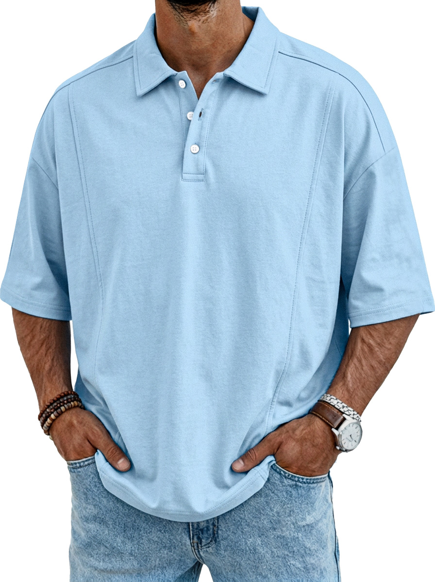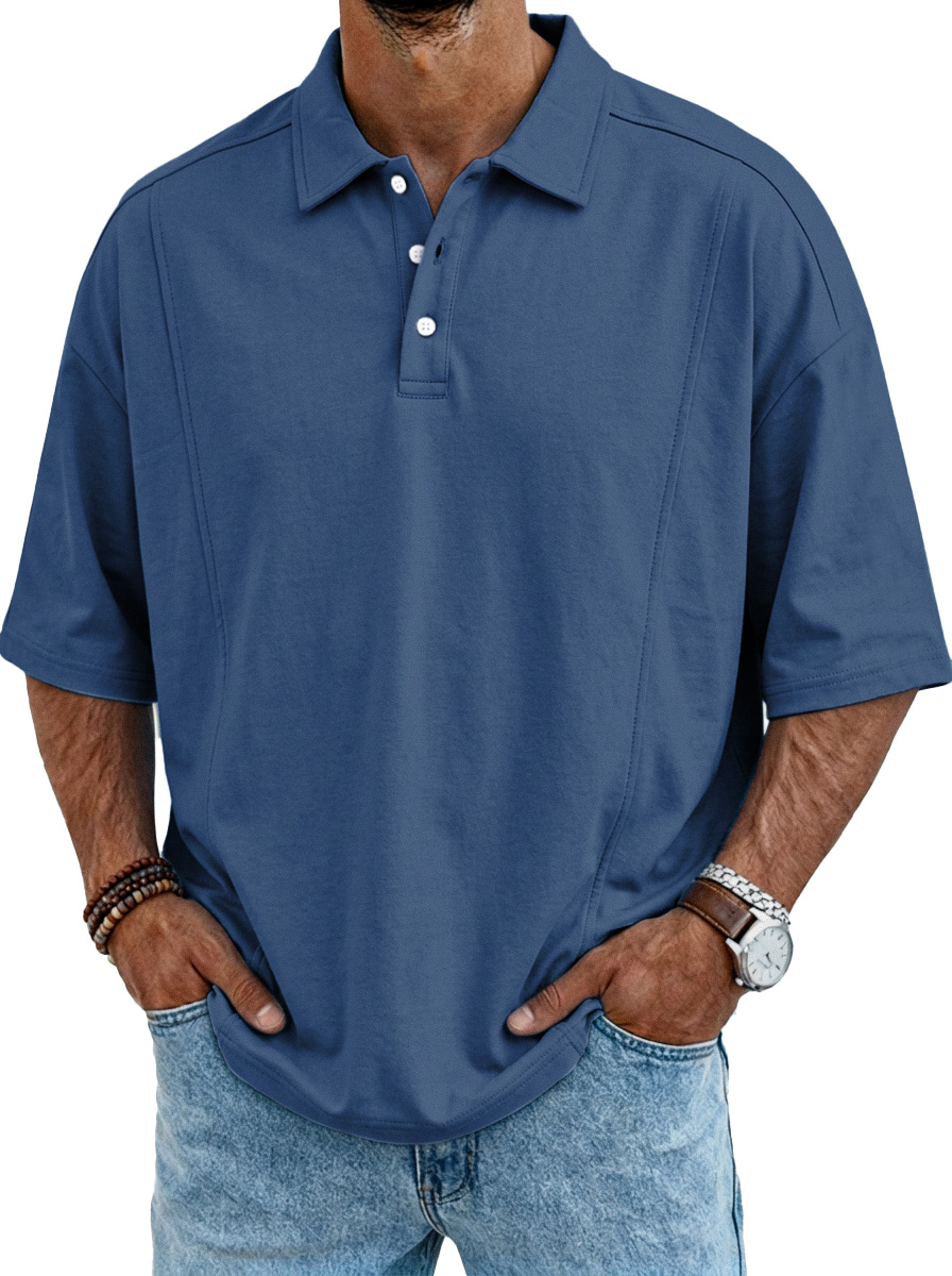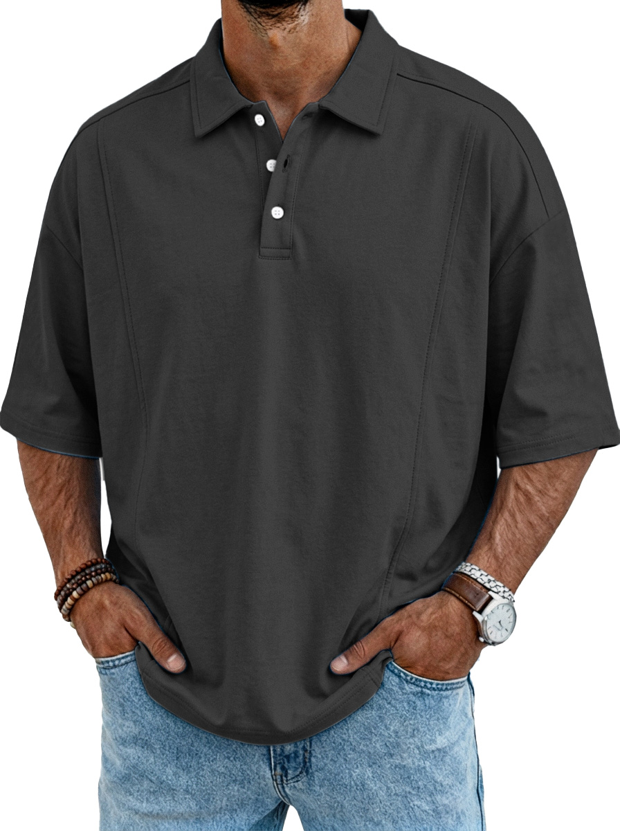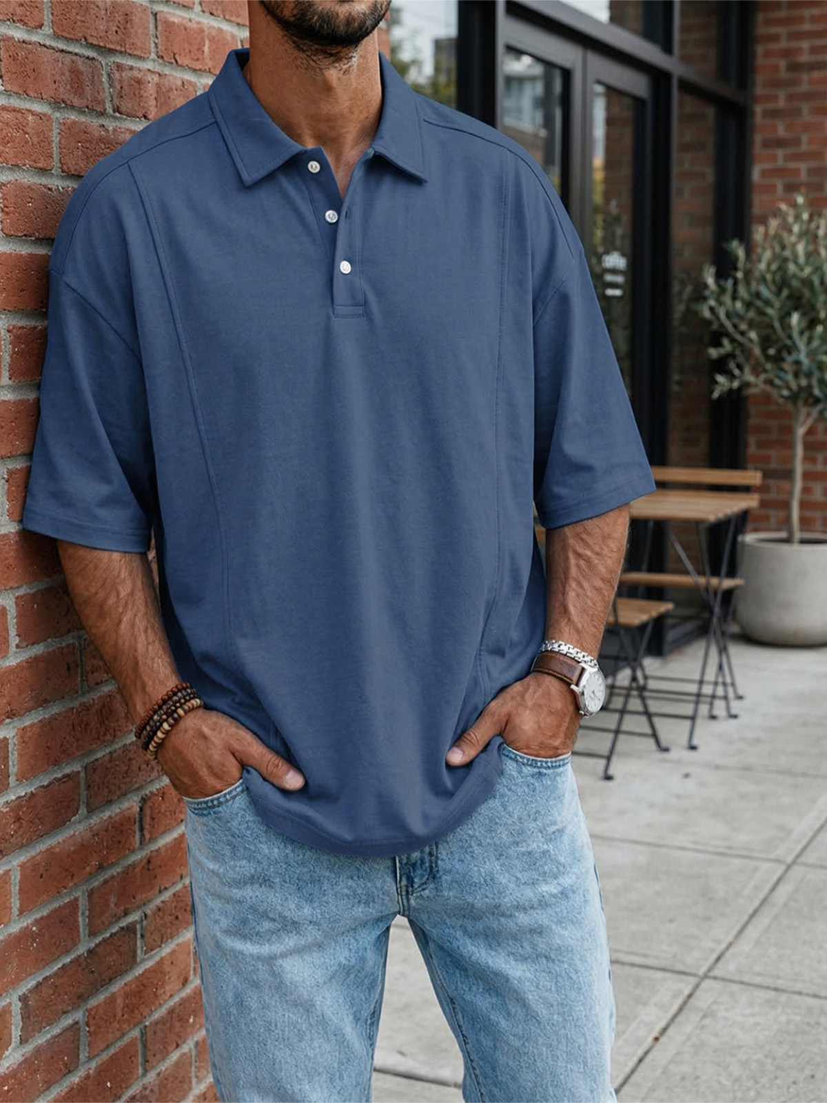 Men's Everyday Simple Deconstructed Design Button Short Sleeve Polo Shirt