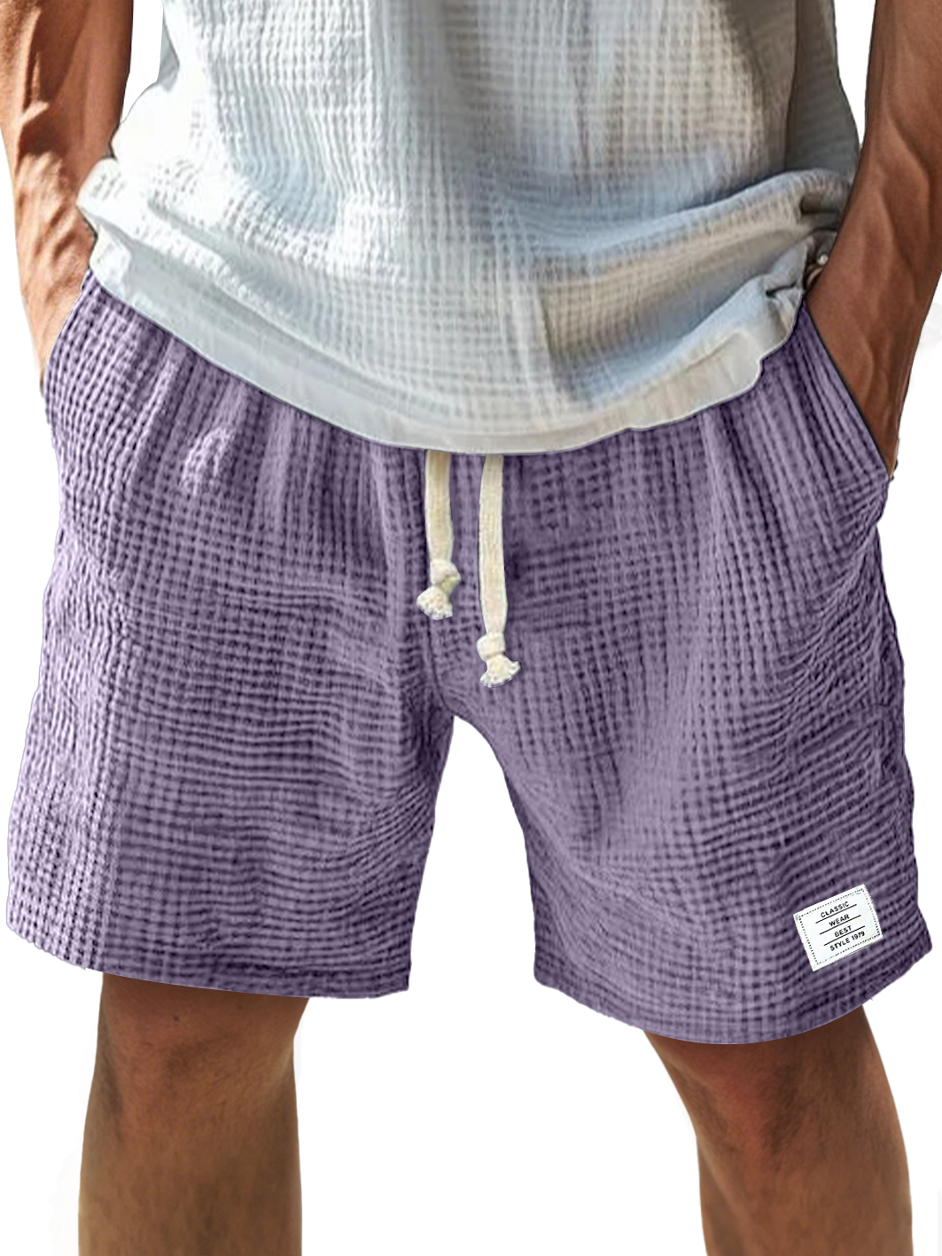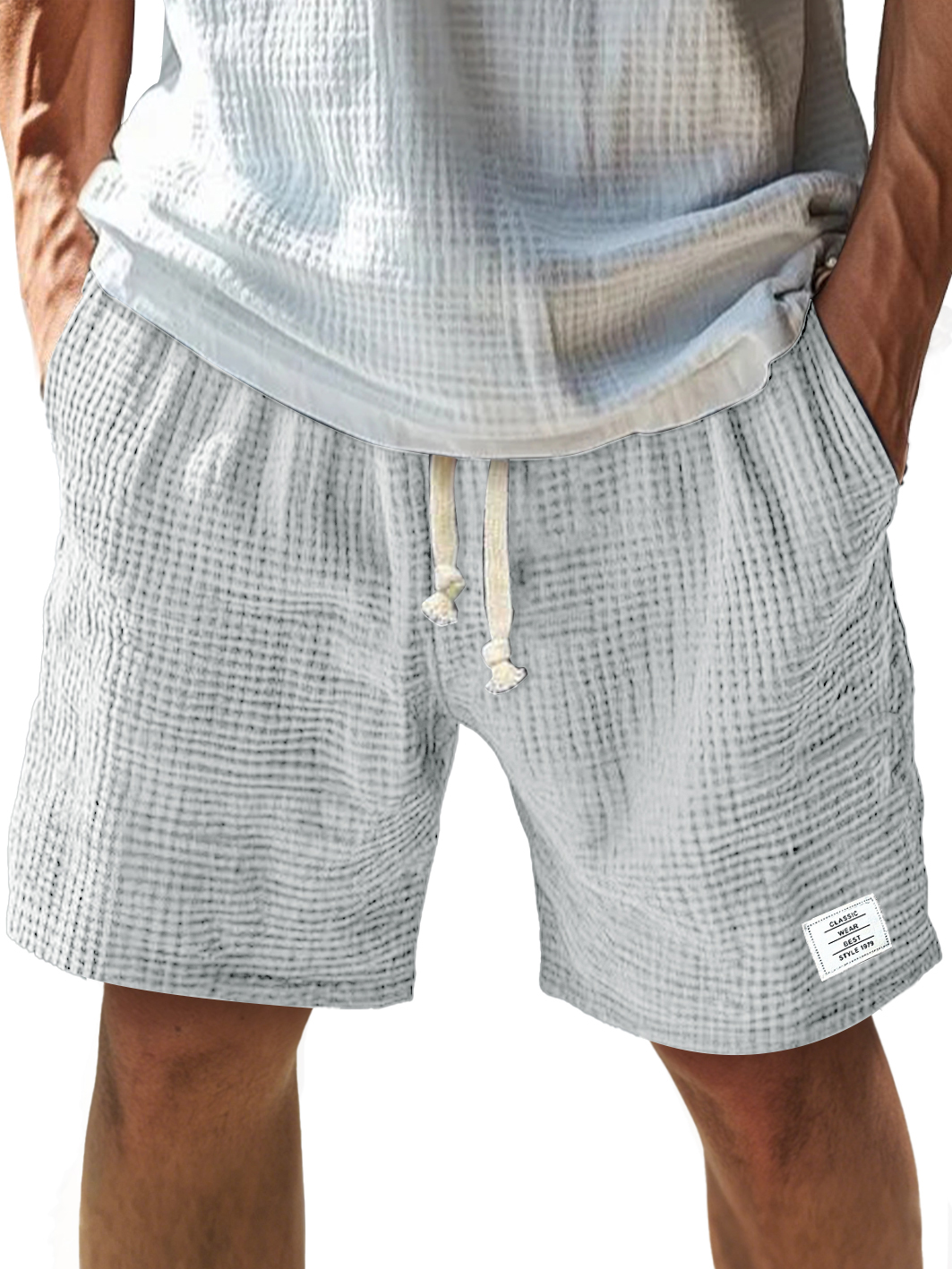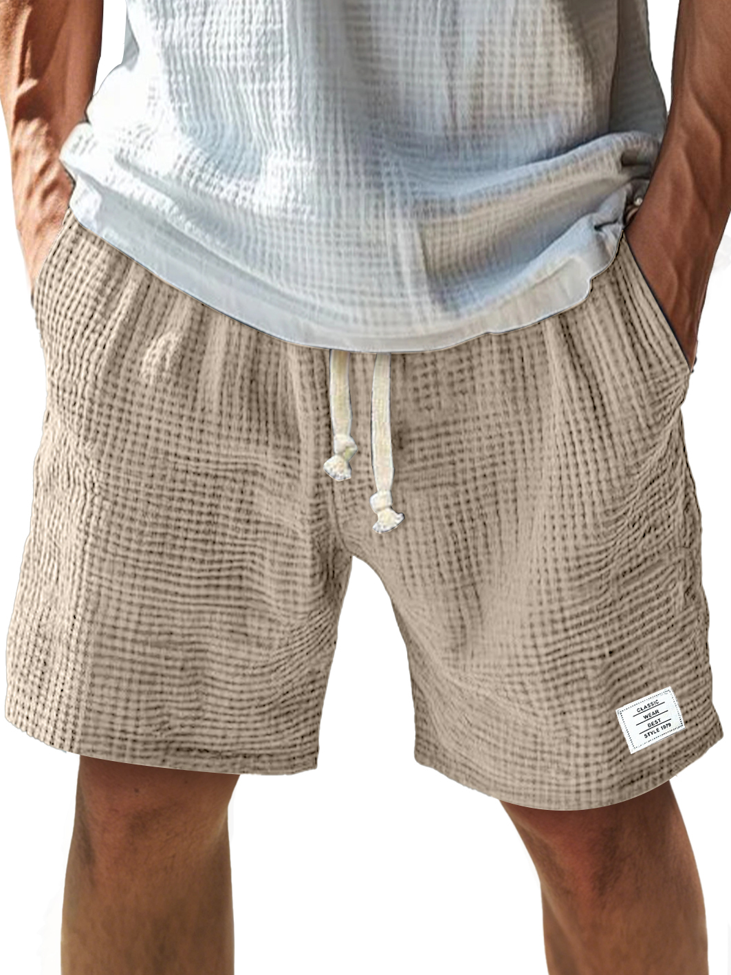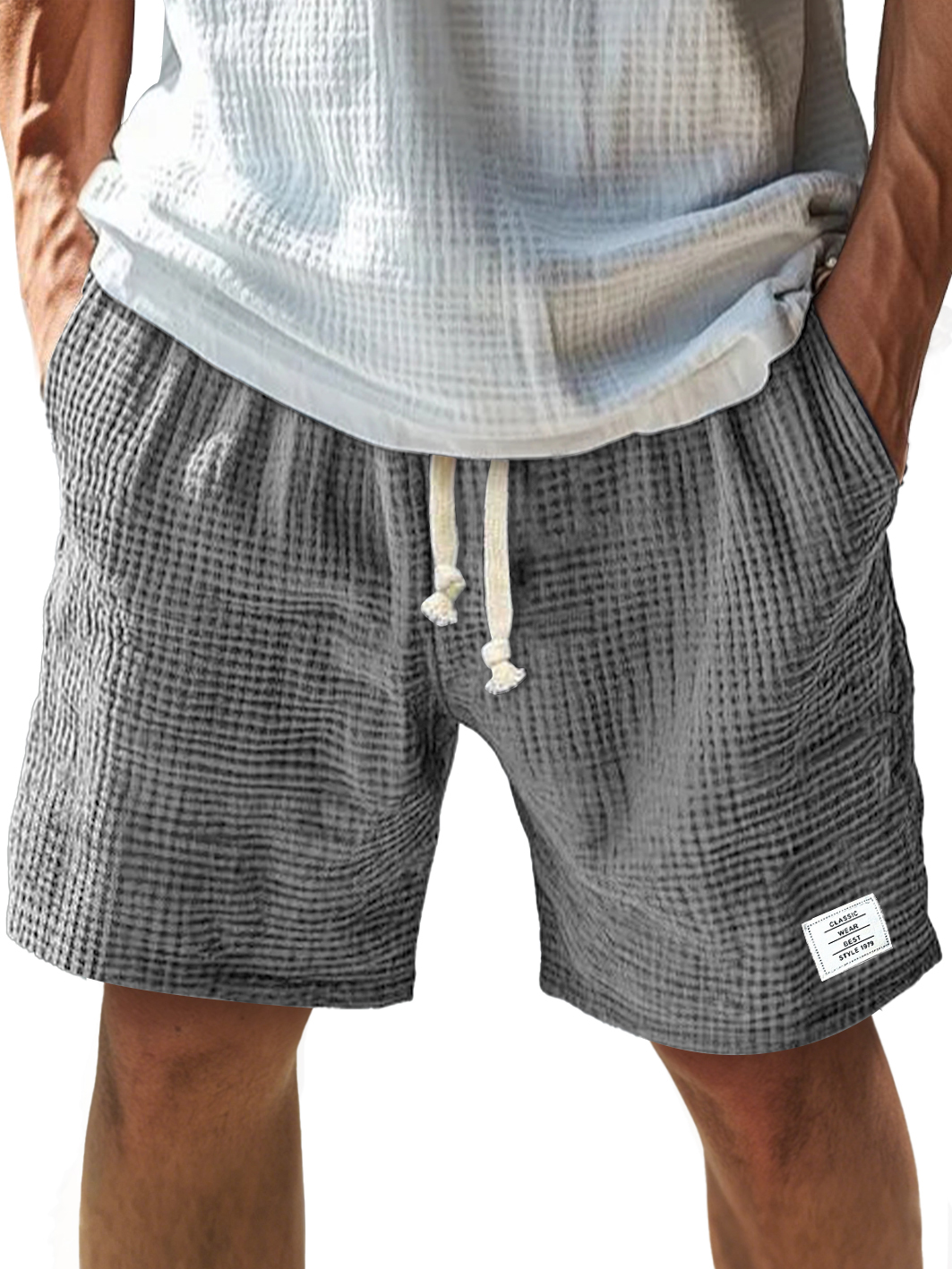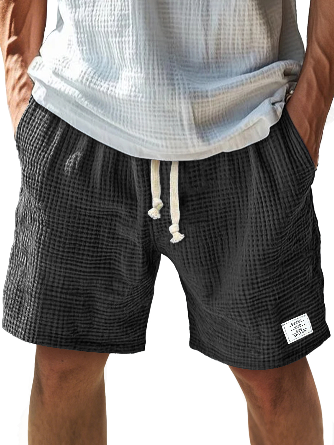 Men's Everyday Texture Embroidered Logo Elastic Waist Drawstring Comfort Shorts