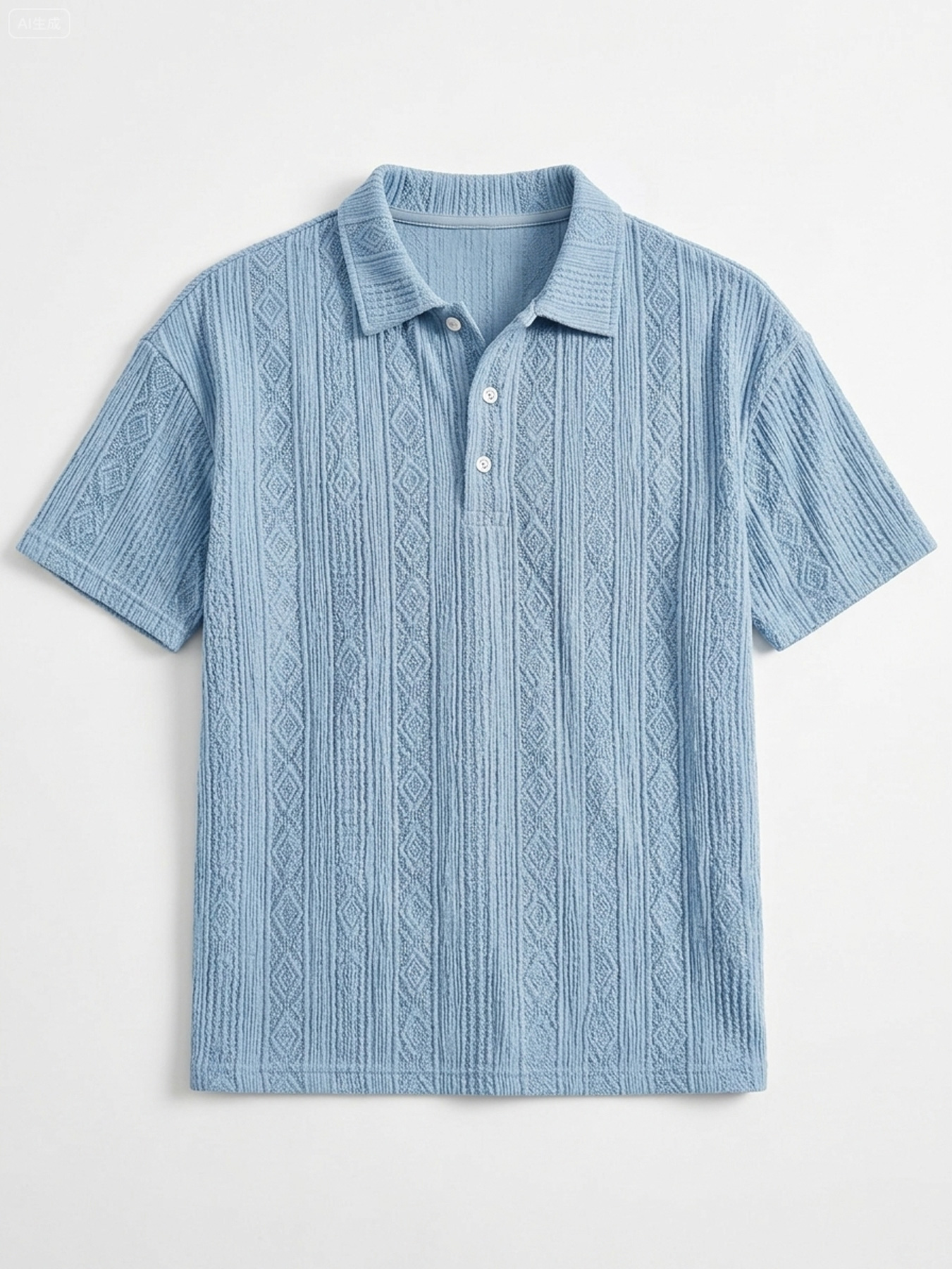 Men's Everyday Textured Collar Button-down Casual Short-sleeved Polo Shirt