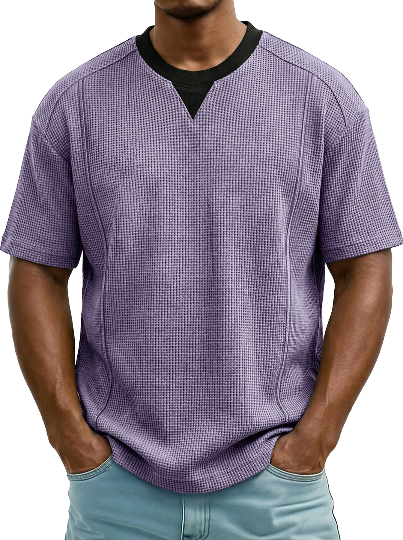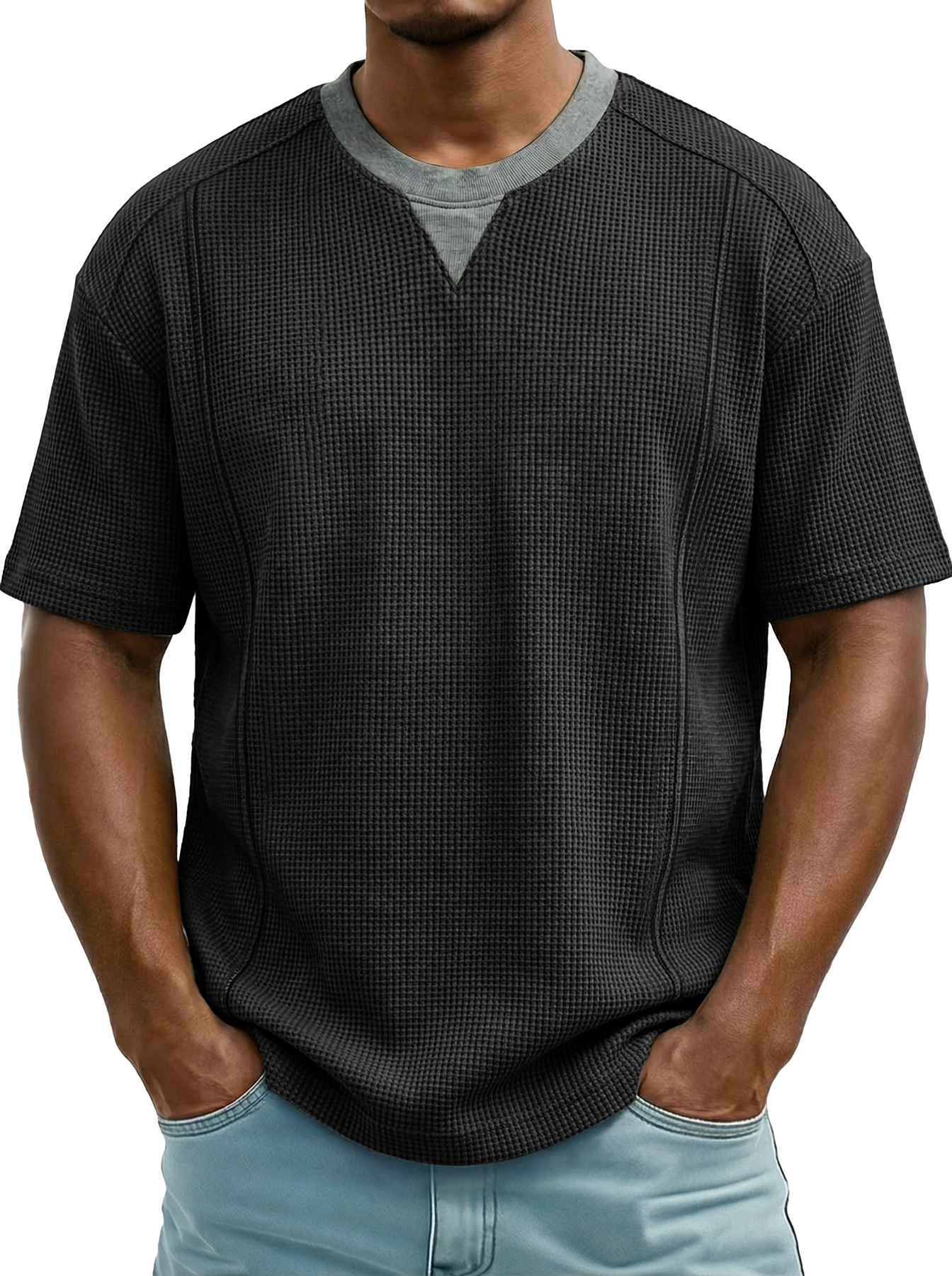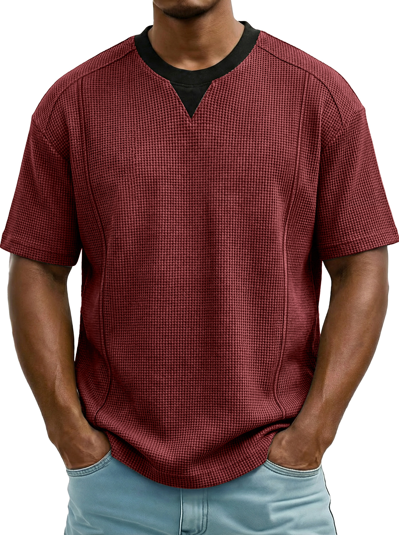 Men's Everyday Waffle Color-block Casual Short-sleeved T-shirt