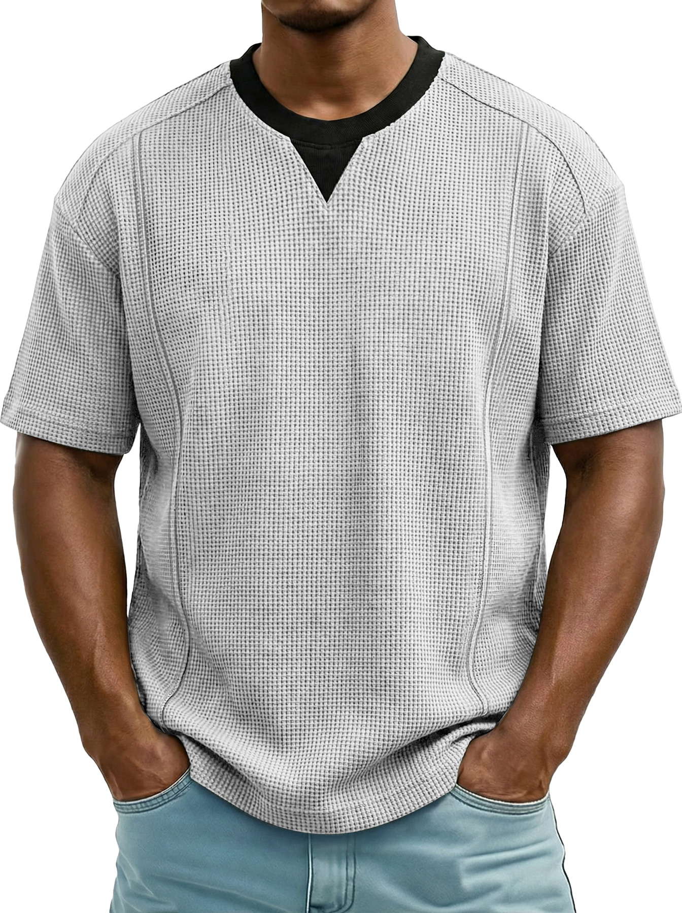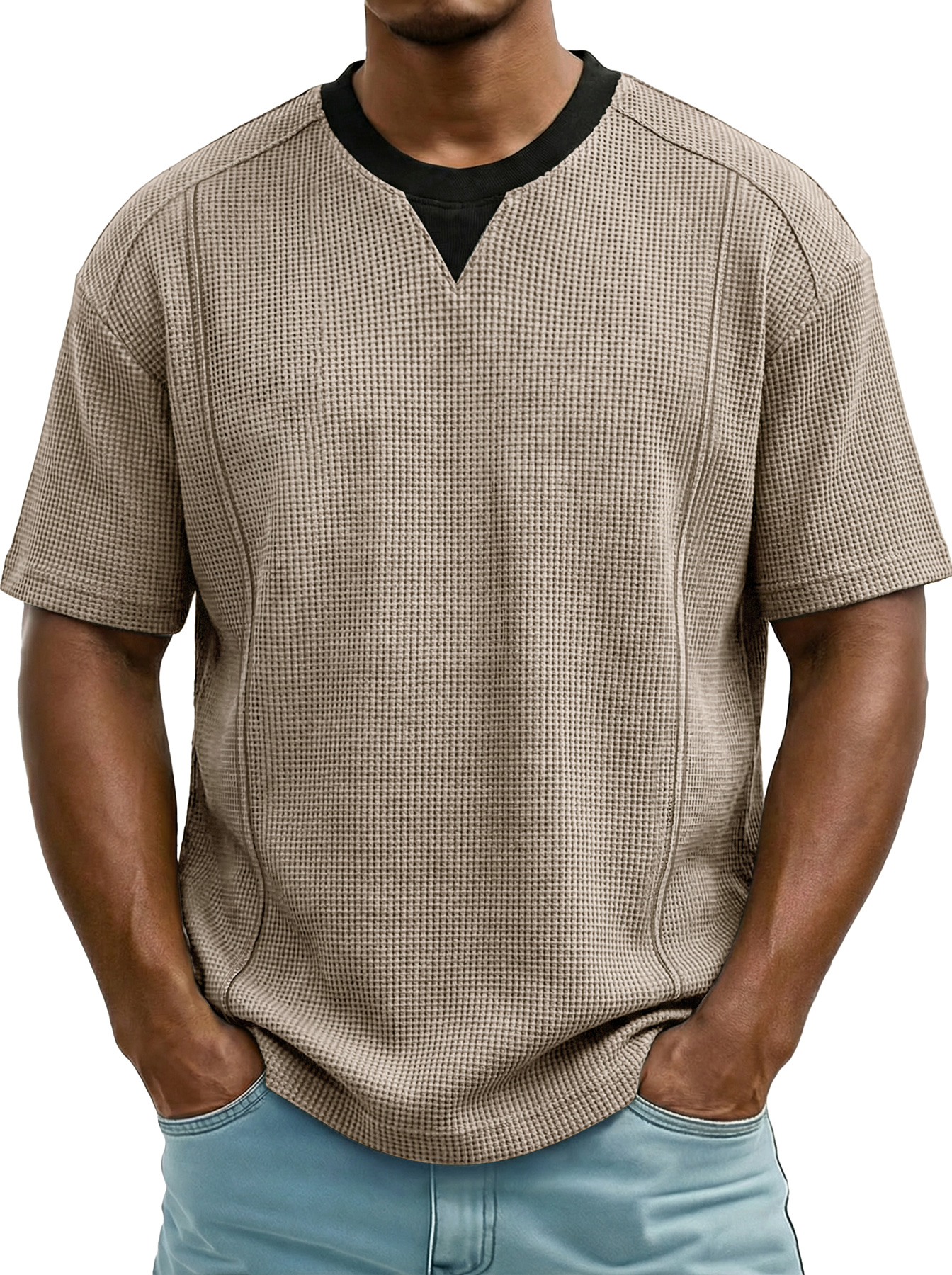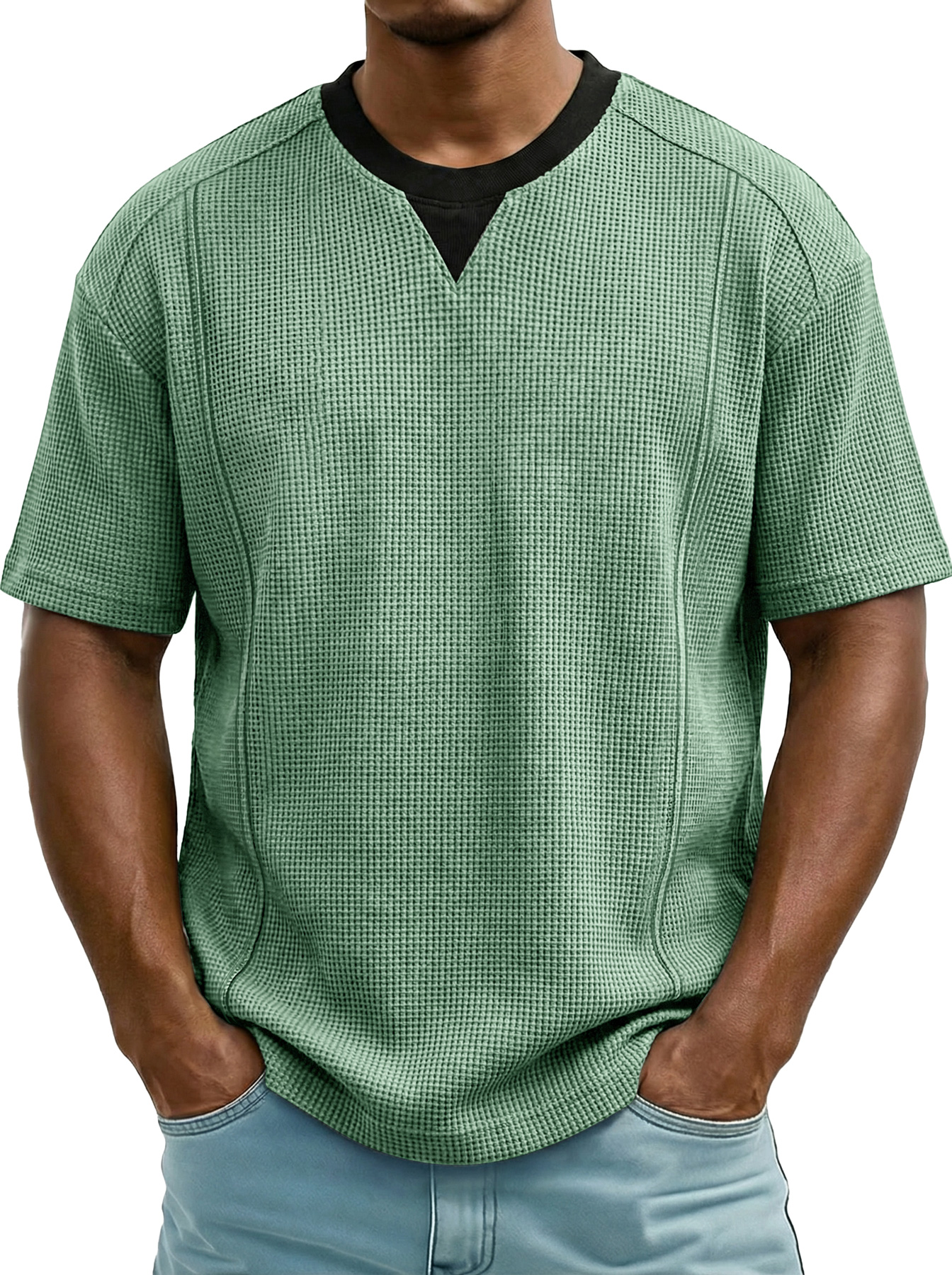 Men's Everyday Waffle Color-block Casual Short-sleeved T-shirt