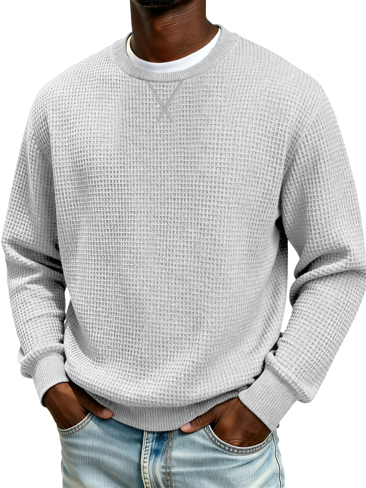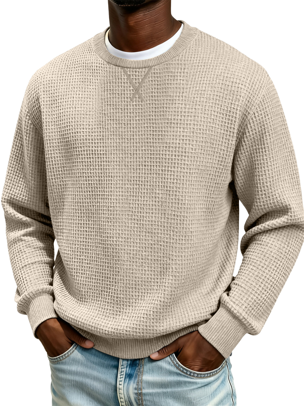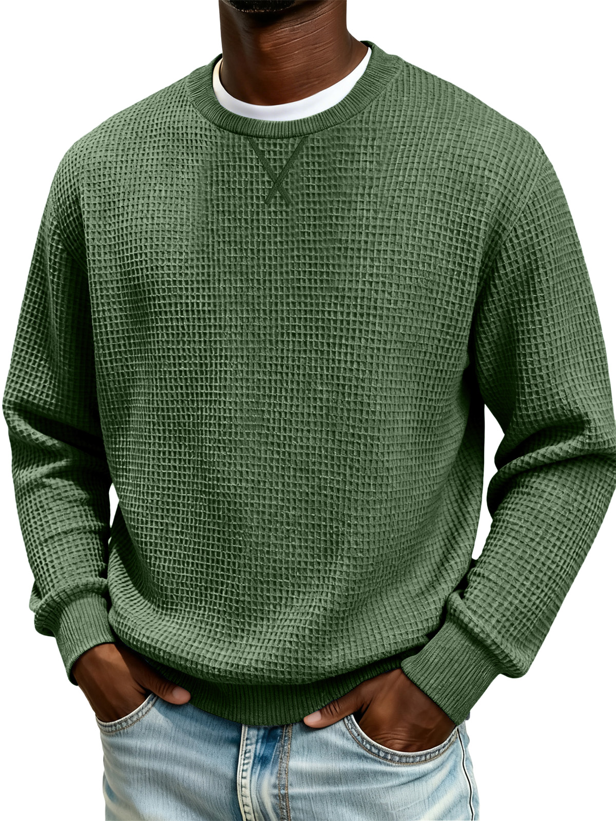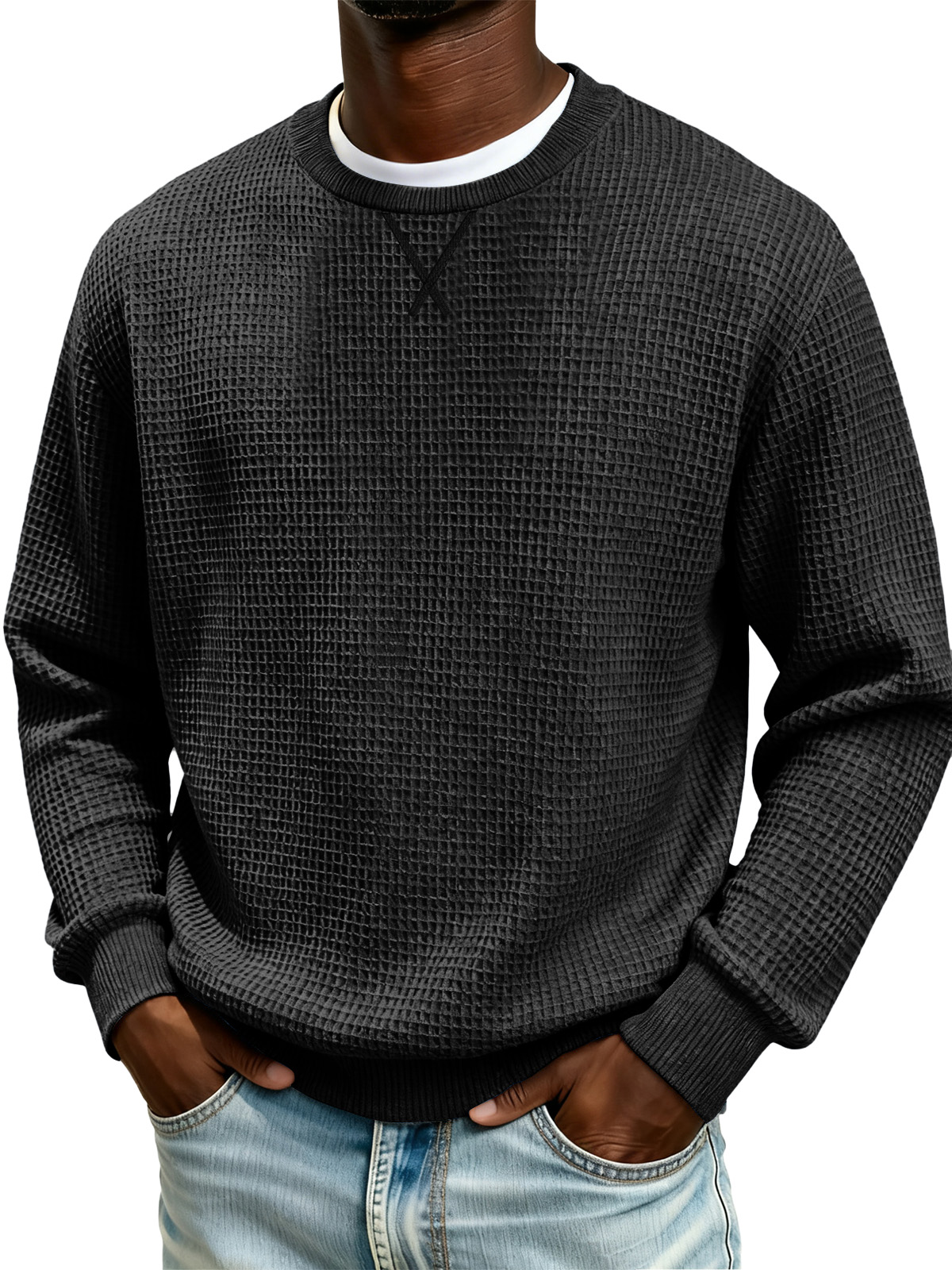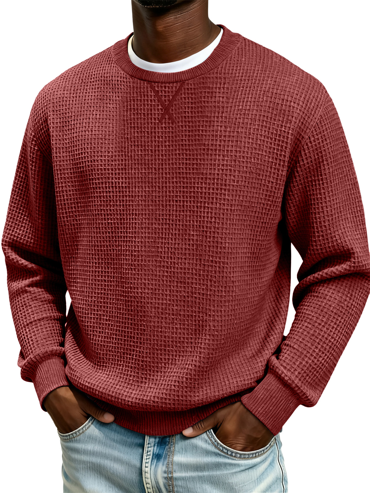 Men's Fashion Casual Crew Neck Waffle Knit Pullover