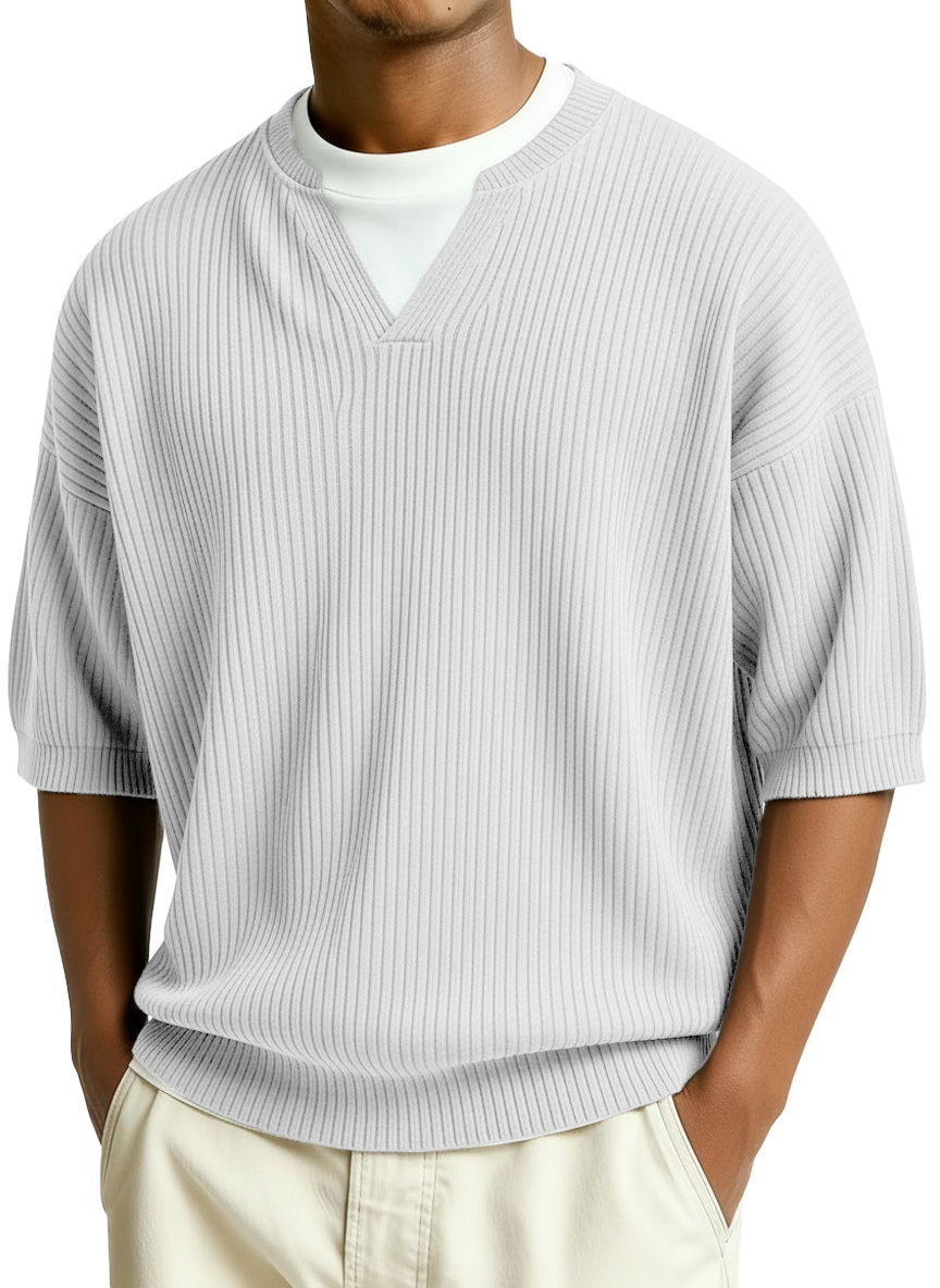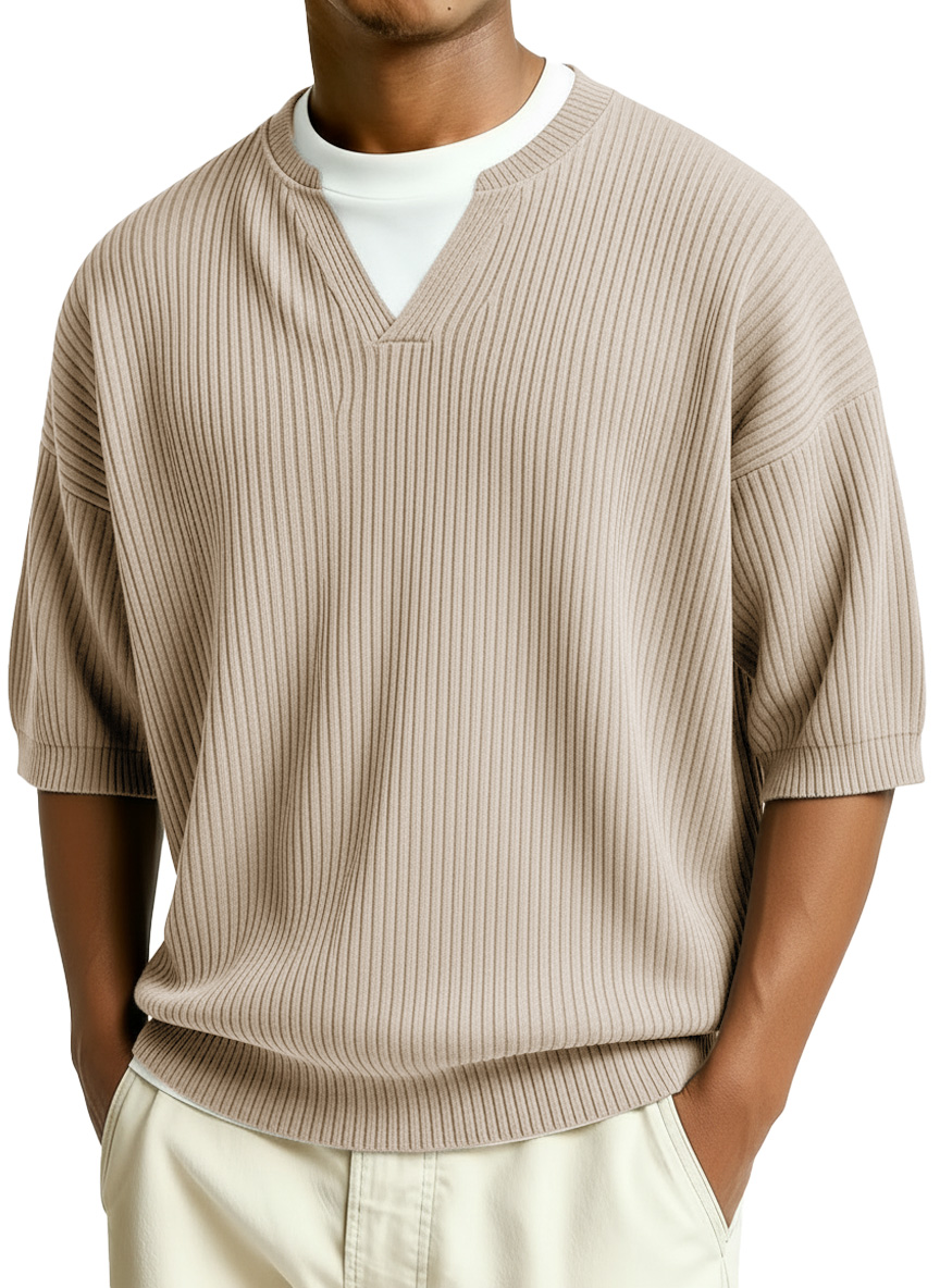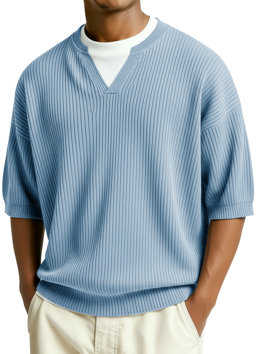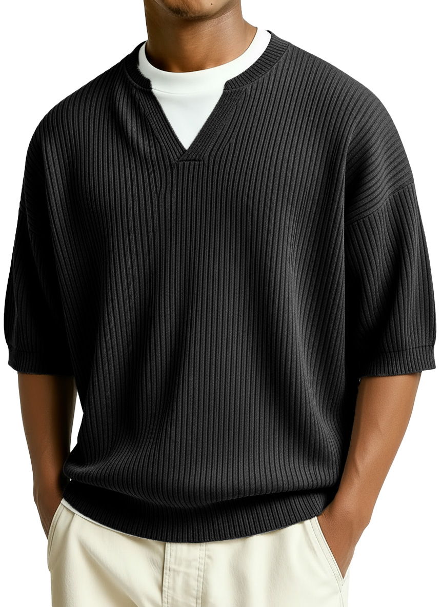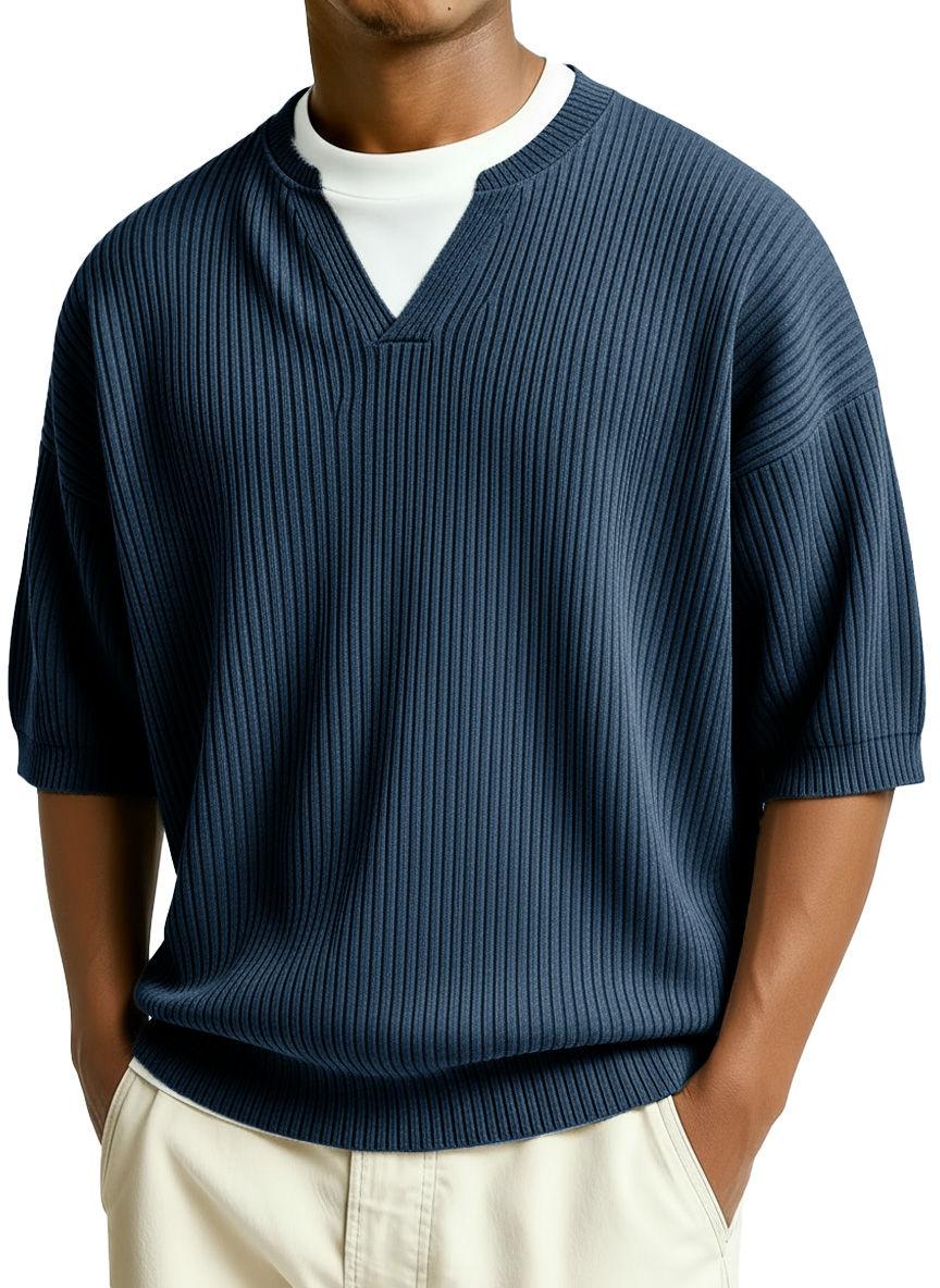 Men's Fashion Casual Retro Faux Two-Piece V-Neck Short-Sleeve T-Shirt