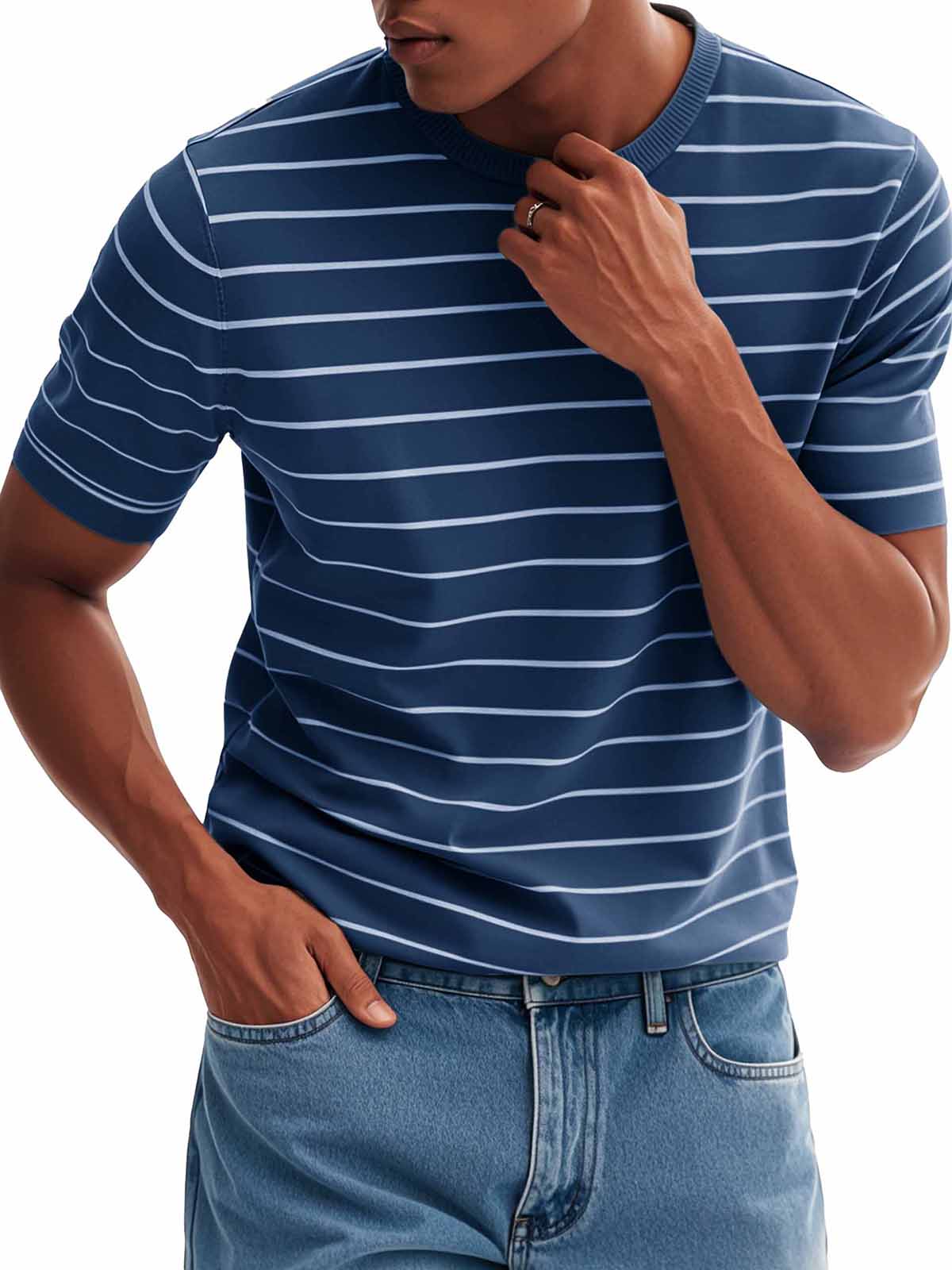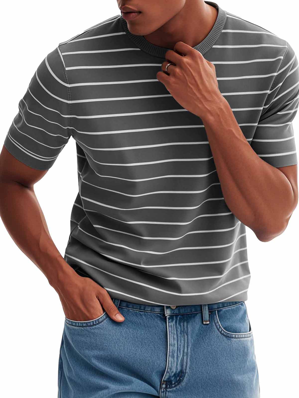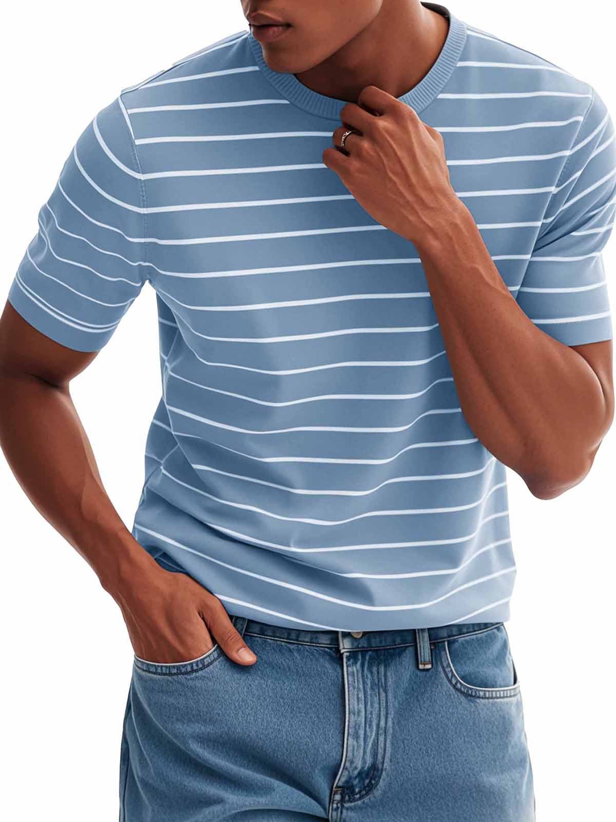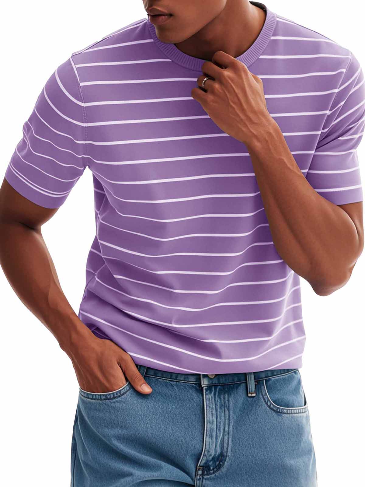 Men's Fashion Casual Striped Round Neck T-Shirt