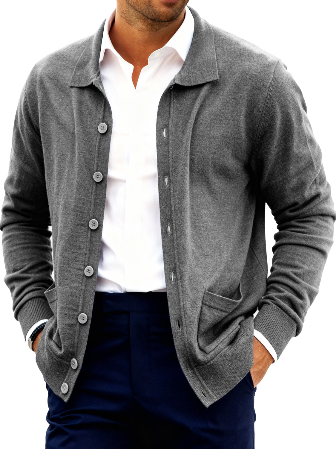 Men's Fashion Lapel Button Double Pocket Sweater Jacket