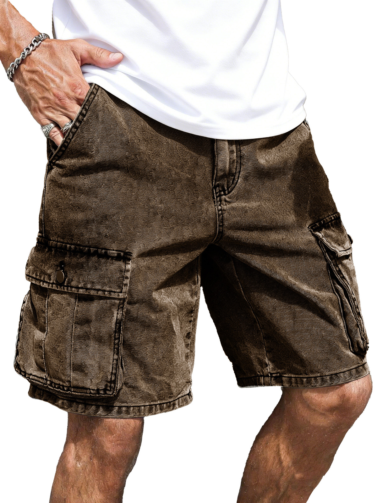 Men's Fashion Retro Loose Multi-Pocket Cargo Shorts