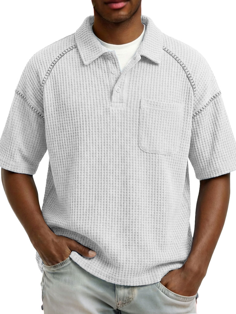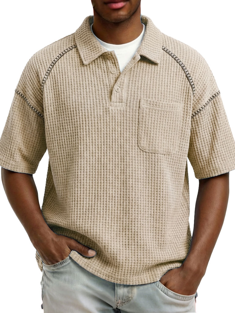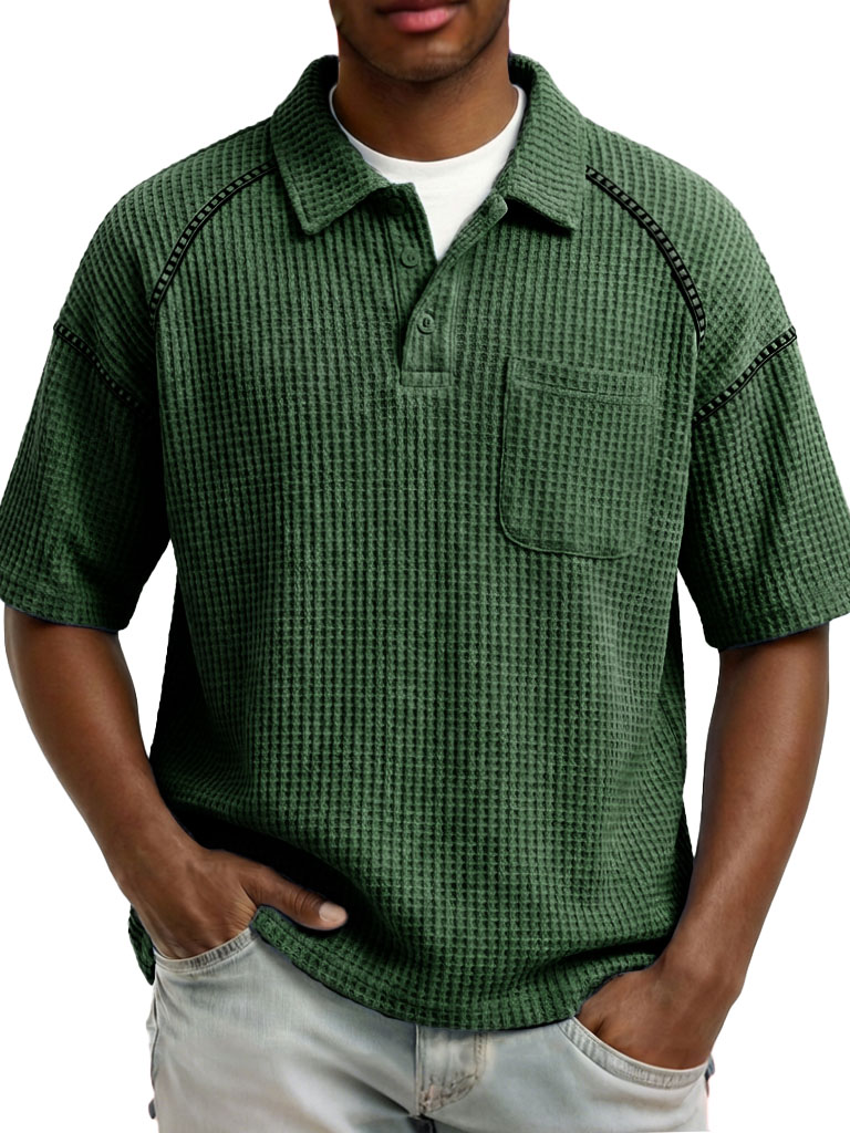 Men's Fashion Retro Raglan Waffle Gown Short-Sleeve Polo Shirt