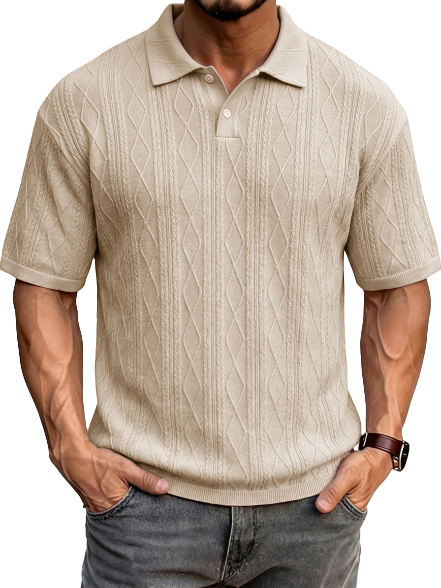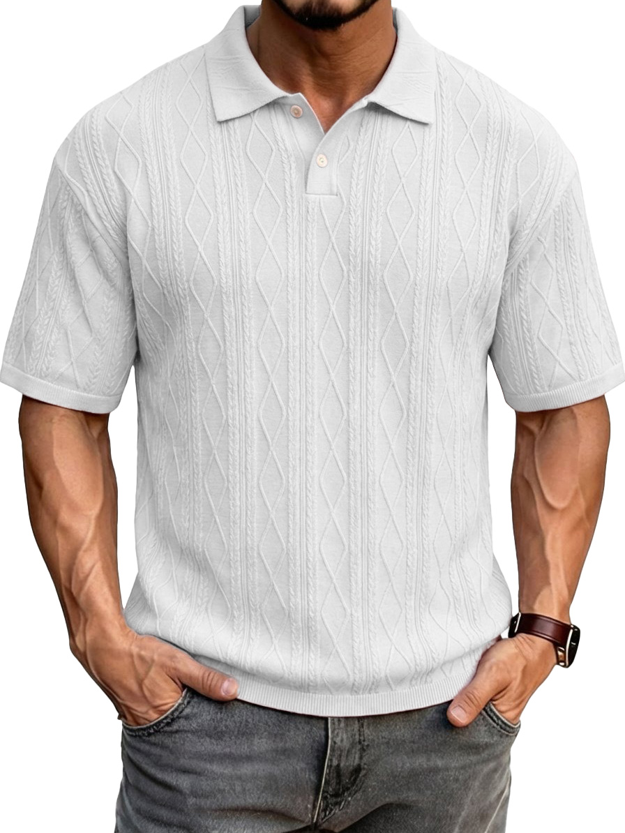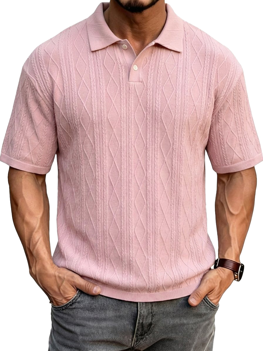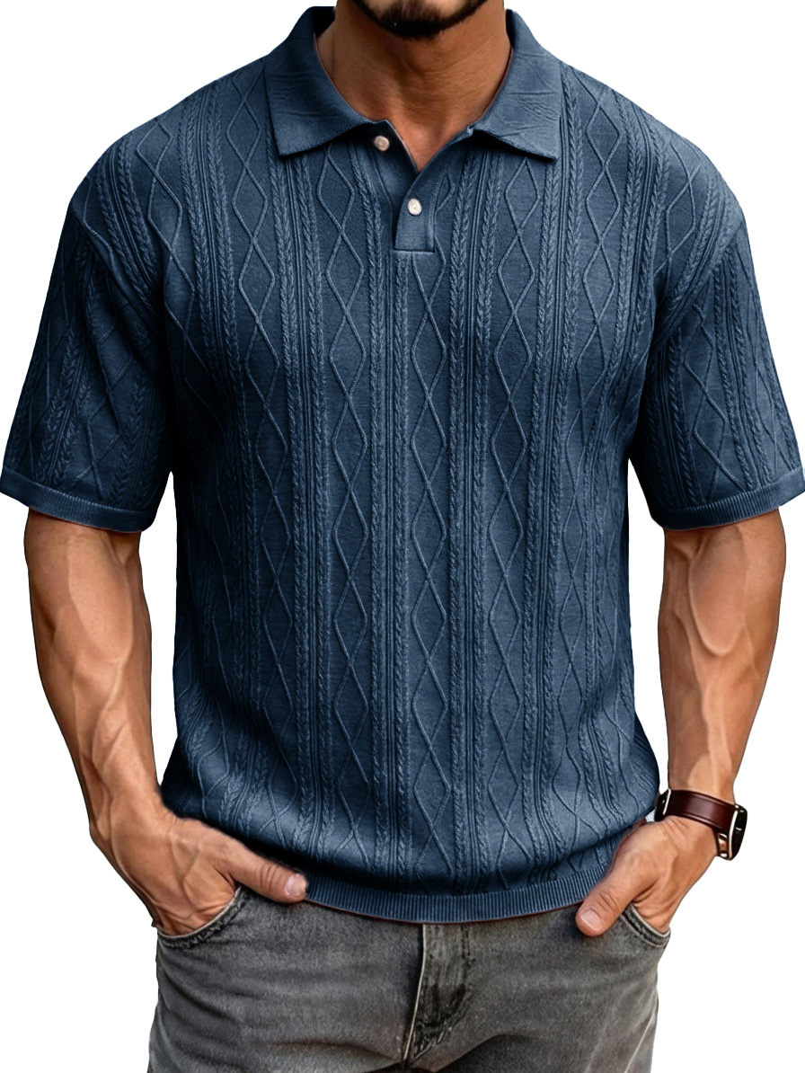 Men's Fashionable Casual Jacquard Fabric Collared Short-Sleeve Polo Shirt