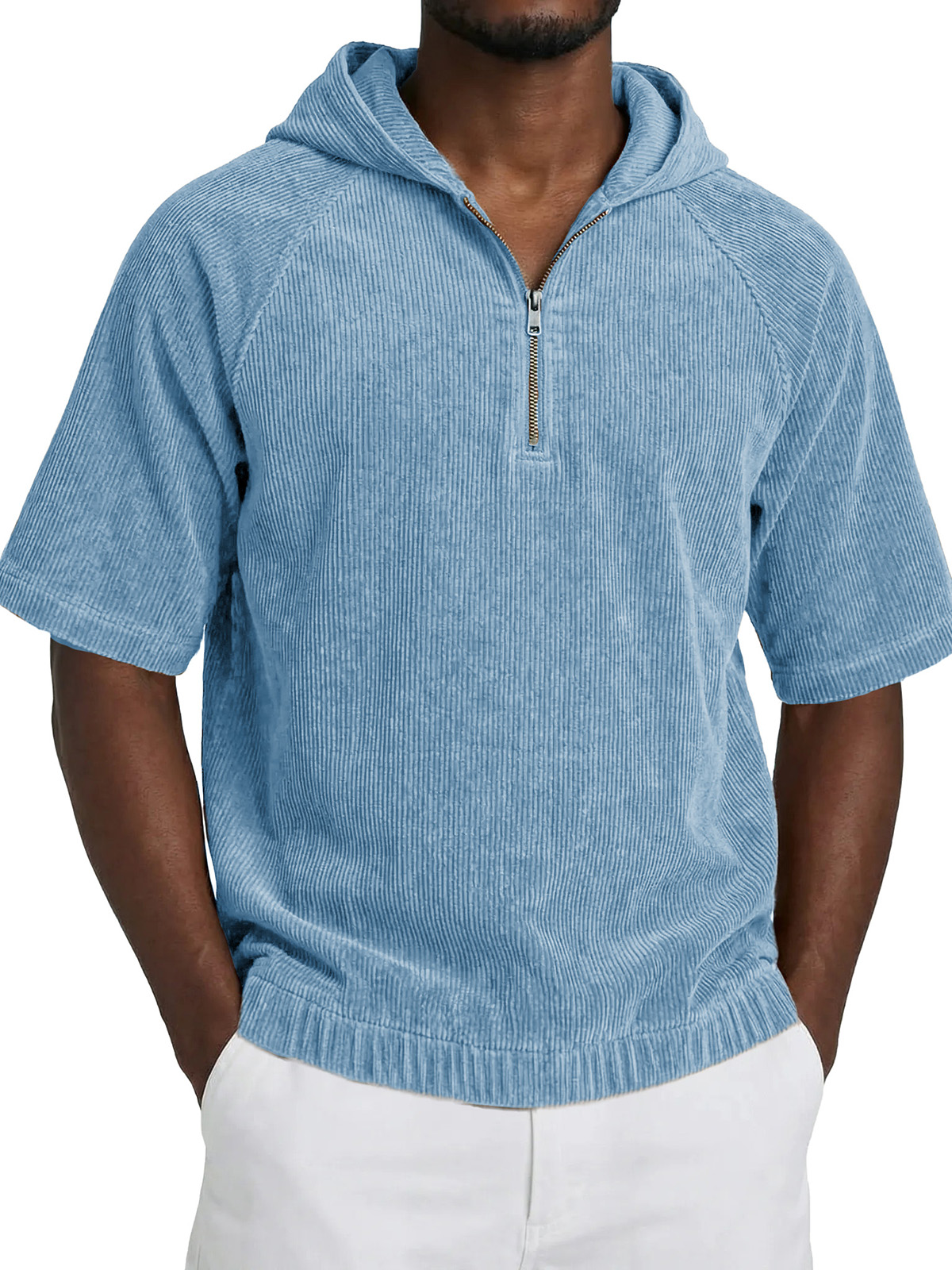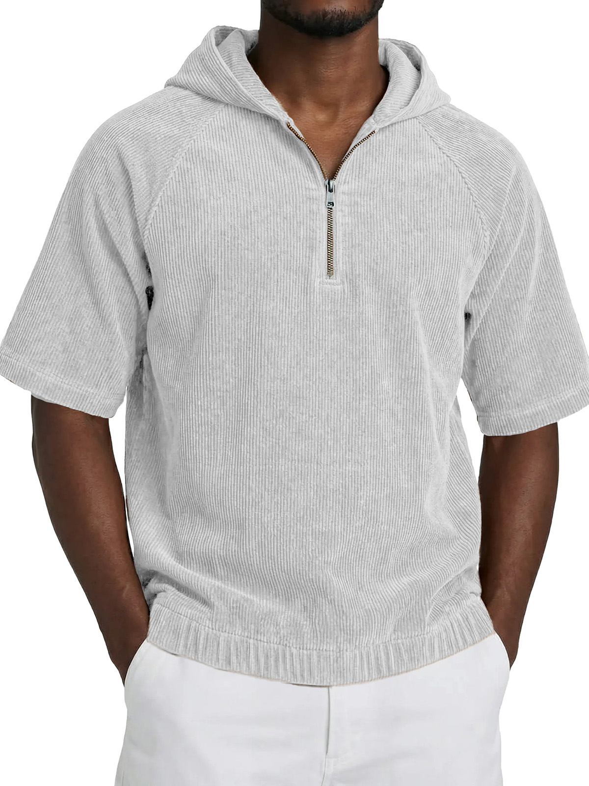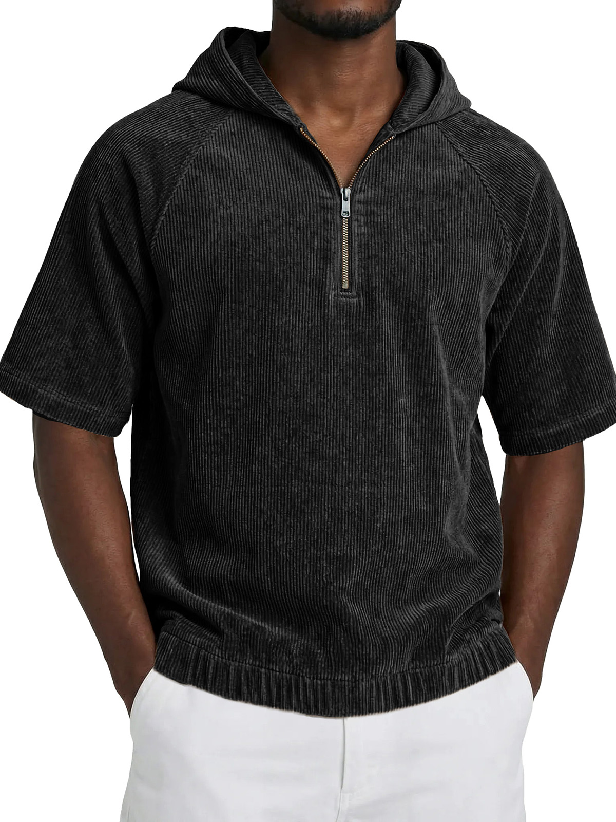 Men's Fashionable Casual Retro Hooded Short-Sleeve Zipper T-Shirt