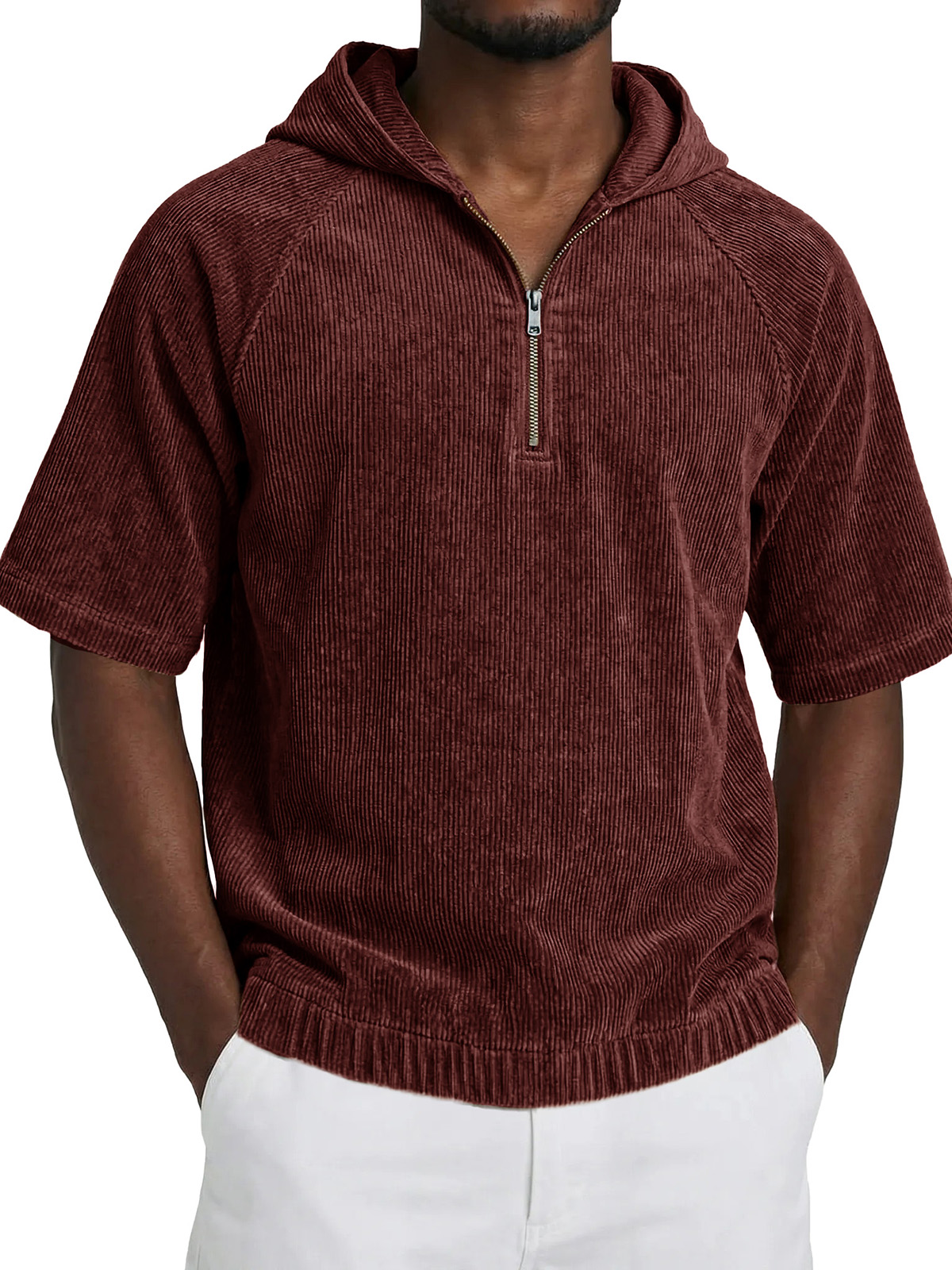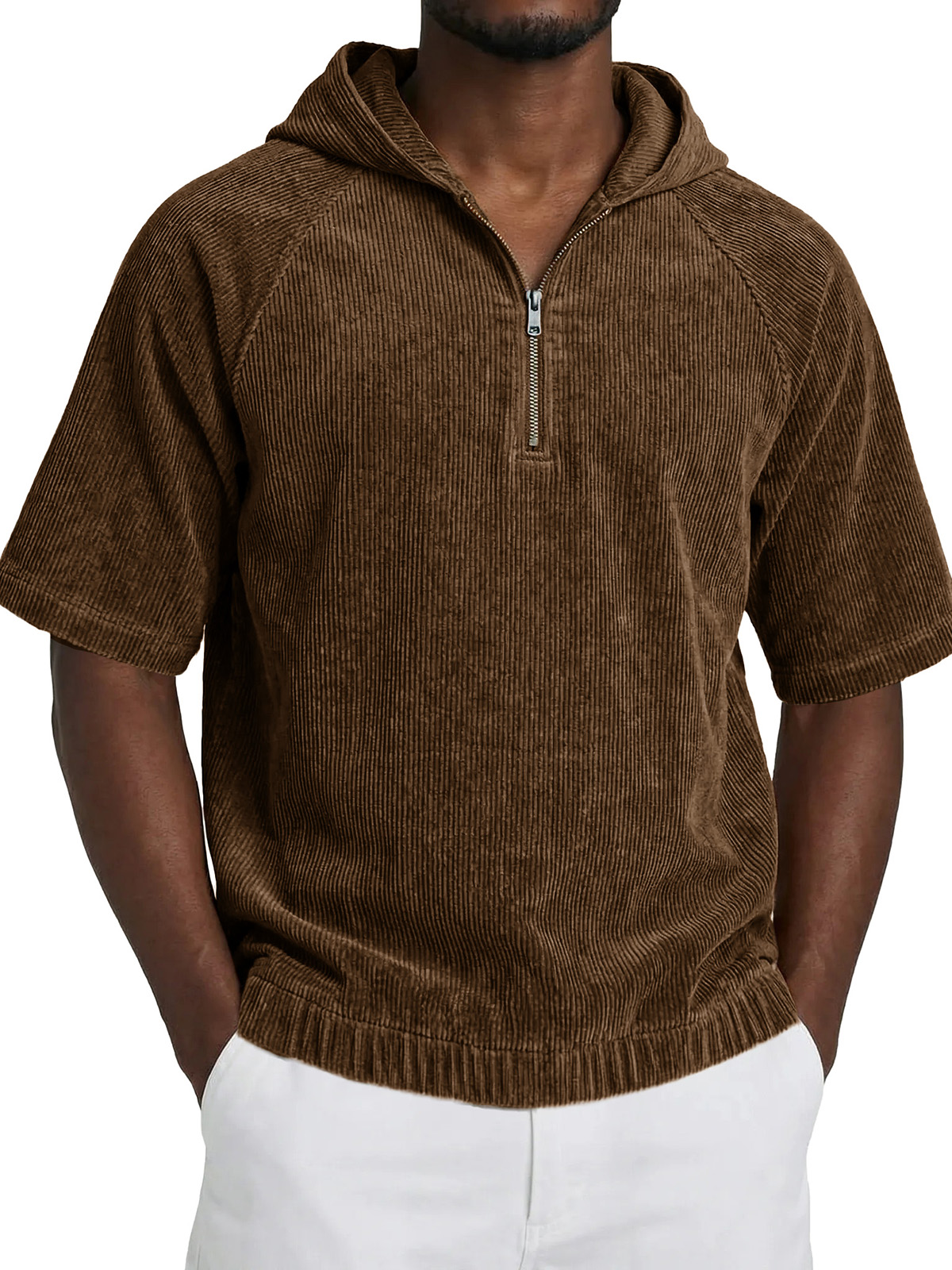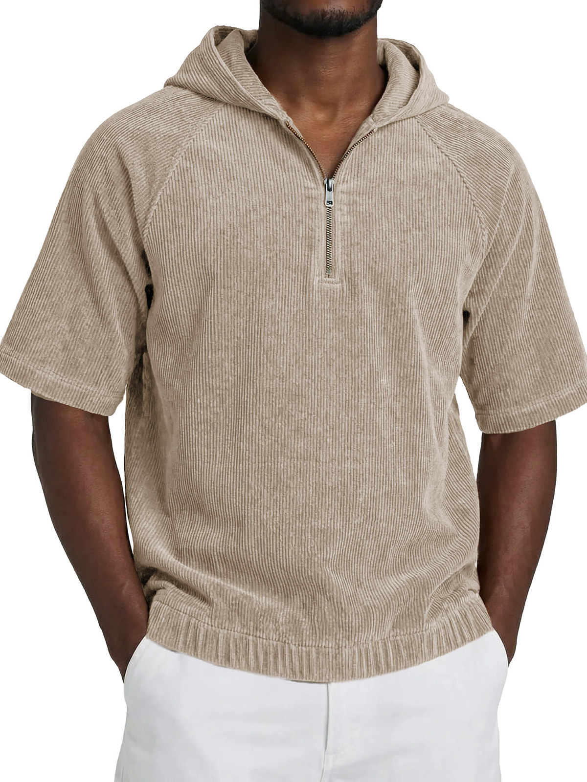 Men's Fashionable Casual Retro Hooded Short-Sleeve Zipper T-Shirt