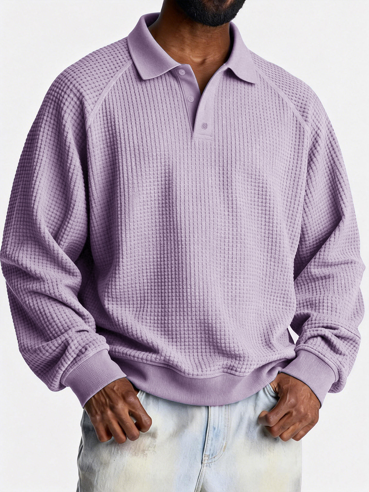 Men's Fashionable Casual Waffle Fabric Raglan Loose-Fit Collar Polo Shirt