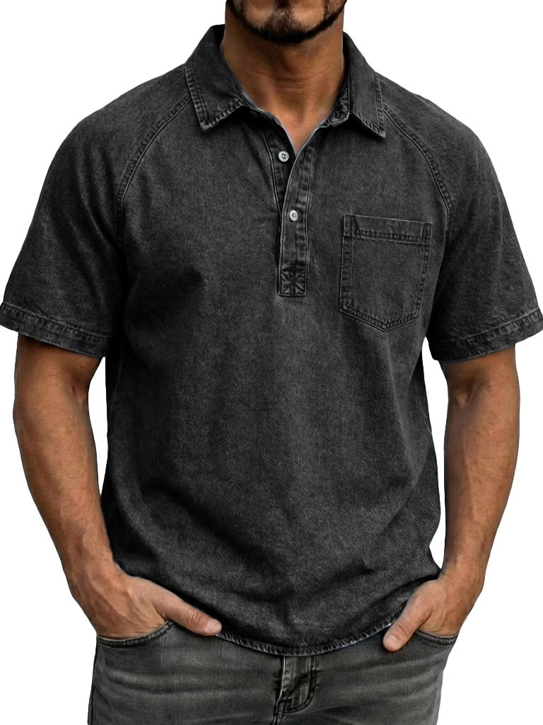 Men's Fashionable Retro Distressed Lapel Short-sleeved Polo Shirt