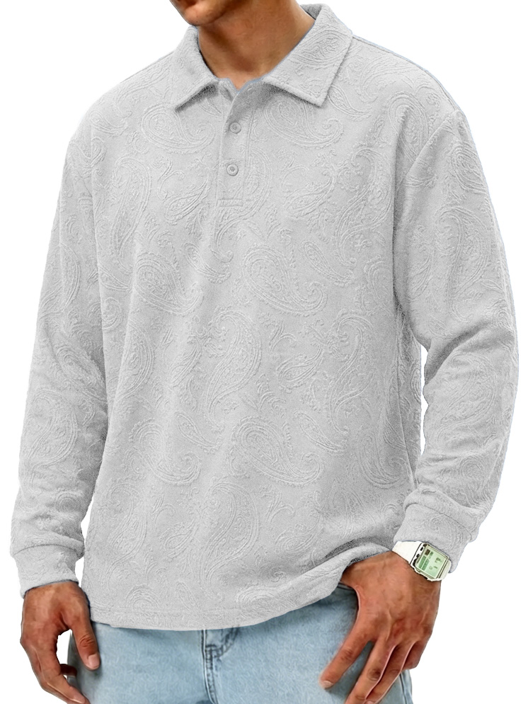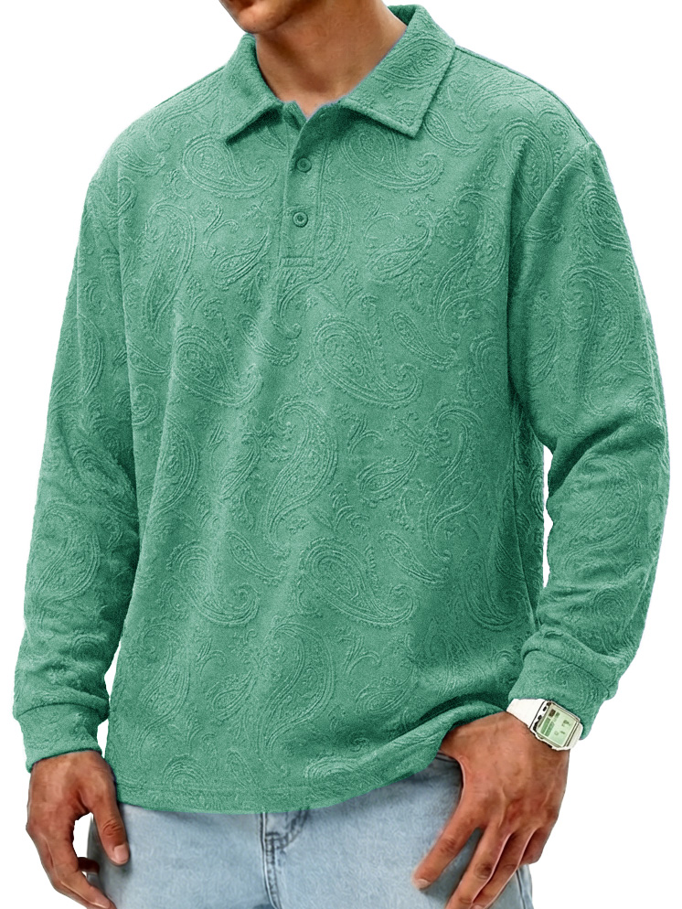 Men's Fashionable Retro Paisley Fabric Loose-Fit Collar Polo Shirt