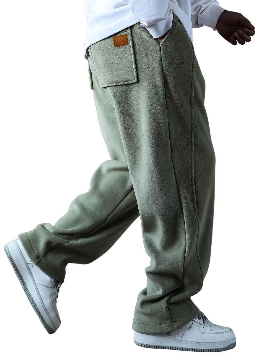 Men's Fleece-Lined Thickened Slimming Multi-Pocket Pants with Contrast Pants