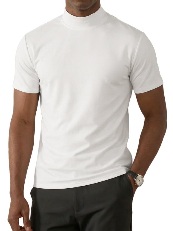 Men's High-Neck Slim Fit Casual Short-Sleeve T-Shirt