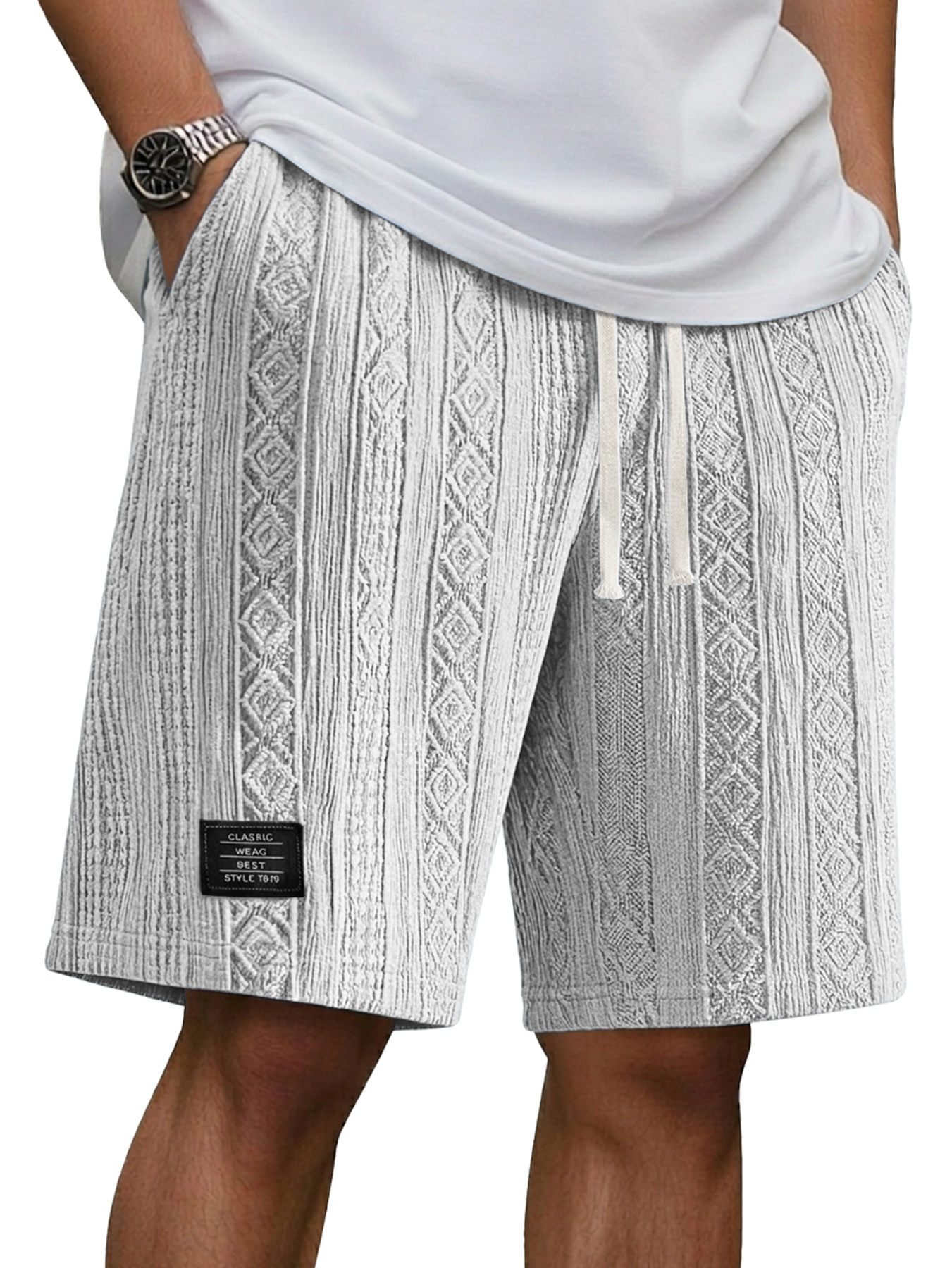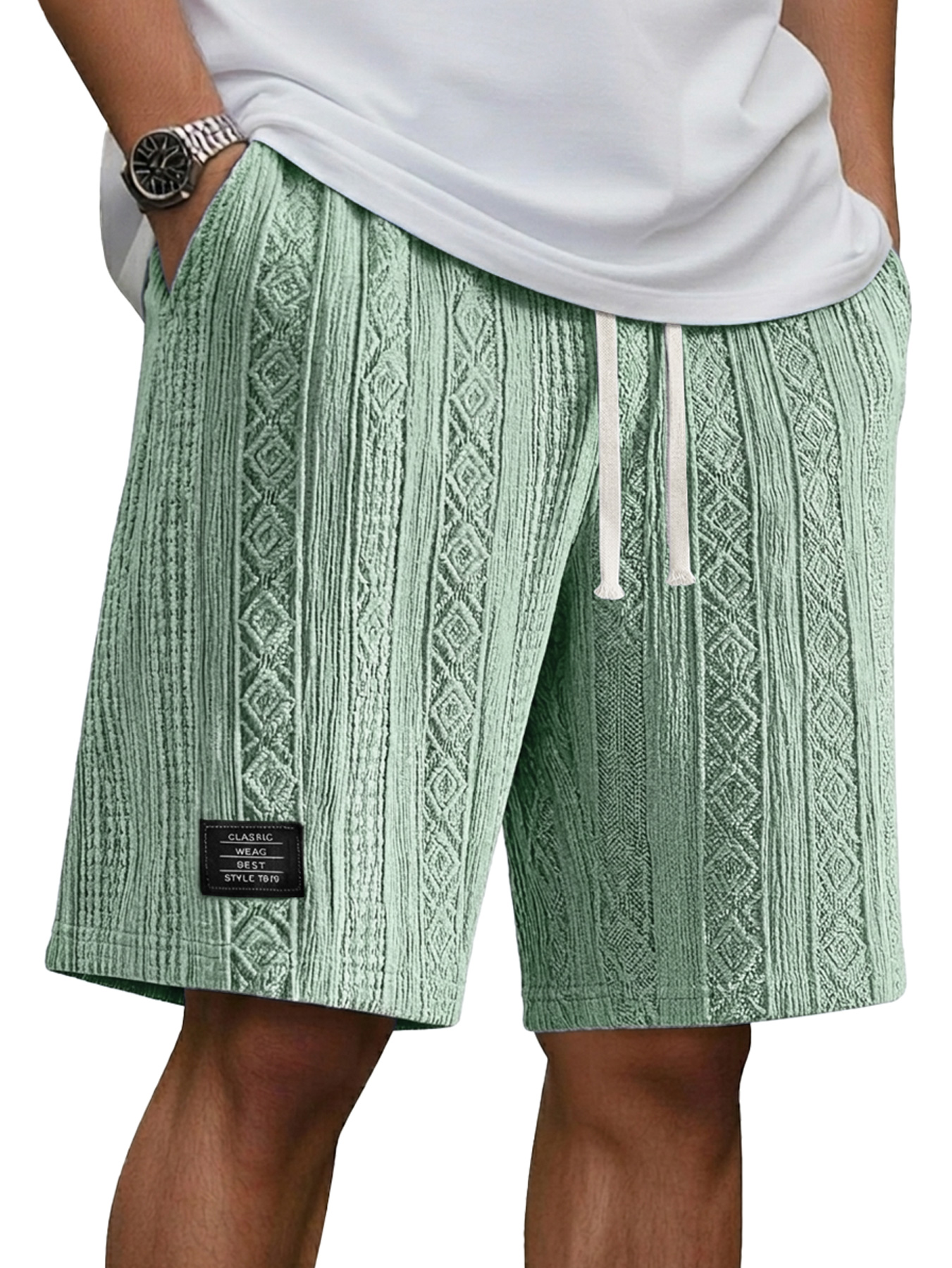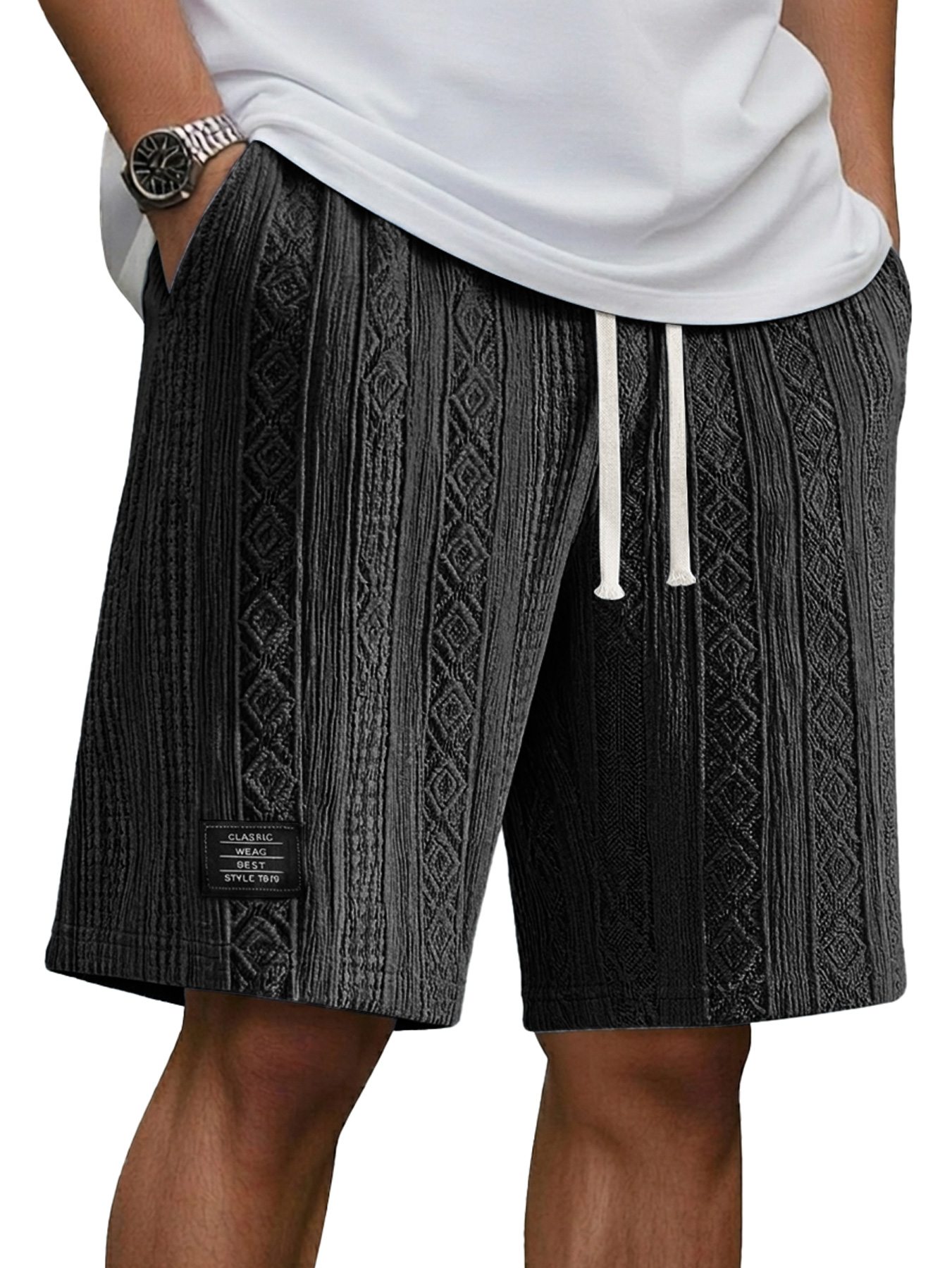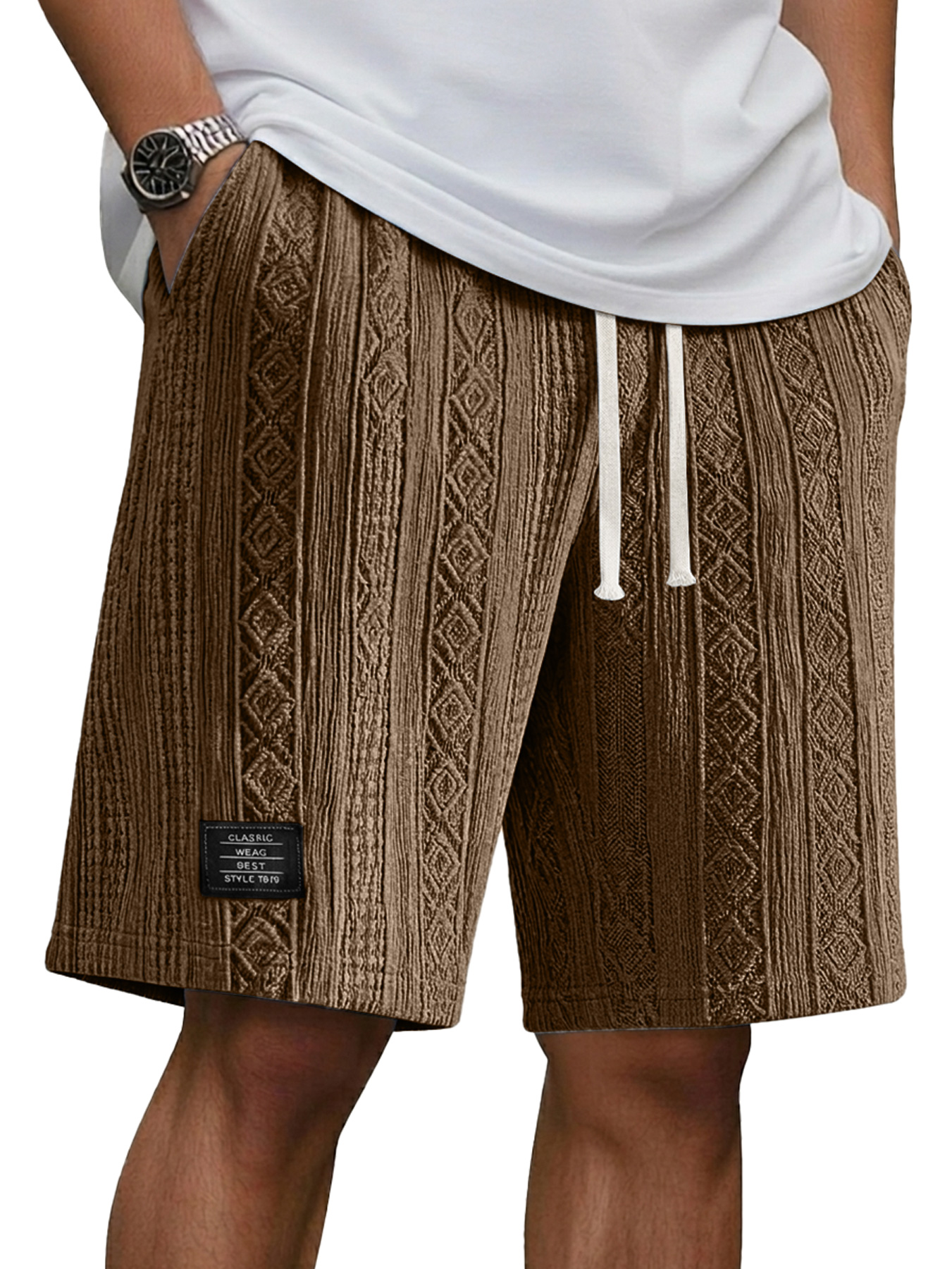Men's Jacquard Casual Embroidered Logo Elastic Waist Solid Color Shorts