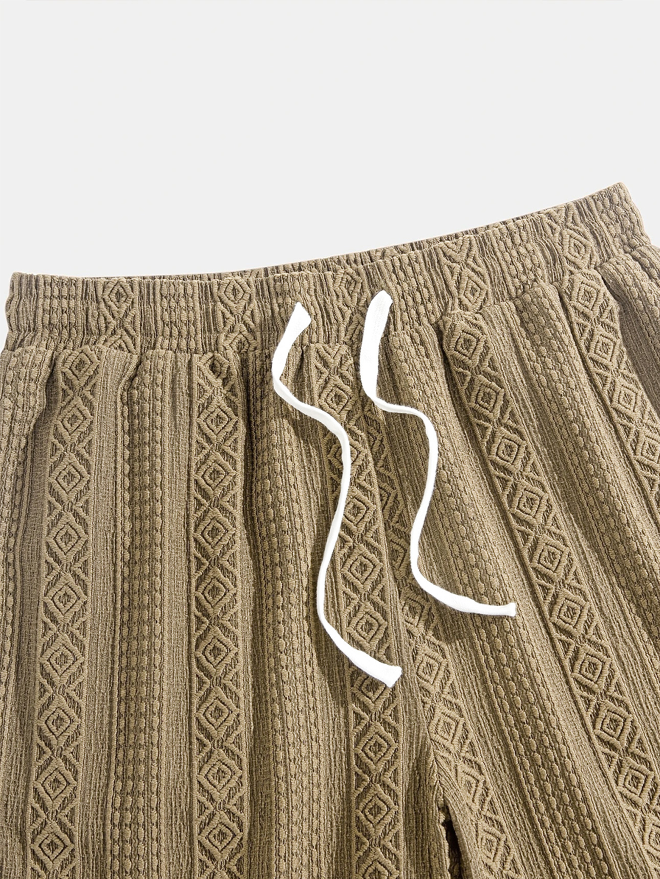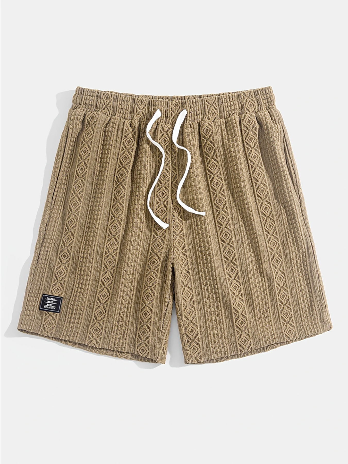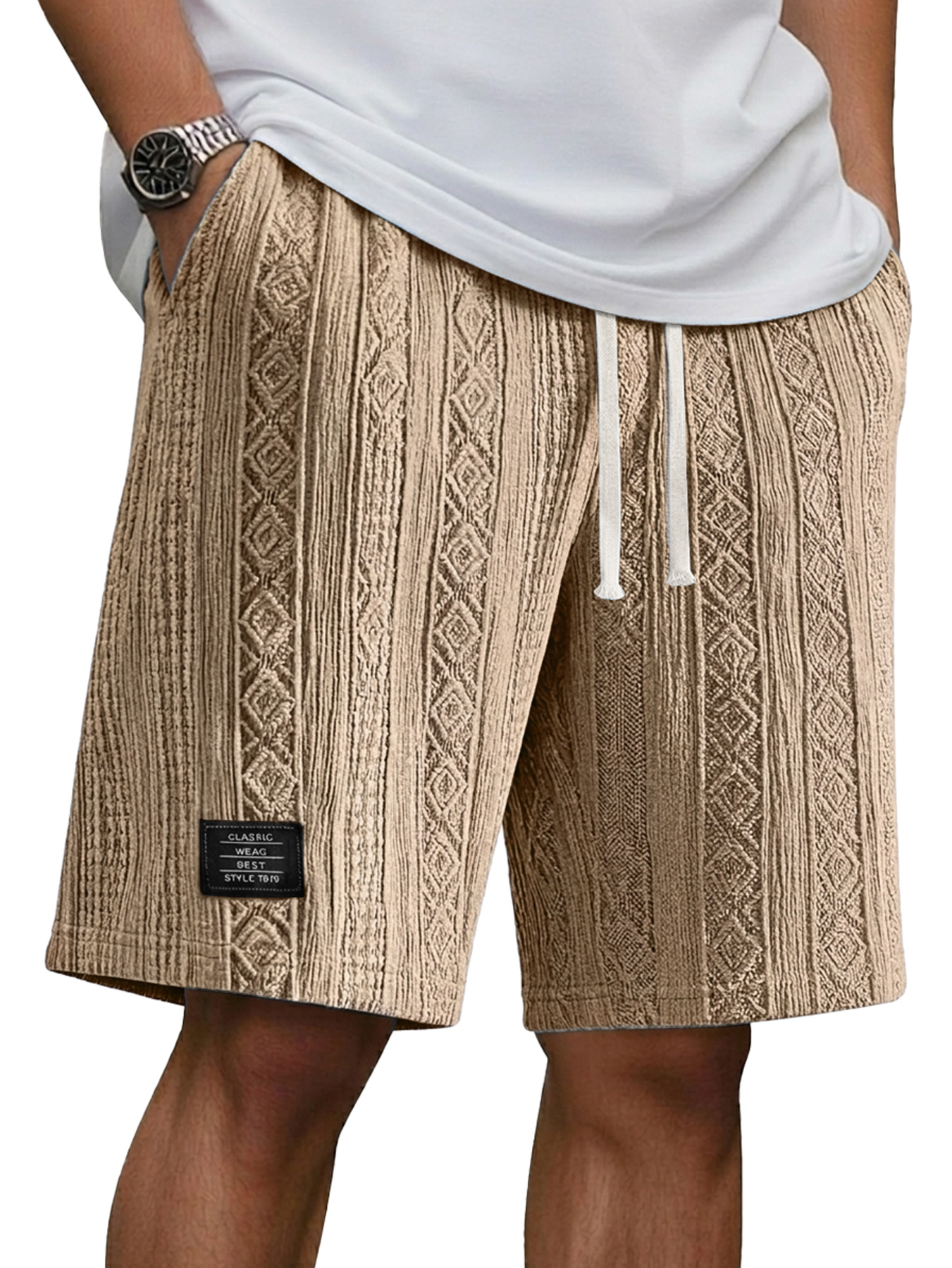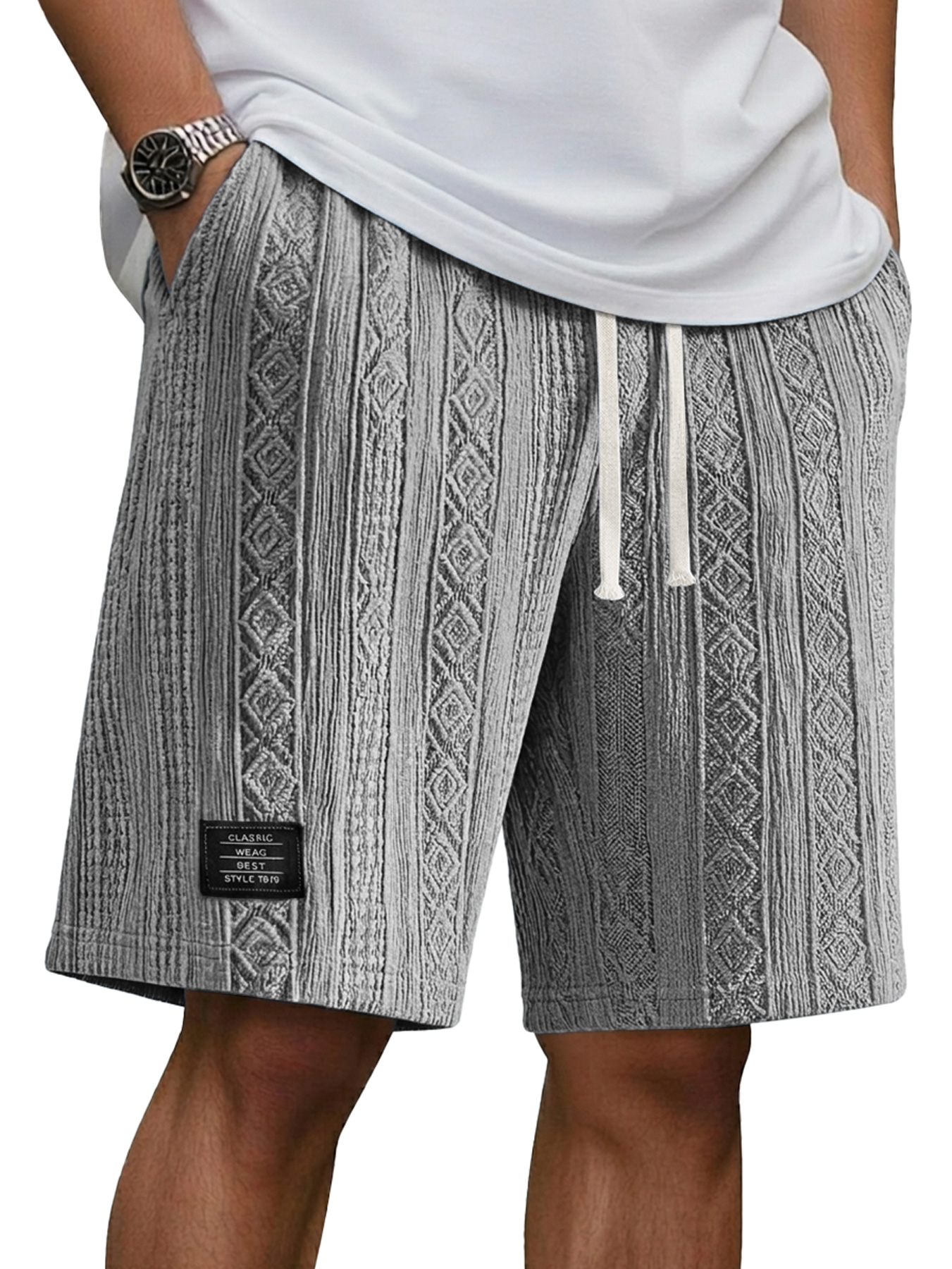 Men's Jacquard Casual Embroidered Logo Elastic Waist Solid Color Shorts
