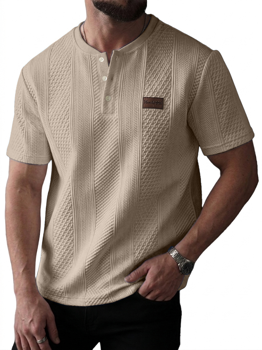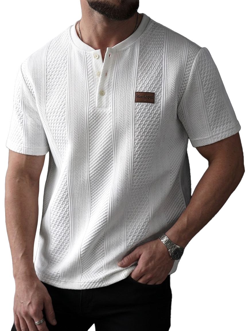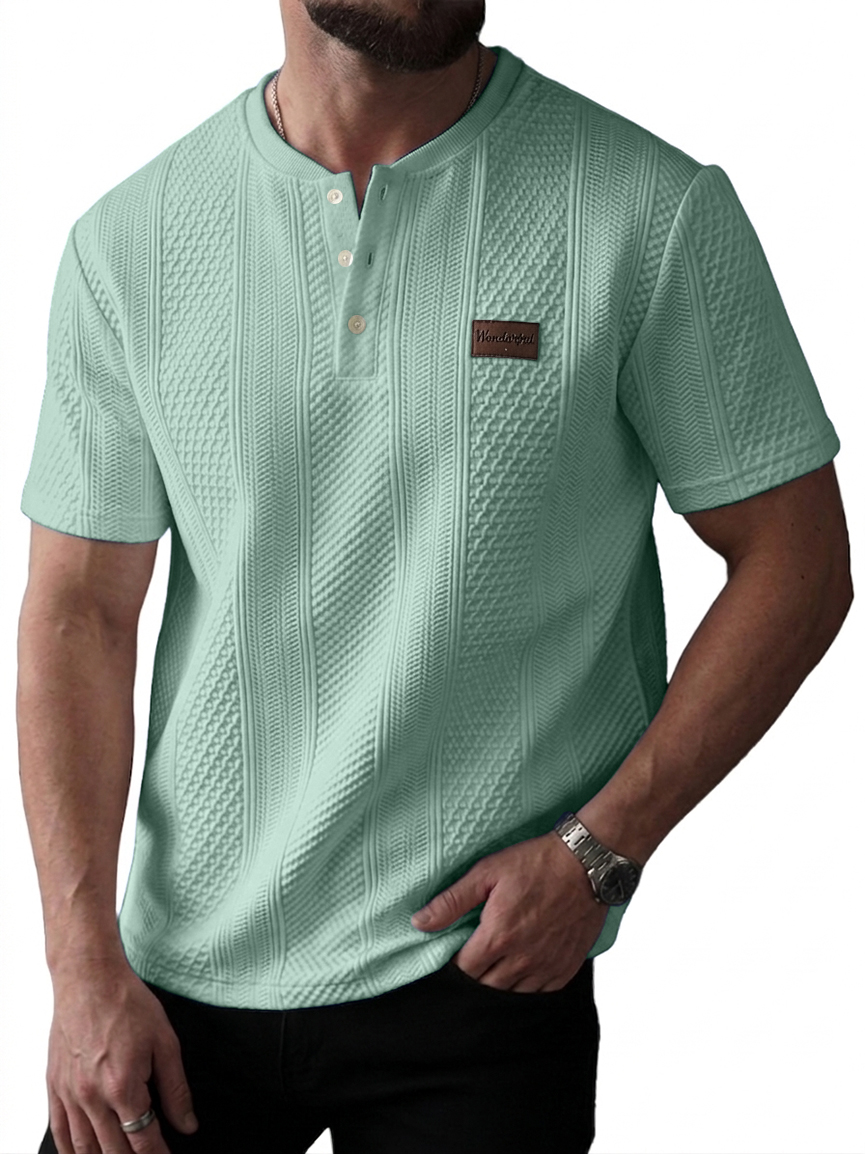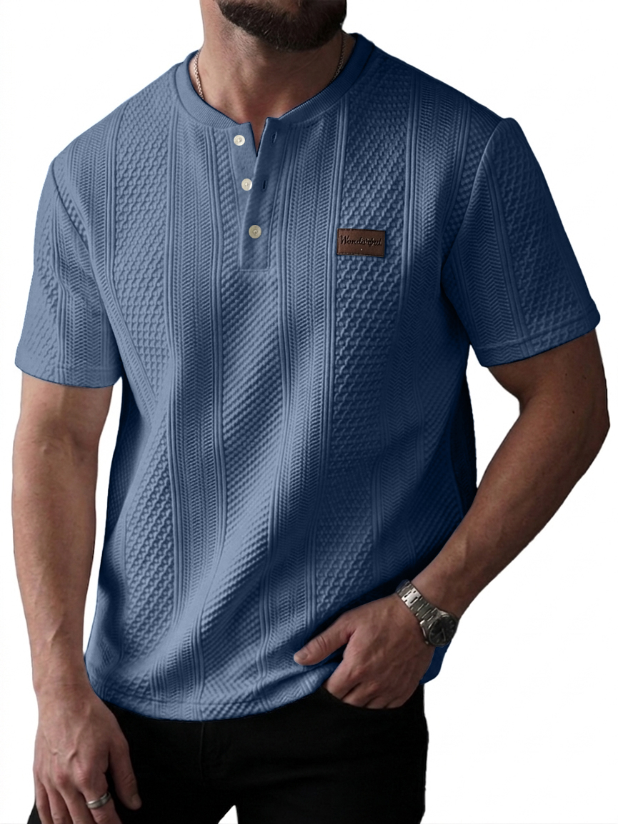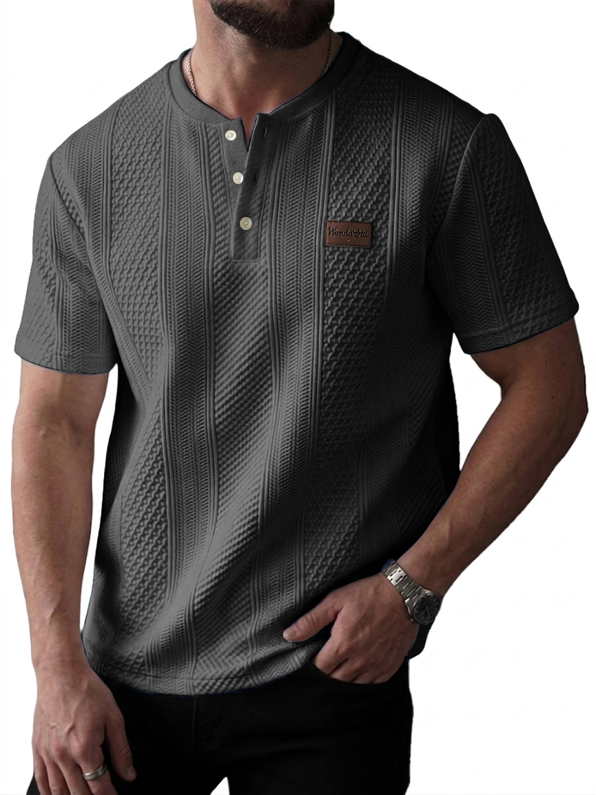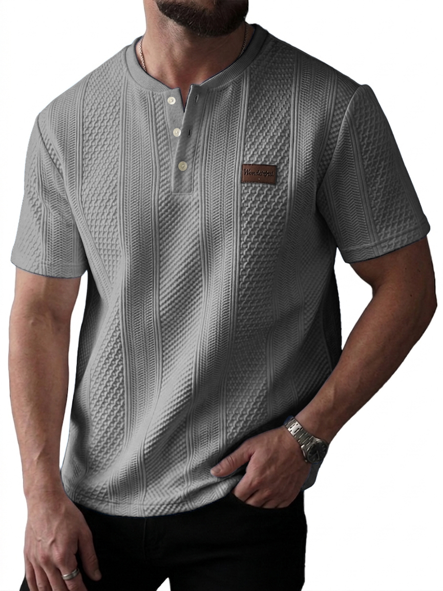 Men's Jacquard-Striped Short Sleeve Henley Top