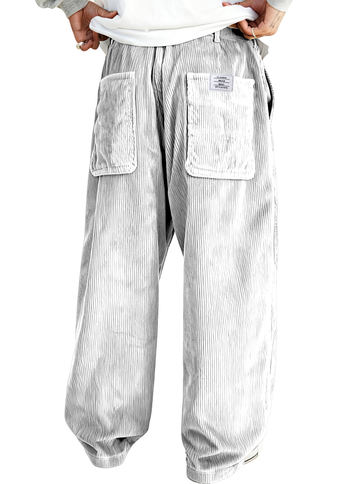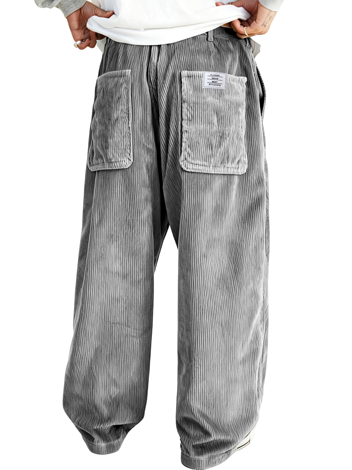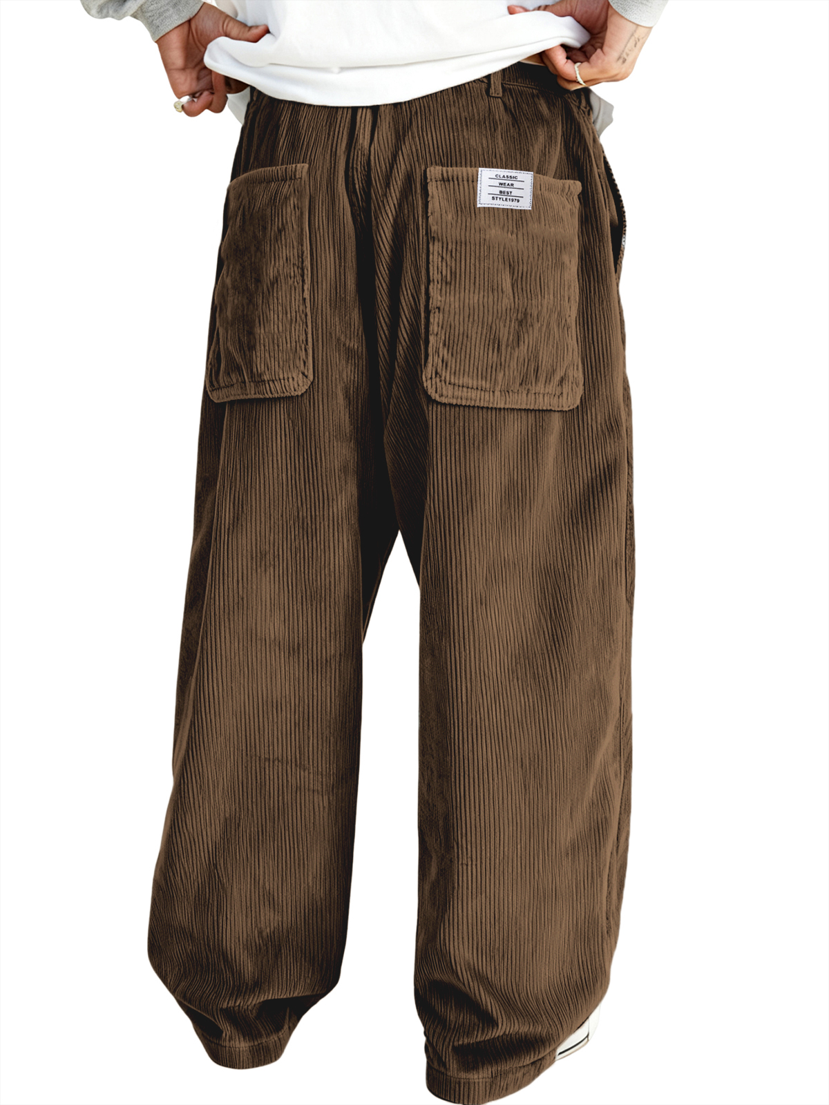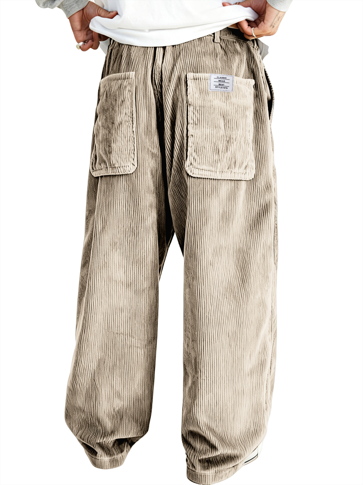 Men's Multi-pocket Stylish Corduroy Ribbed Casual Trousers with Embroidered Label