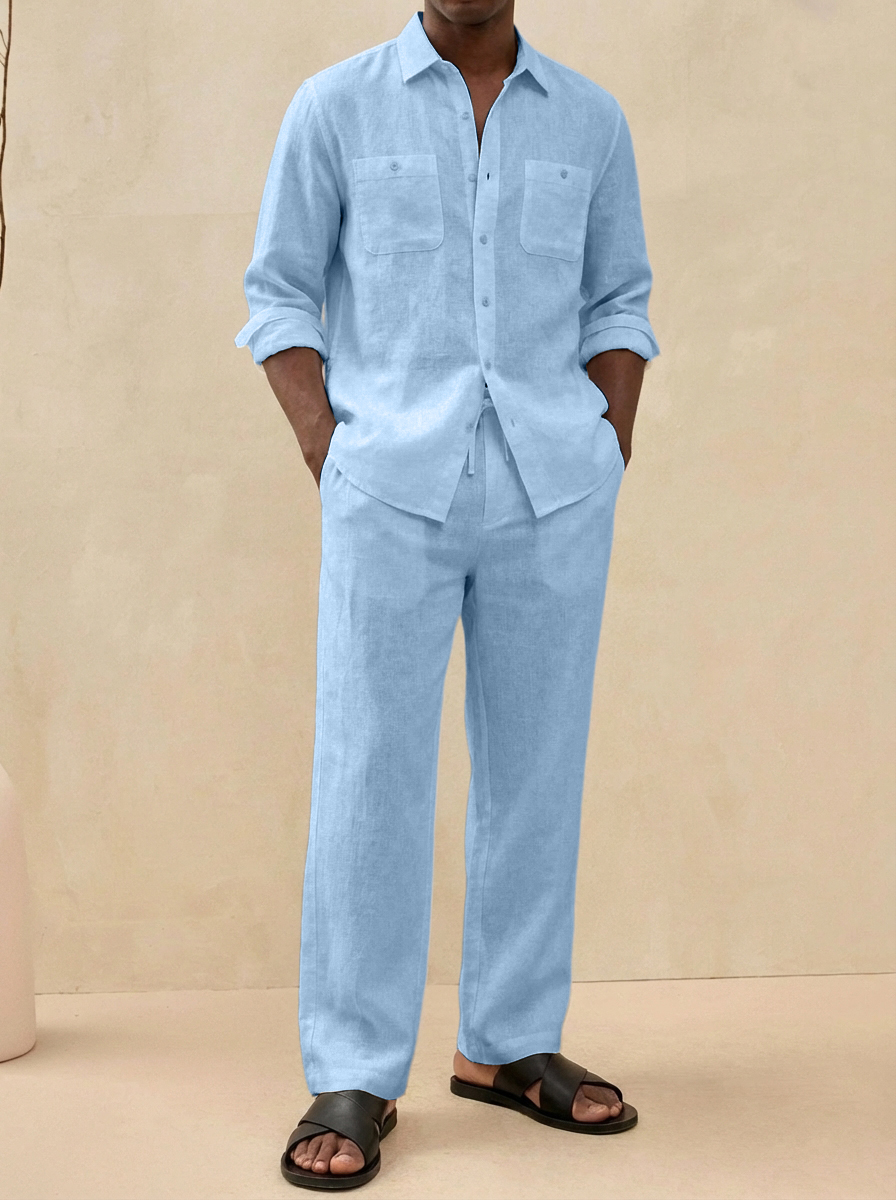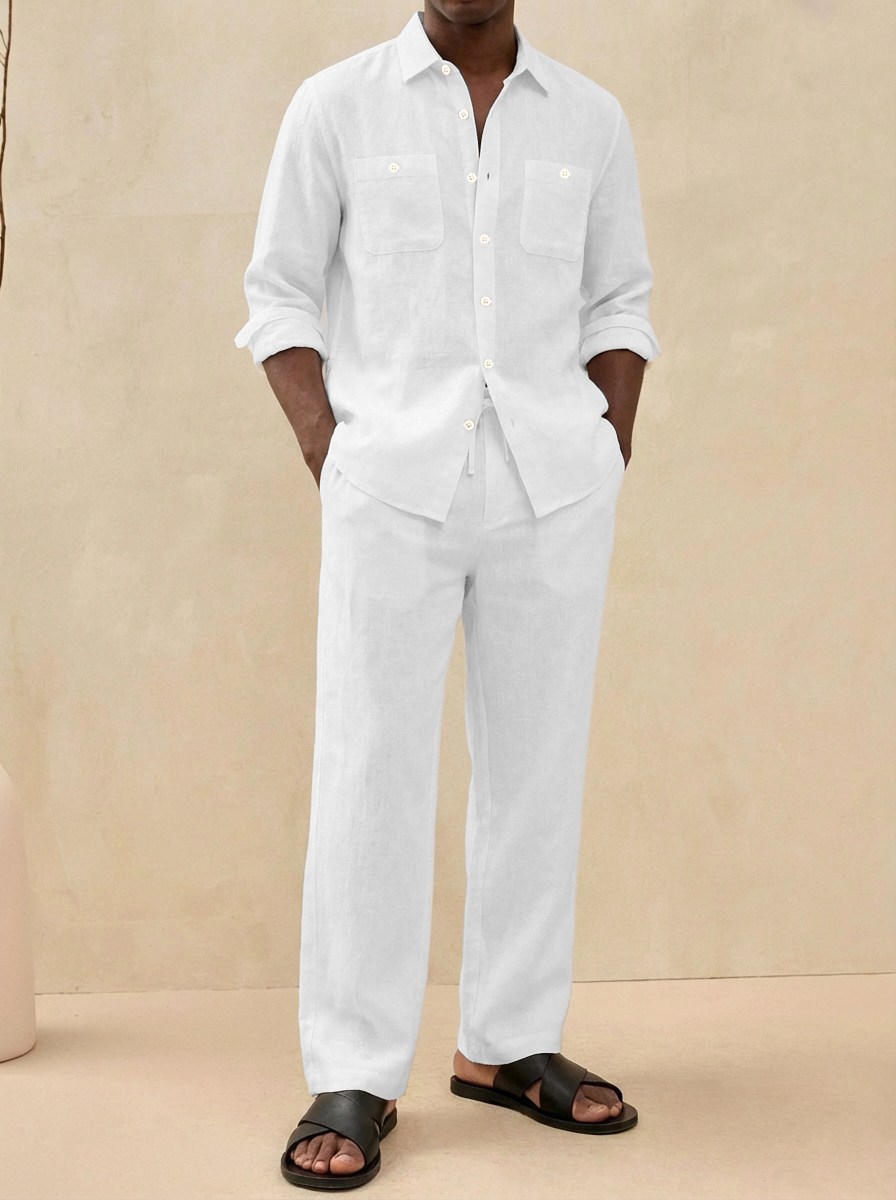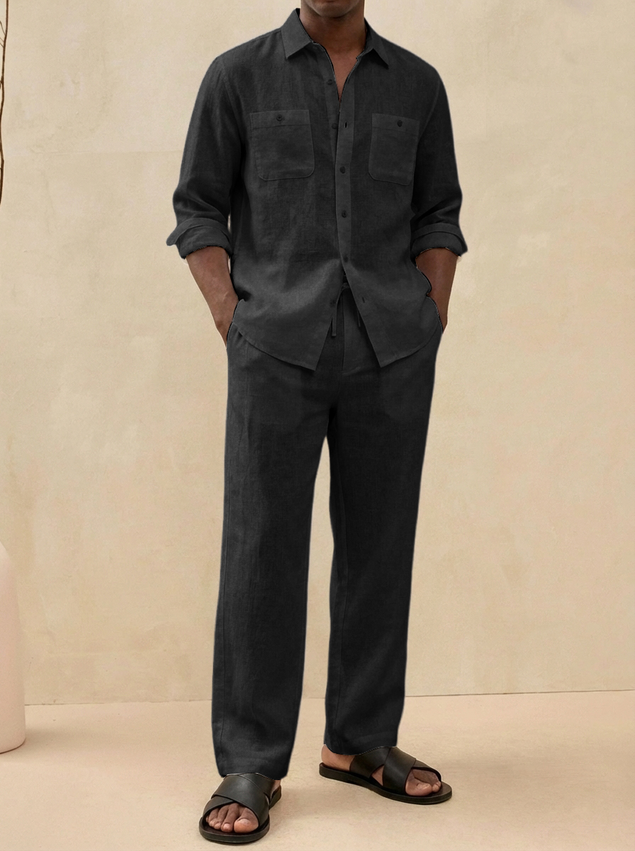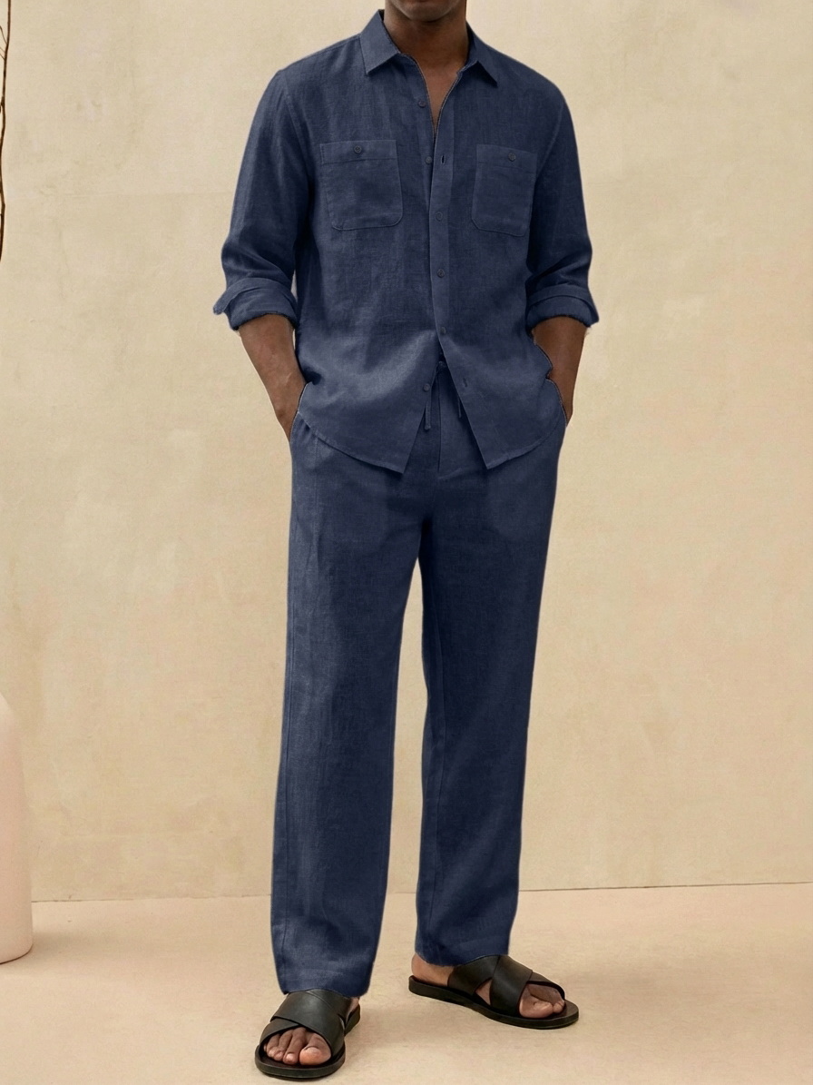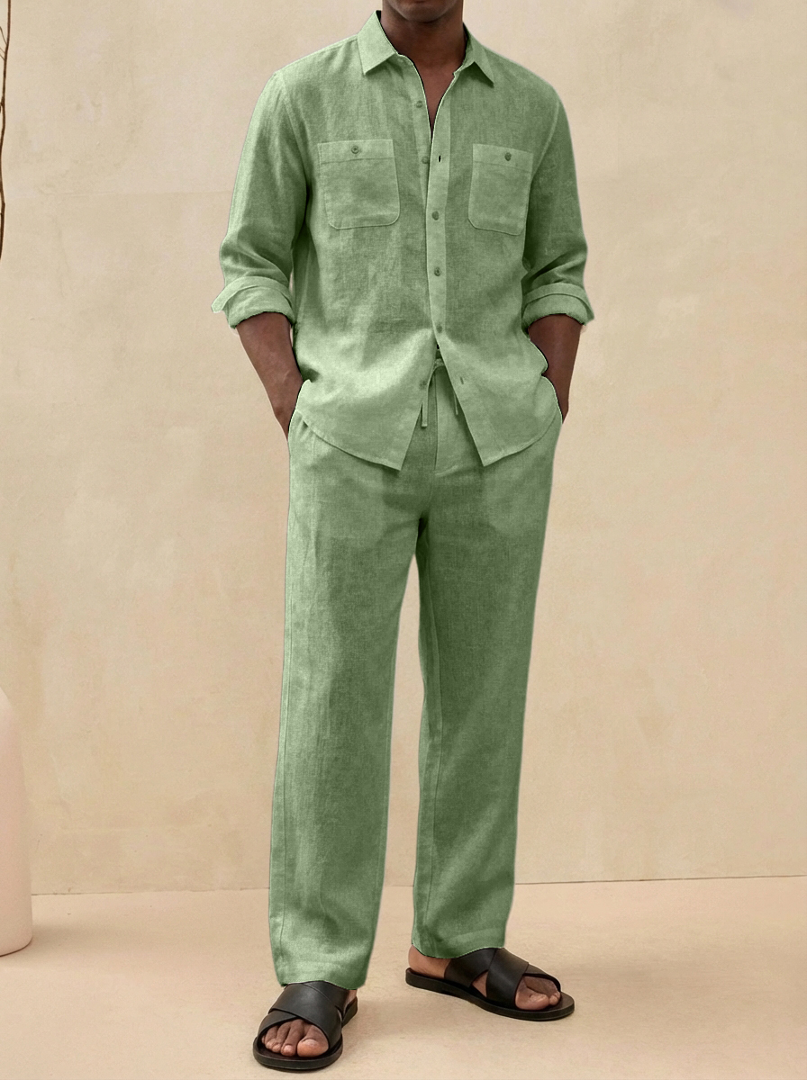Men's Old Money Style Casual Cotton and Linen Shirt and Pants Set