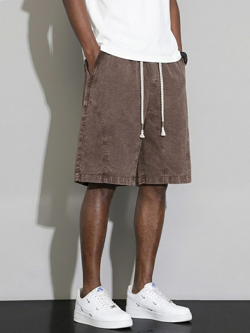 Men's Pure Cotton Versatile Washed & Distressed Deconstructed Design Loose-Fit Shorts
