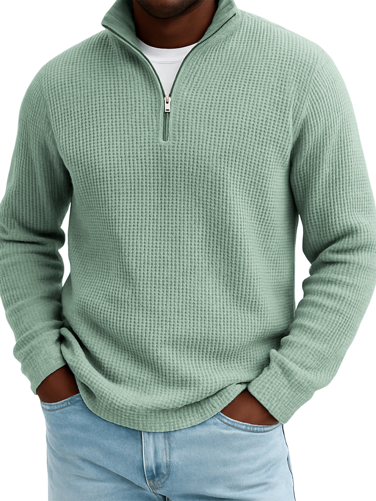 Men's Quarter-zip Waffle Texture Breathable Pullover T-shirt