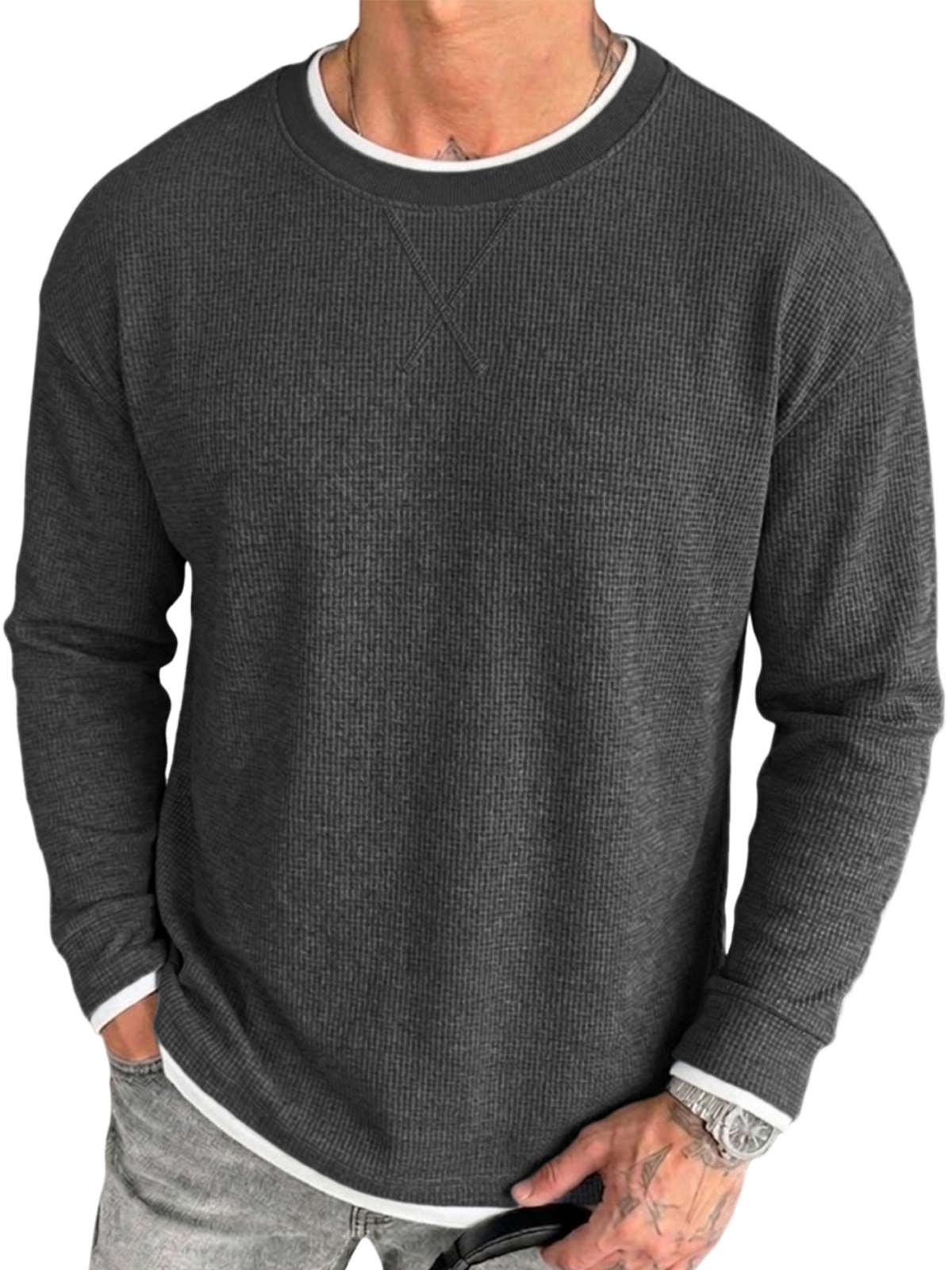 Men's Retro Casual Breathable Textured Loose Pullover T-Shirt