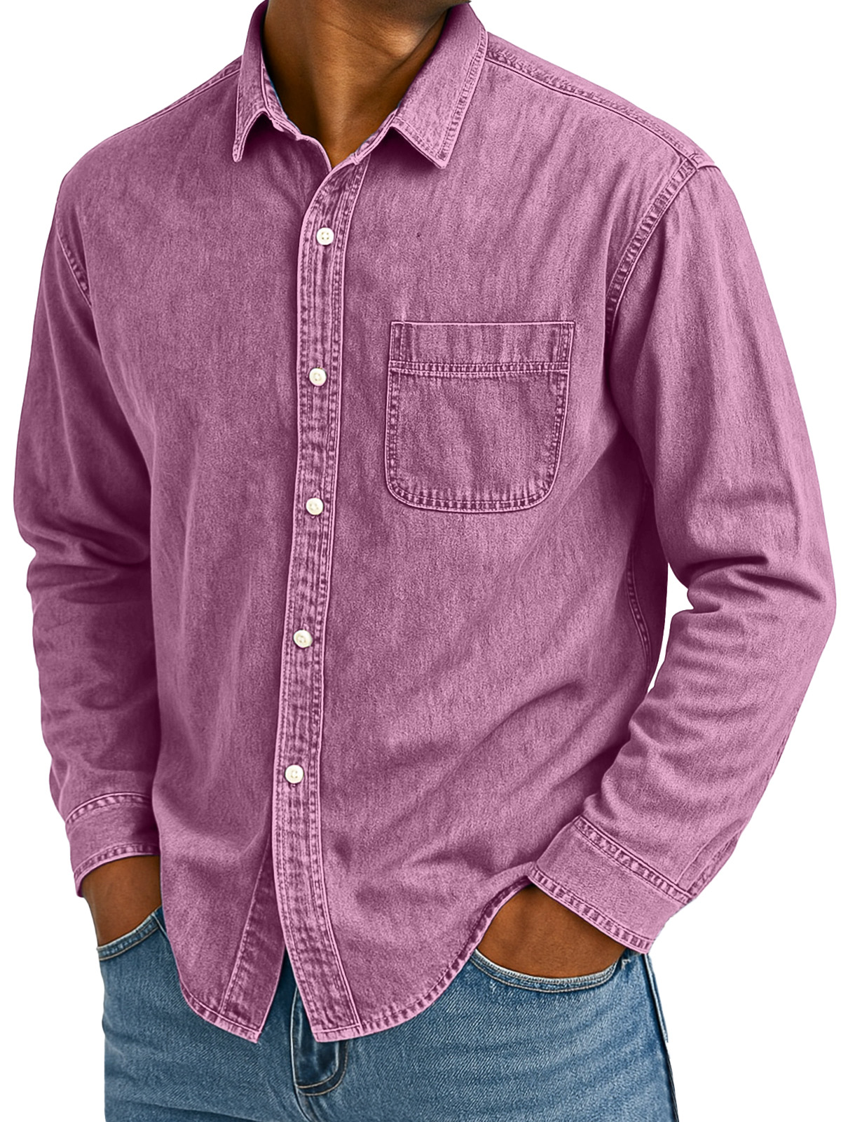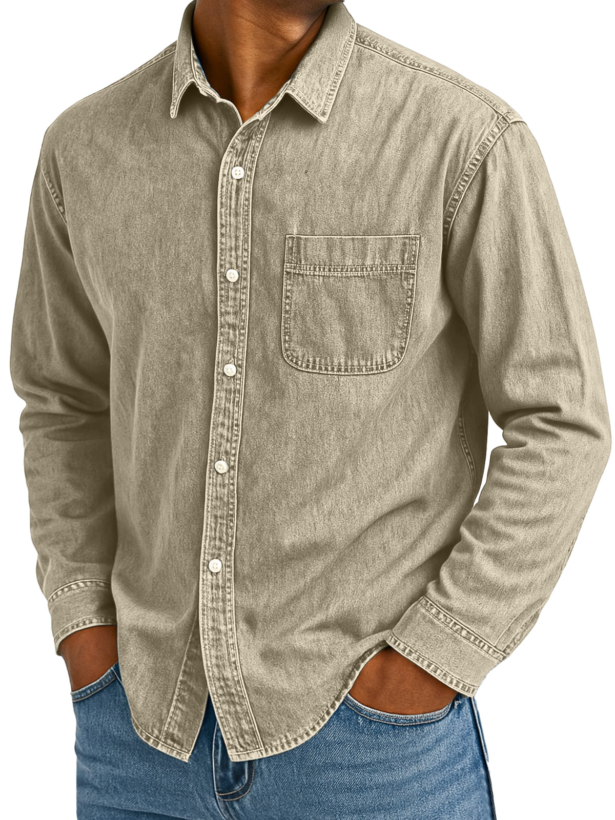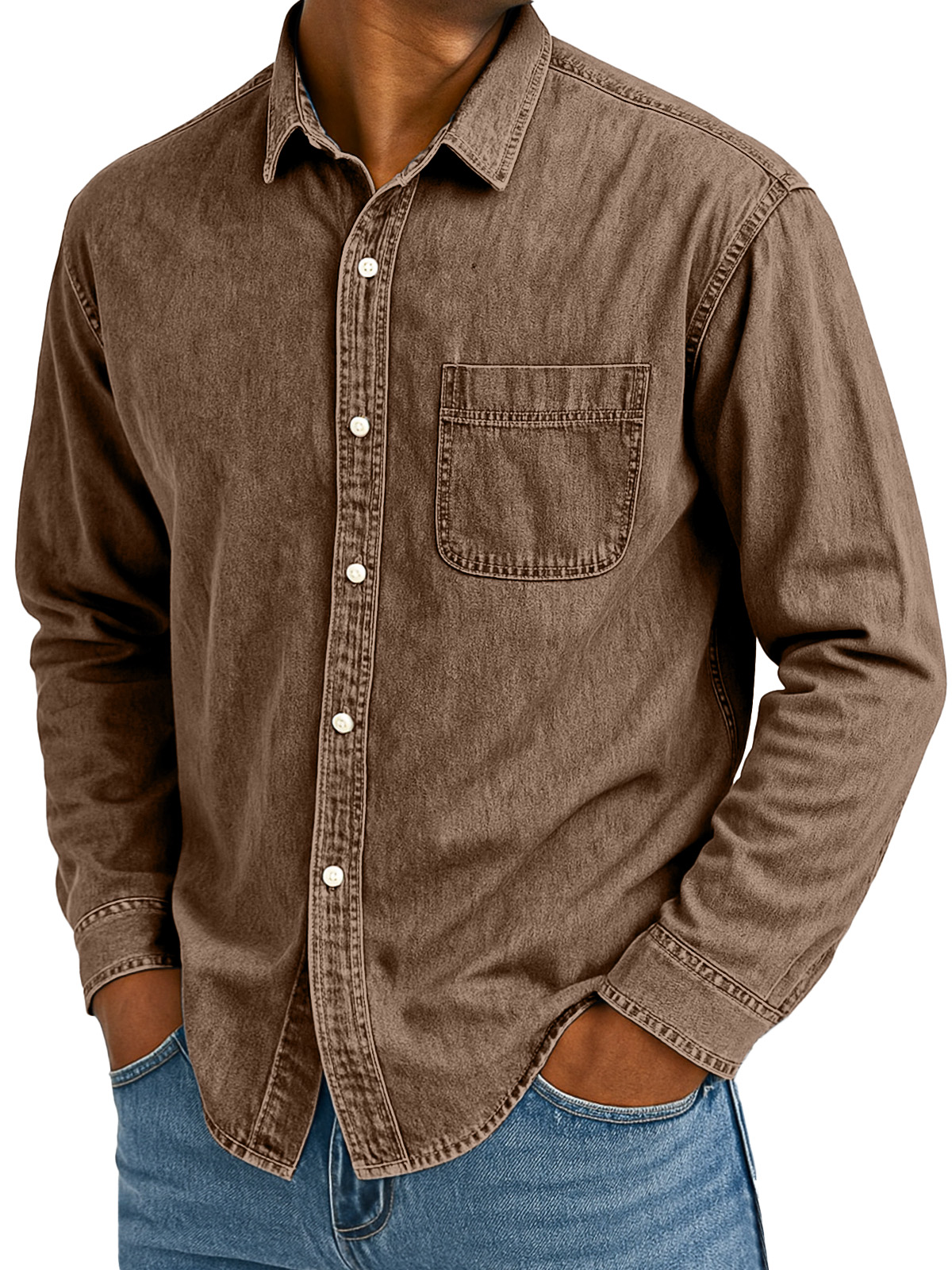Men's Retro Casual Solid Color Loose Lapel Long Sleeve Shirt With Pockets