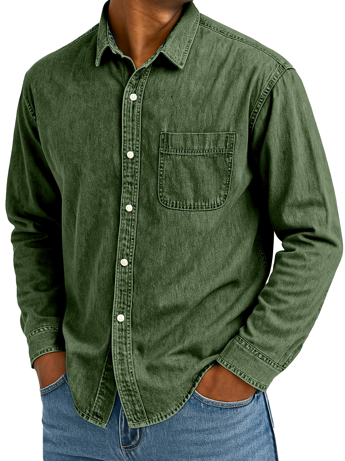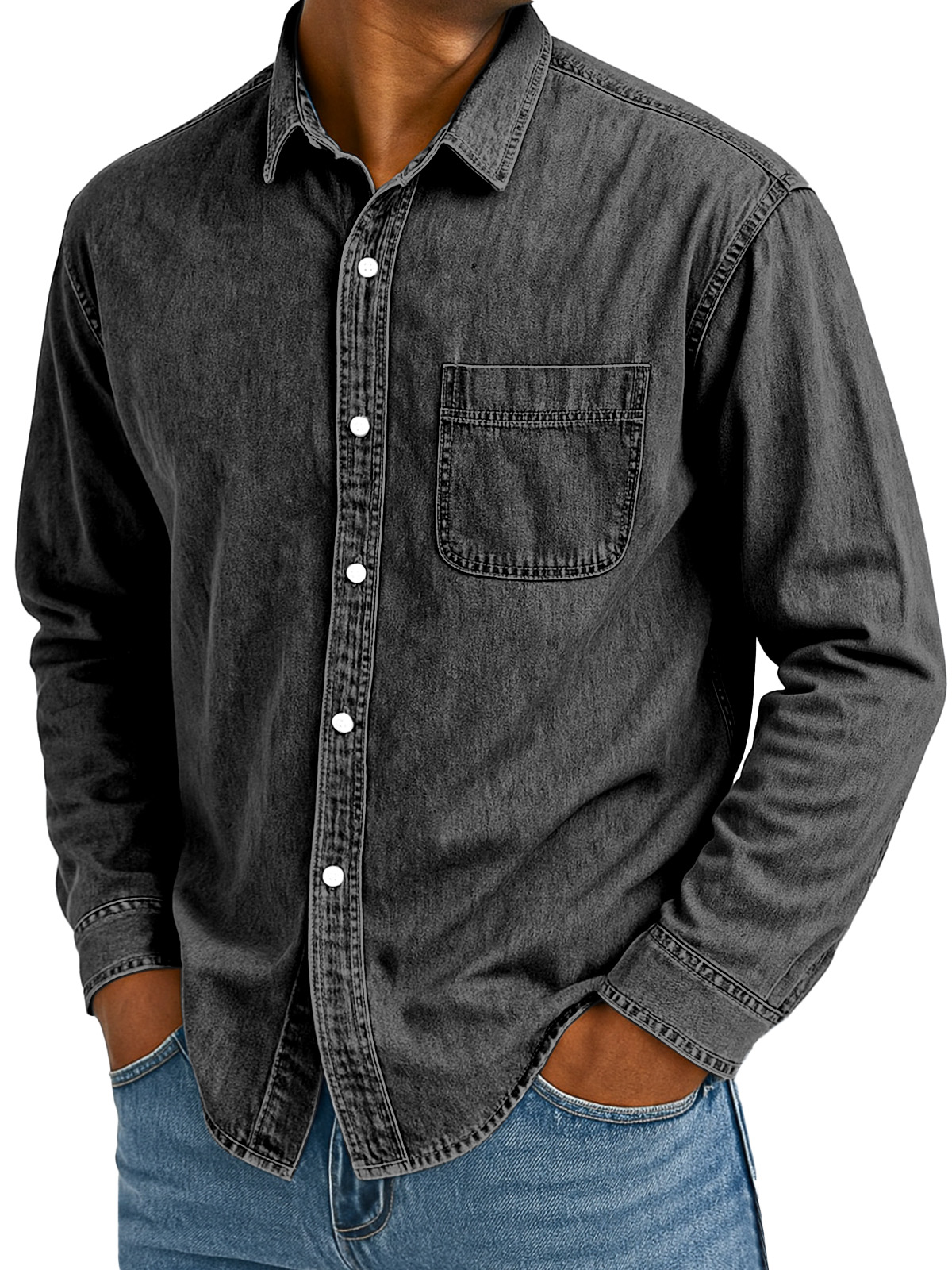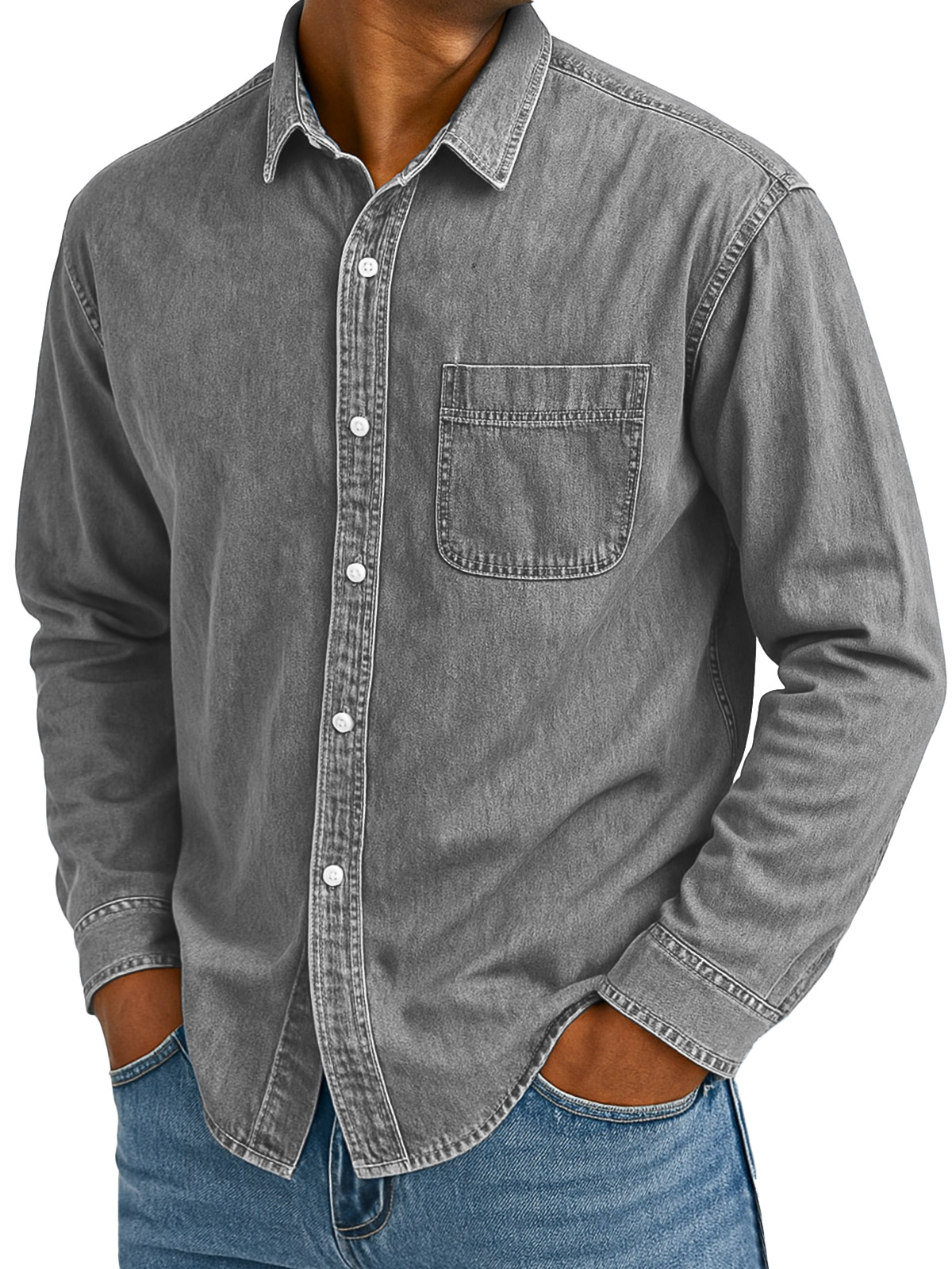 Men's Retro Casual Solid Color Loose Lapel Long Sleeve Shirt With Pockets