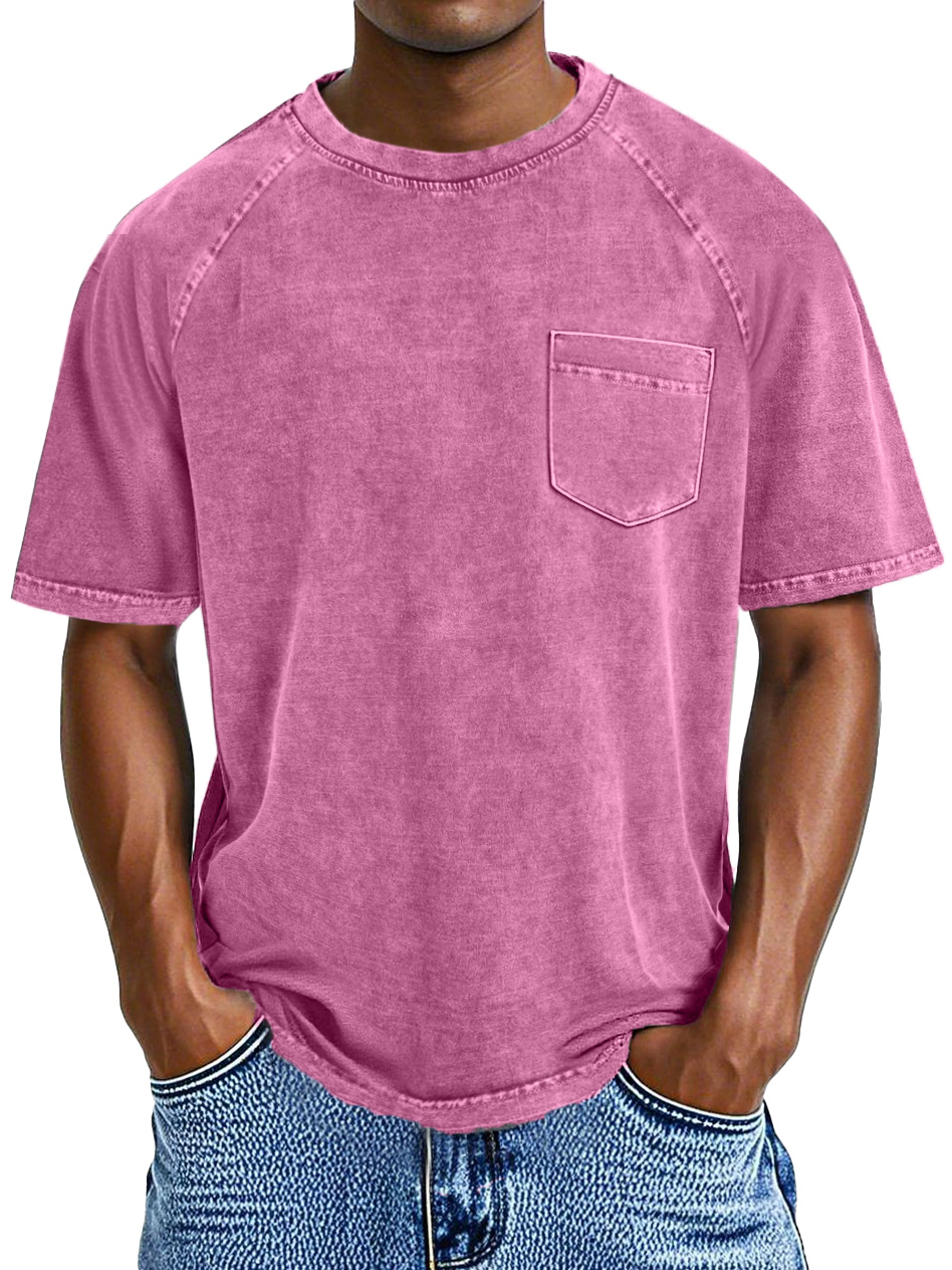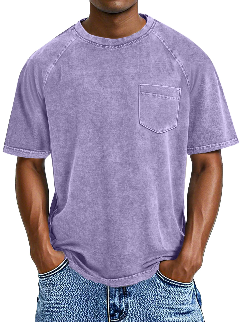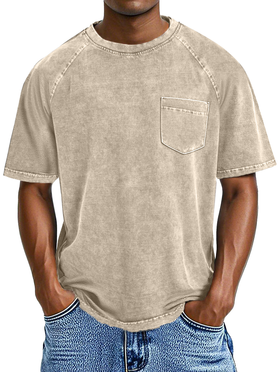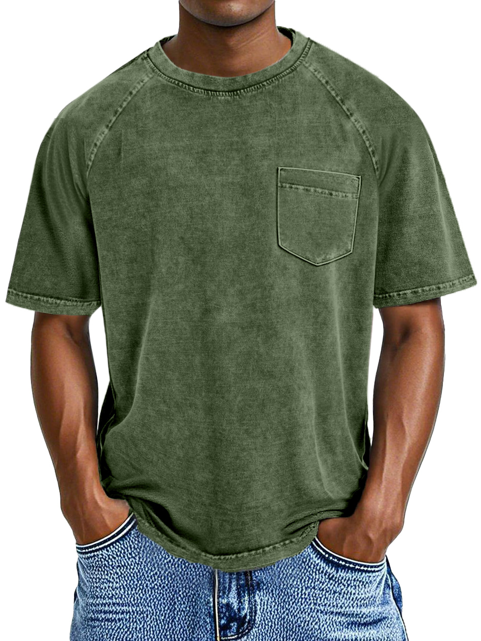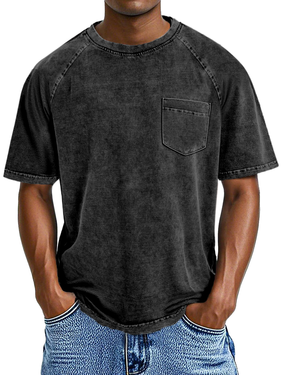 Men's Retro Casual Solid Color Pocket Raglan Short Sleeve T-shirt