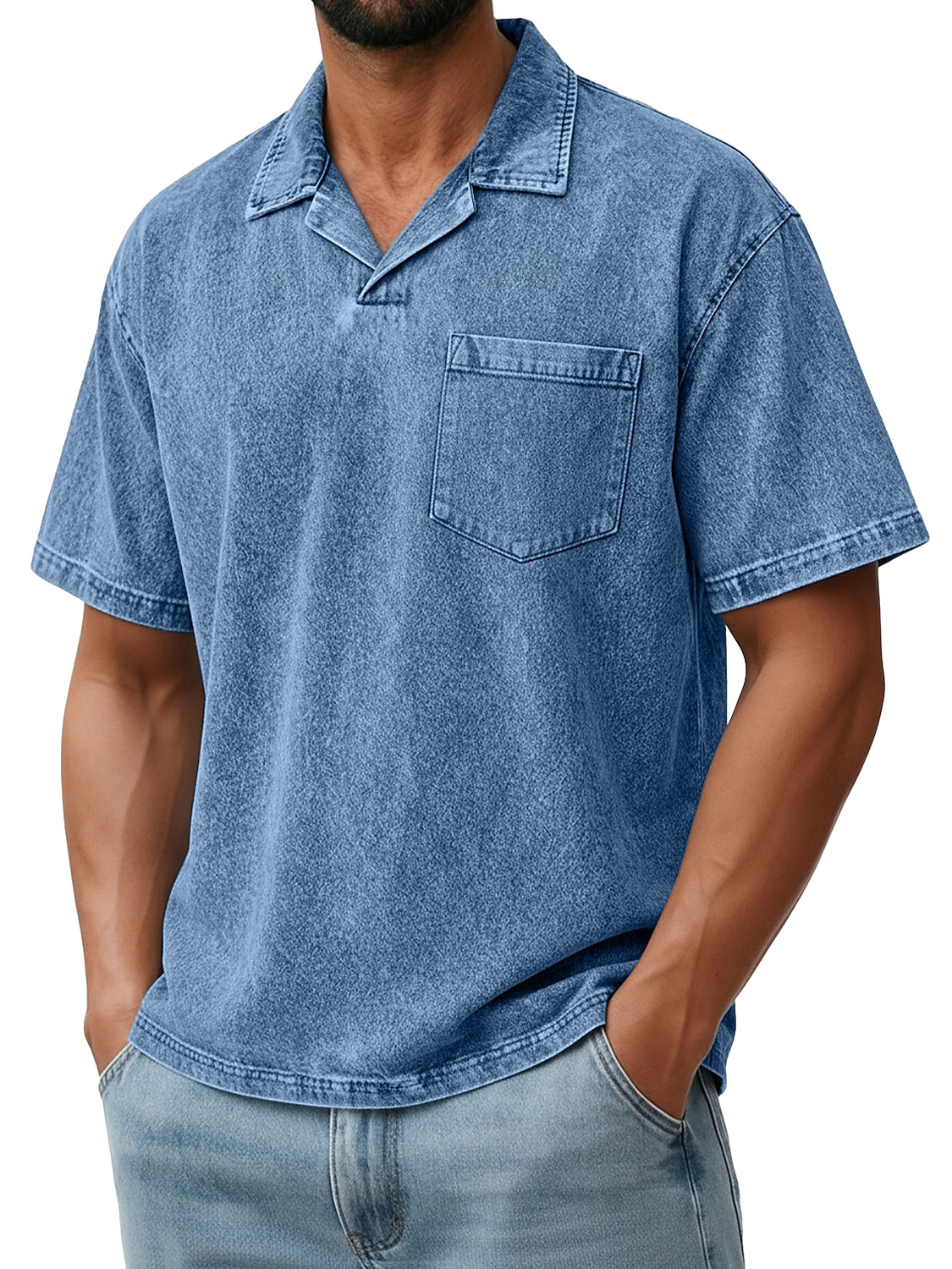 Men's Retro Collared Pocket Casual Short-Sleeve Polo Shirt