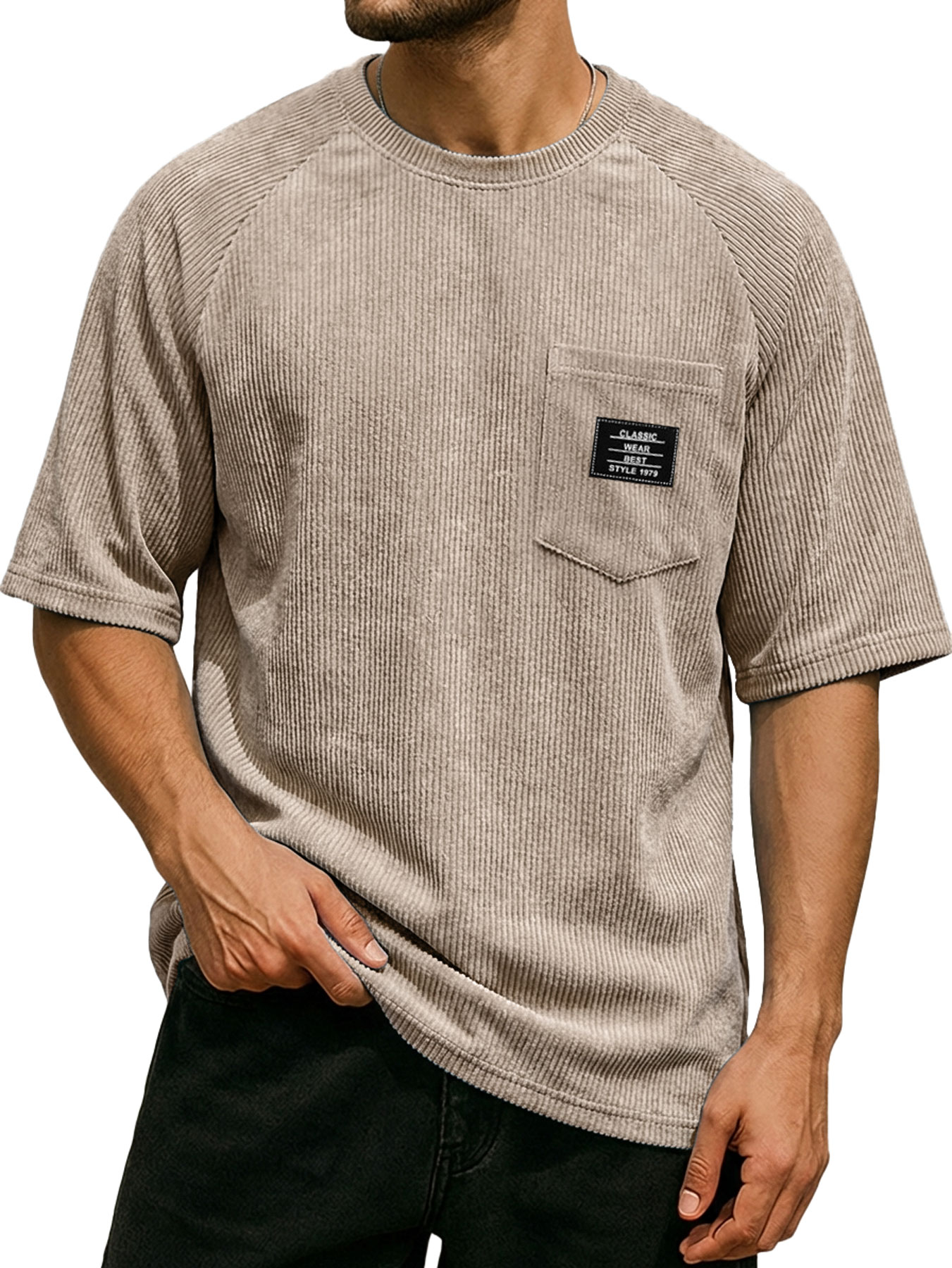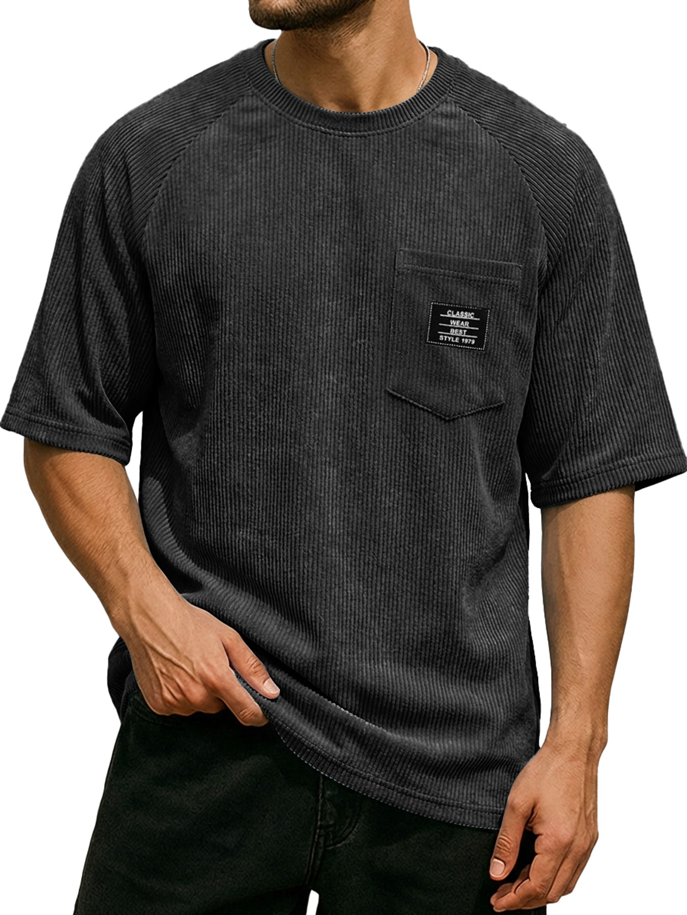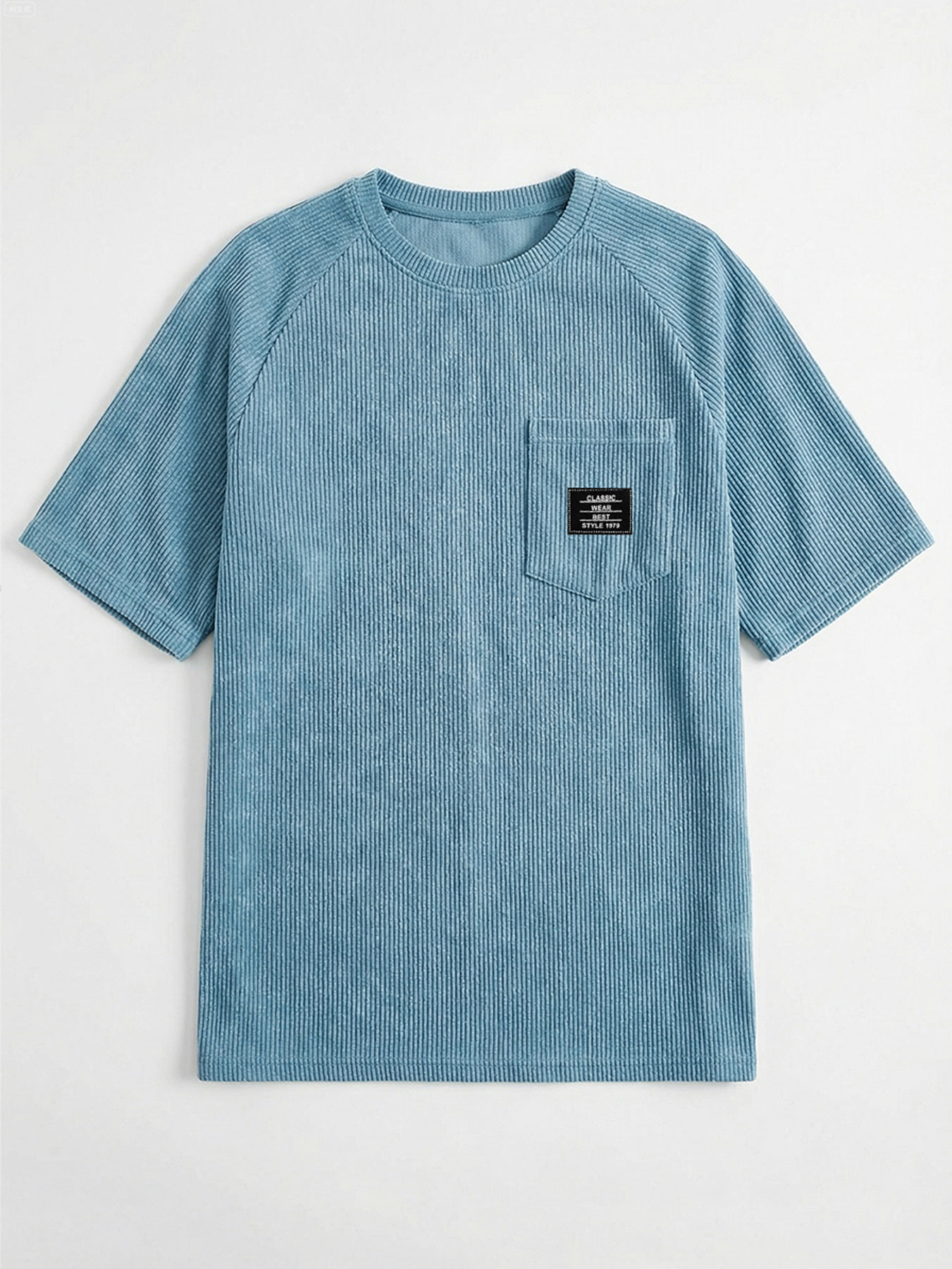 Men's Retro Corduroy Embroidered Logo Raglan Casual Short-Sleeve T-Shirt