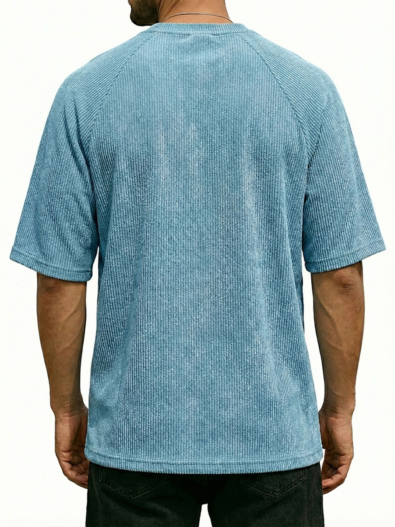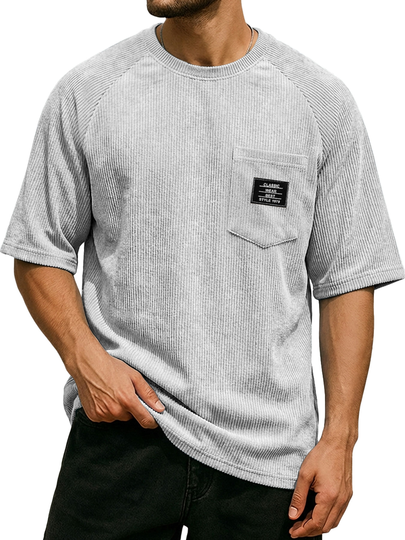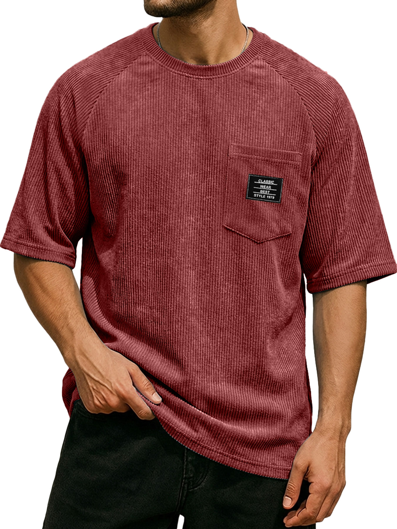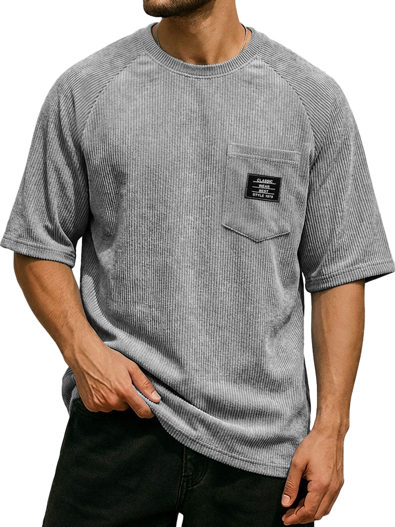 Men's Retro Corduroy Embroidered Logo Raglan Casual Short-Sleeve T-Shirt