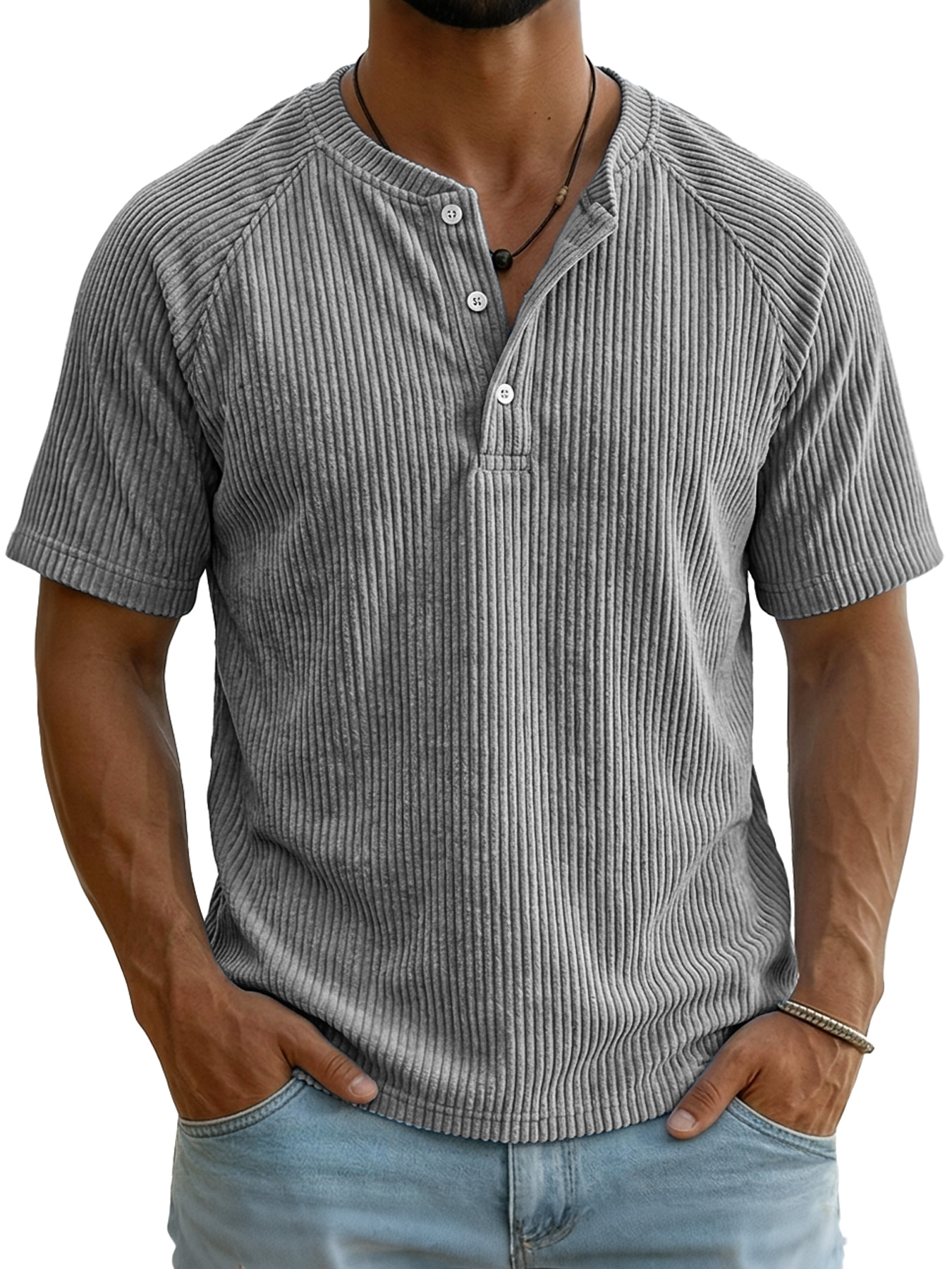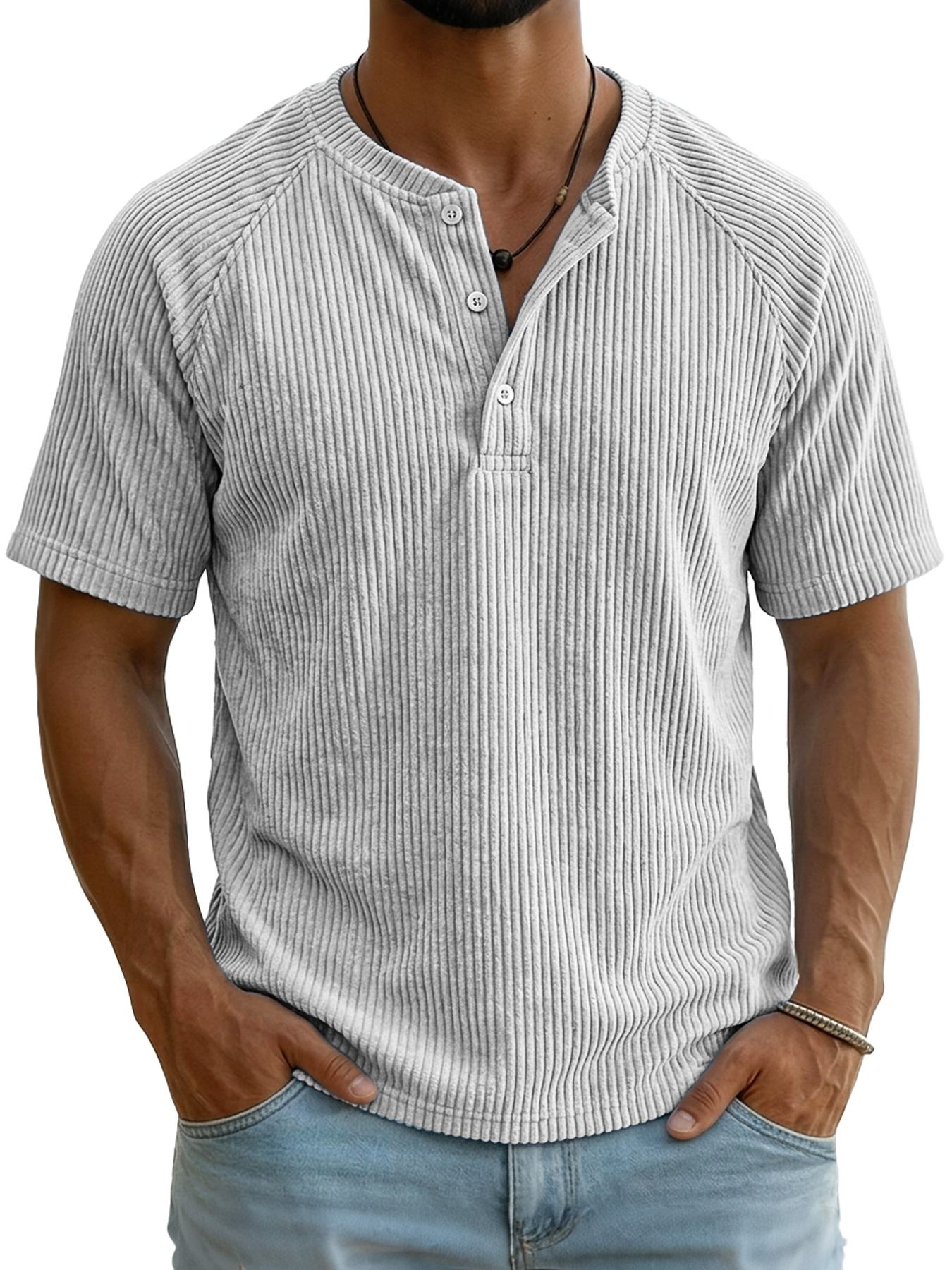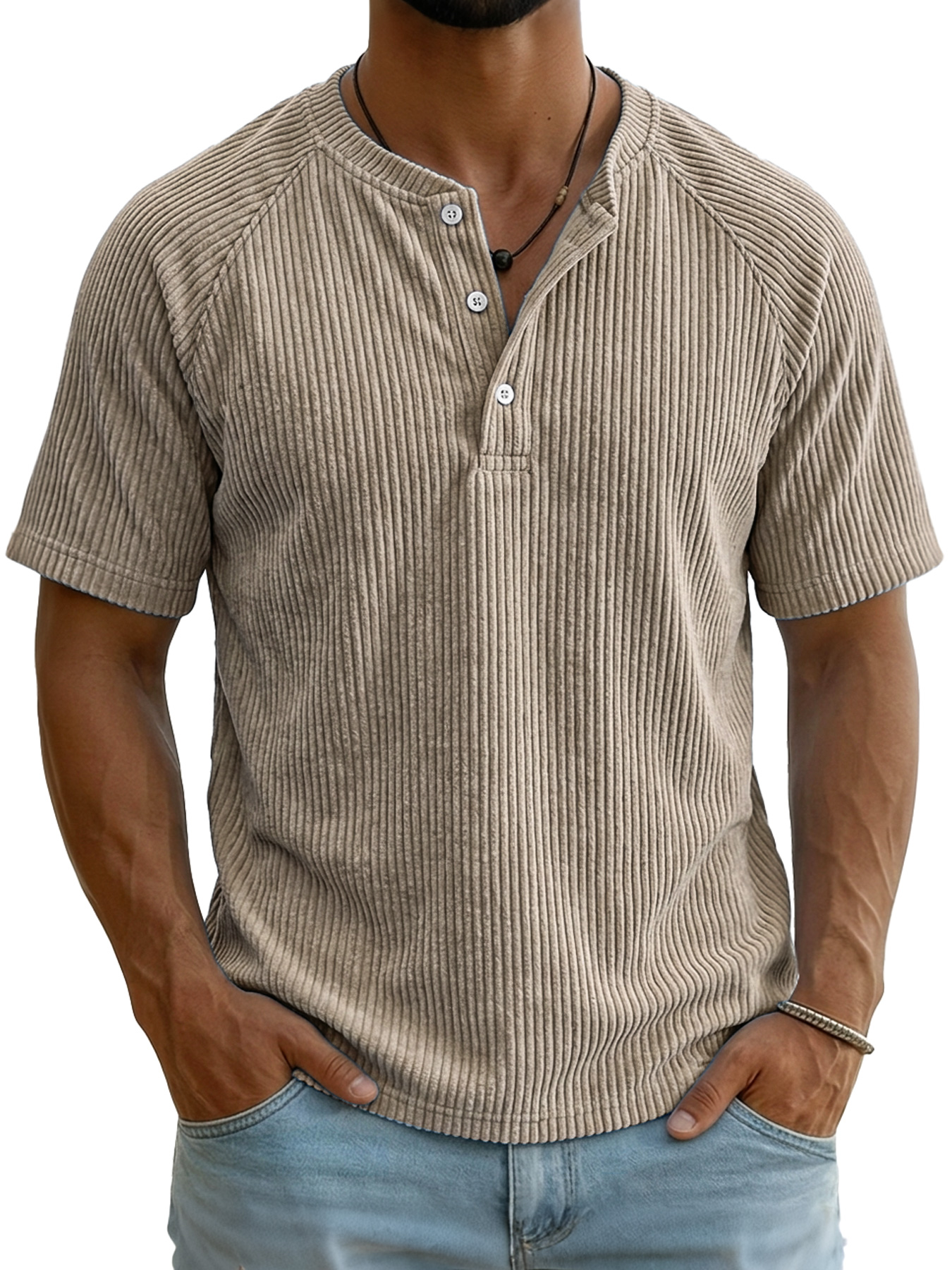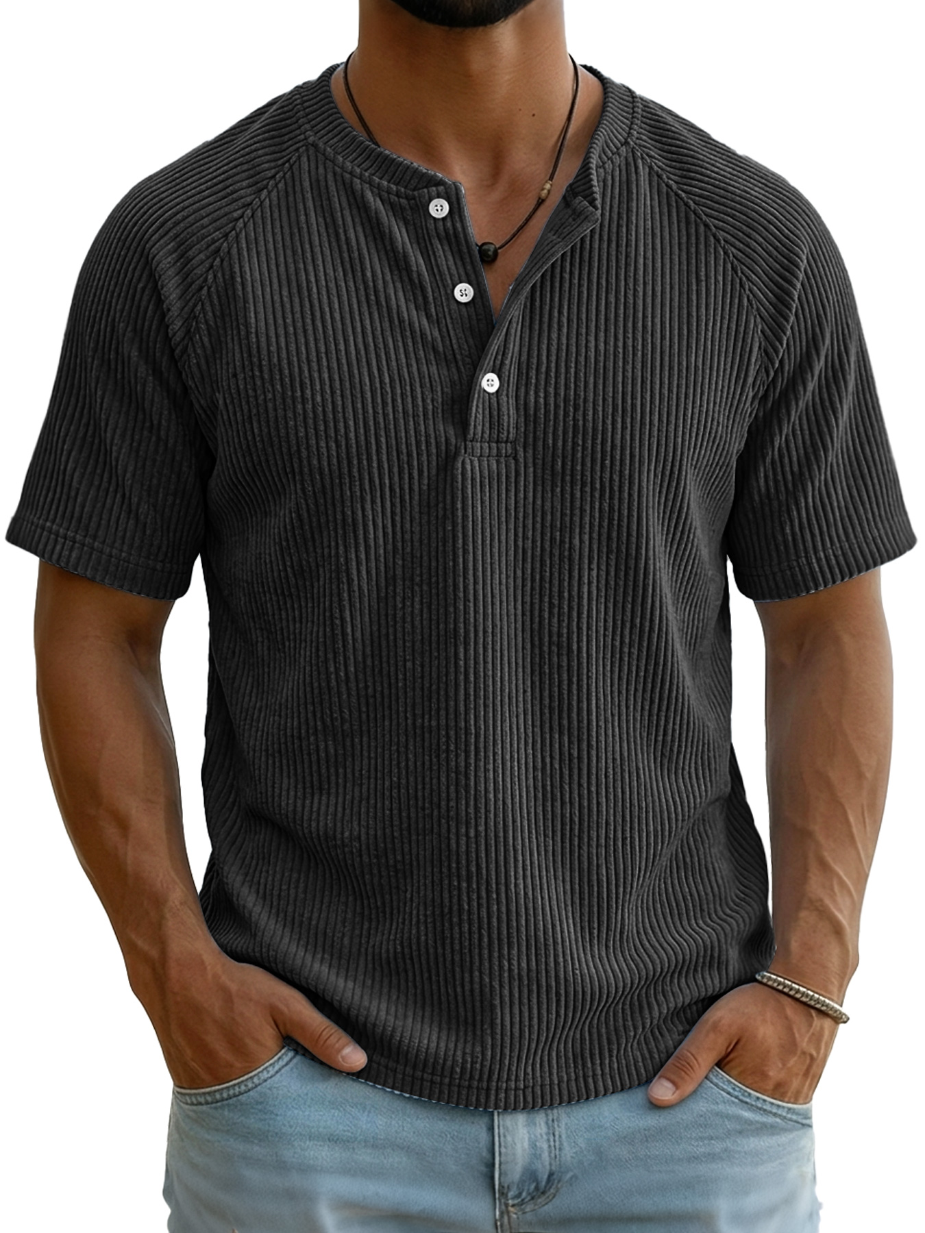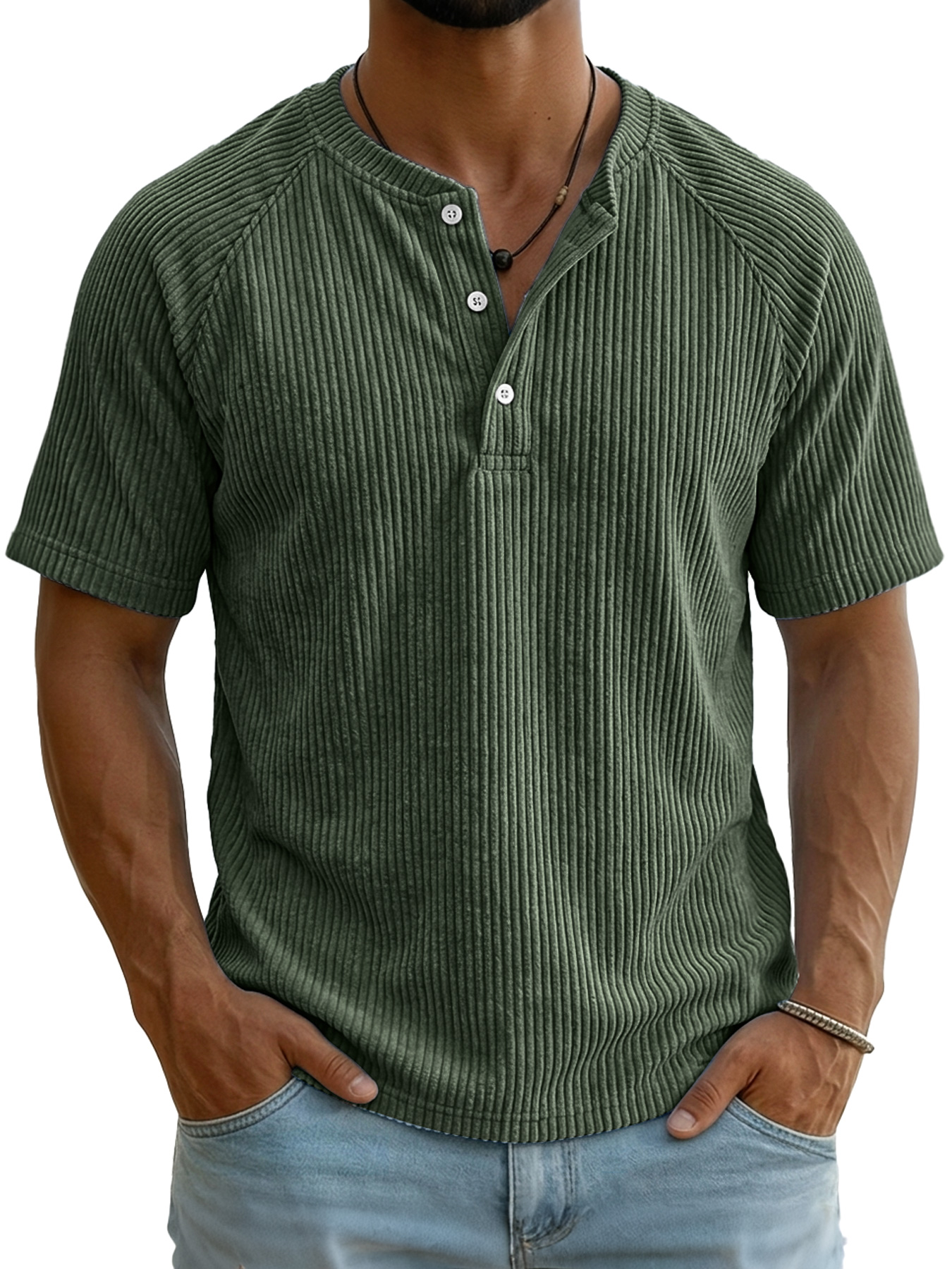 Men's Retro Corduroy Raglan Casual Short-Sleeve Henley Shirt