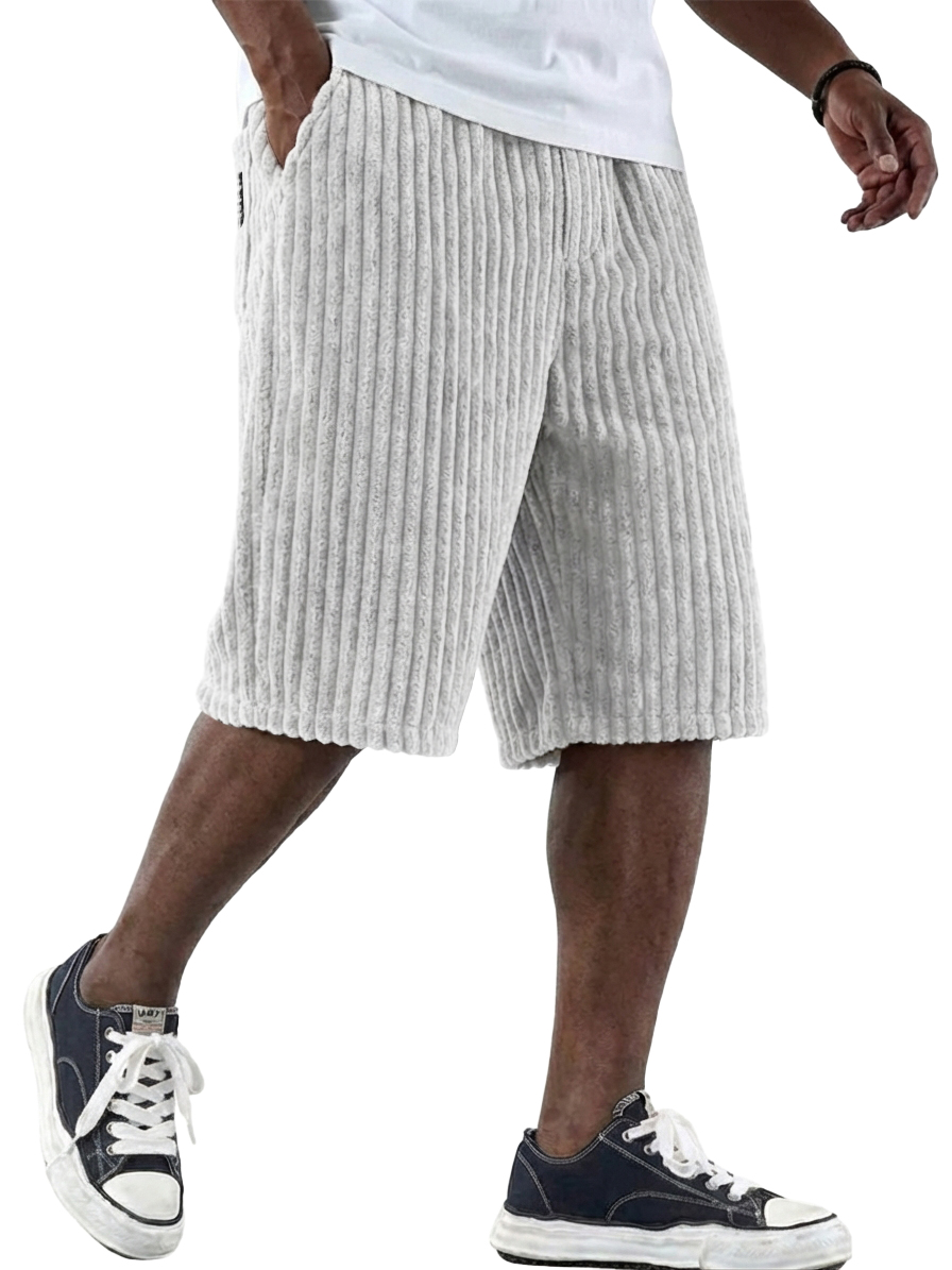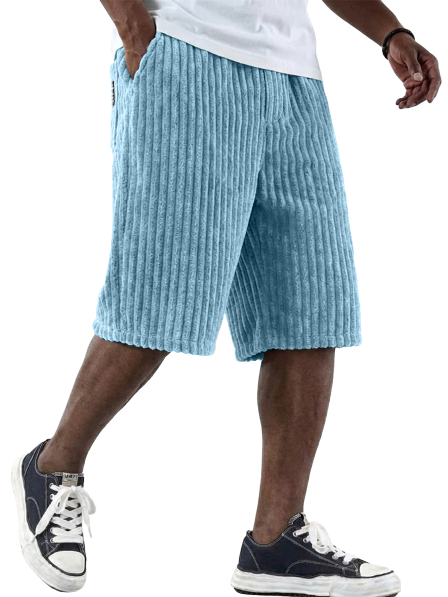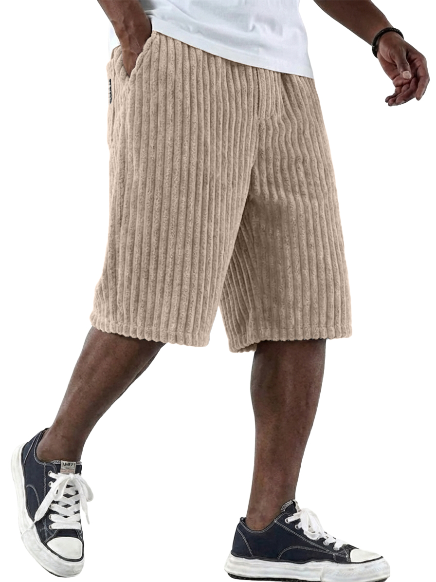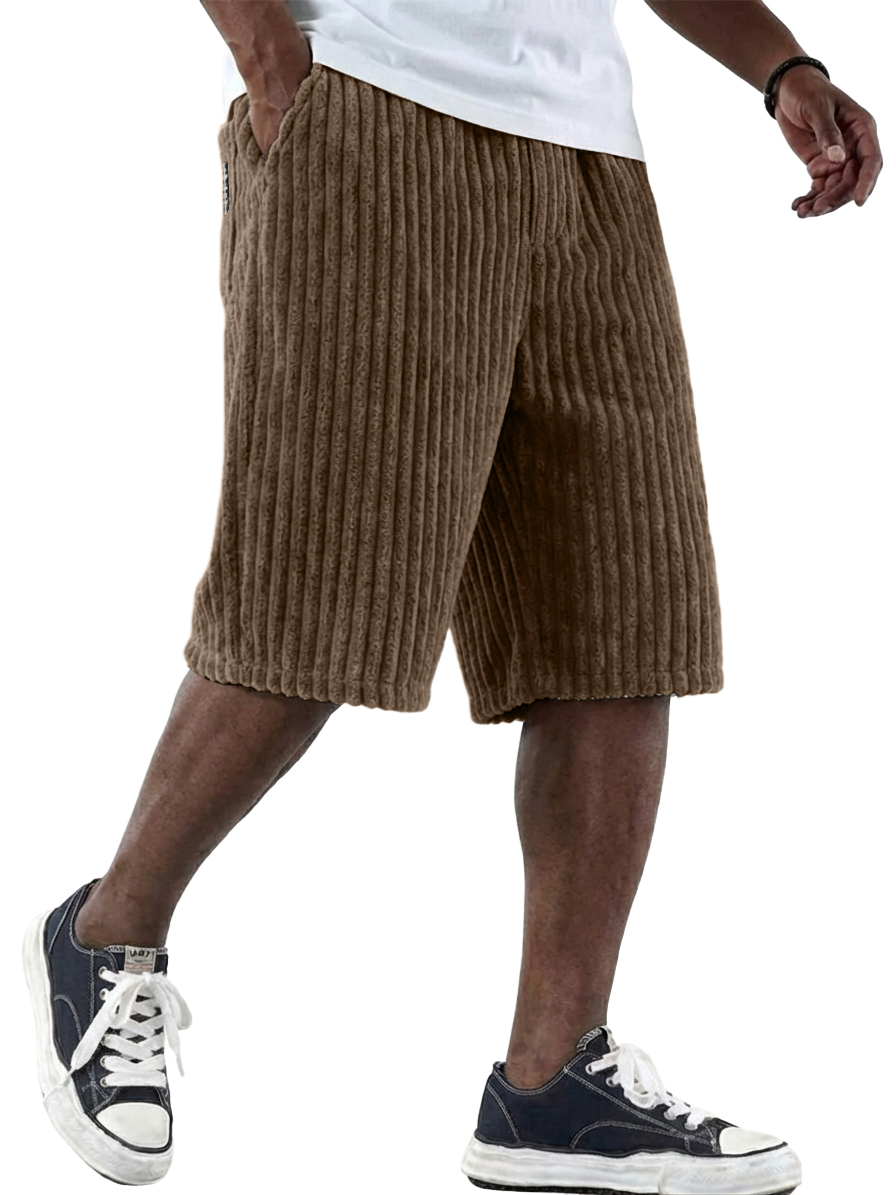Men's Retro Corduroy Shorts with Embroidered Logo and Multiple Pockets